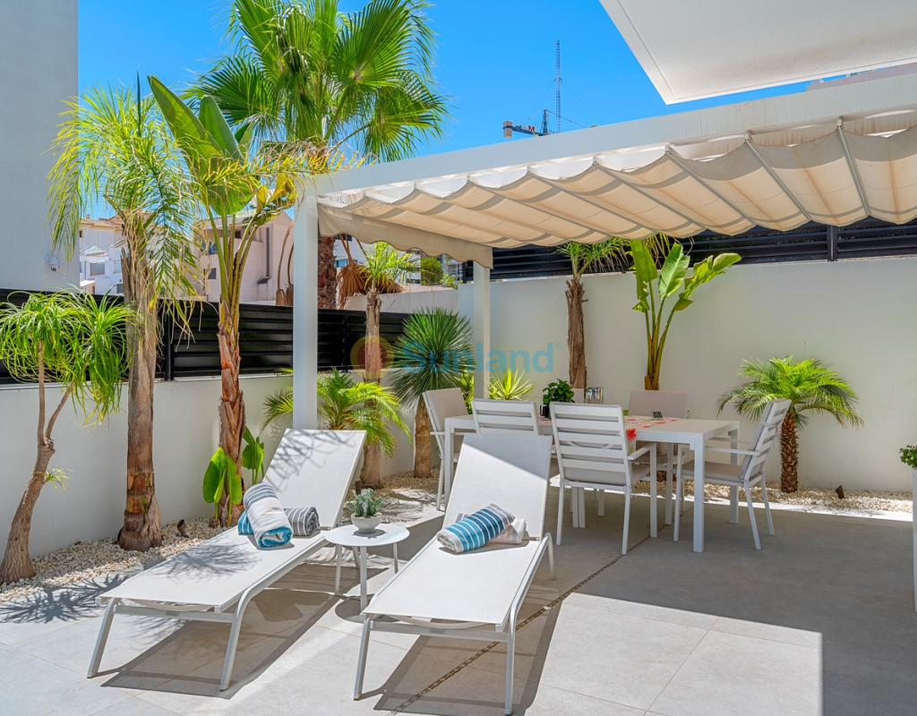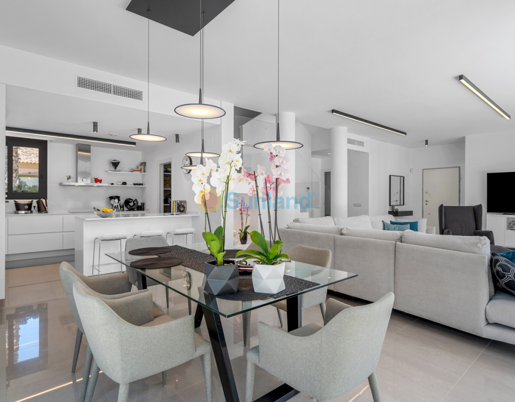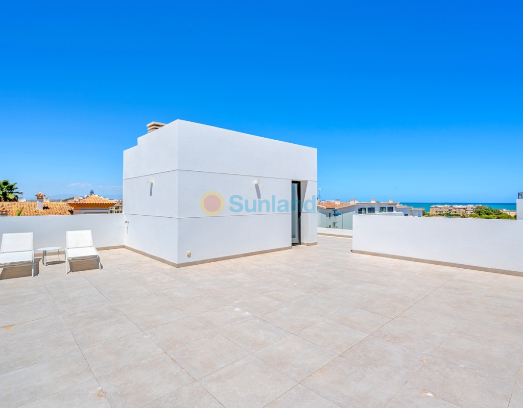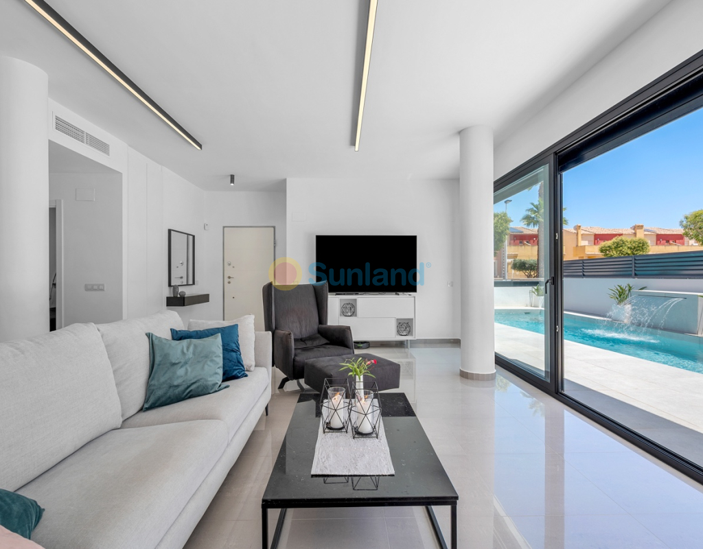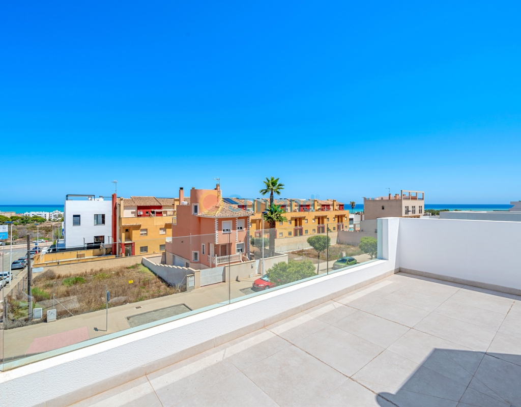 Denne moderne villaen, bygget i 2019 og plassert på en tomt på 347m², tilbyr en gjennomtenkt kombinasjon av funksjonalitet og moderne arkitektur. Boligen er på 194m² fordelt over tre etasjer, og inneholder fire romslige soverom og tre bad, med en planløsning som gir både komfort og privatliv. Det åpne kjøkkenet flyter sømløst inn i stue og spisestue, med store skyvedører i glass som gir direkte tilgang til hage og terrasse og slipper inn rikelig med naturlig lys. Hovedinngangen ligger på nordsiden av eiendommen, mens hage og bassengområdet vender mot sør. Den private svømmebassenget på 36m² er et naturlig samlingspunkt utendørs, omgitt av moderne landskap og ulike sittegrupper. En pergola gir skygge til måltider ute, og den overbygde terrassen utvider oppholdsrommet. På taket finner du et solarium med åpen utsikt og delvis havutsikt – perfekt for avslapning. I andre etasje finner man hovedsoverommet med walk-in-garderobe og tilgang til privat balkong. To andre soverom med innebygde garderober fullfører etasjen, mens et fjerde soverom i første etasje gir fleksible bruksmuligheter. I tillegg finnes vaskerom, bod og privat parkering på tomten. Dette er et moderne hjem med gjennomgående gode kvaliteter og nærhet til sjøen.