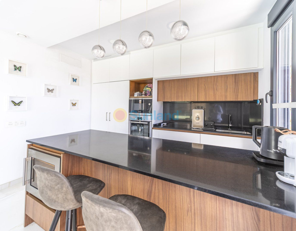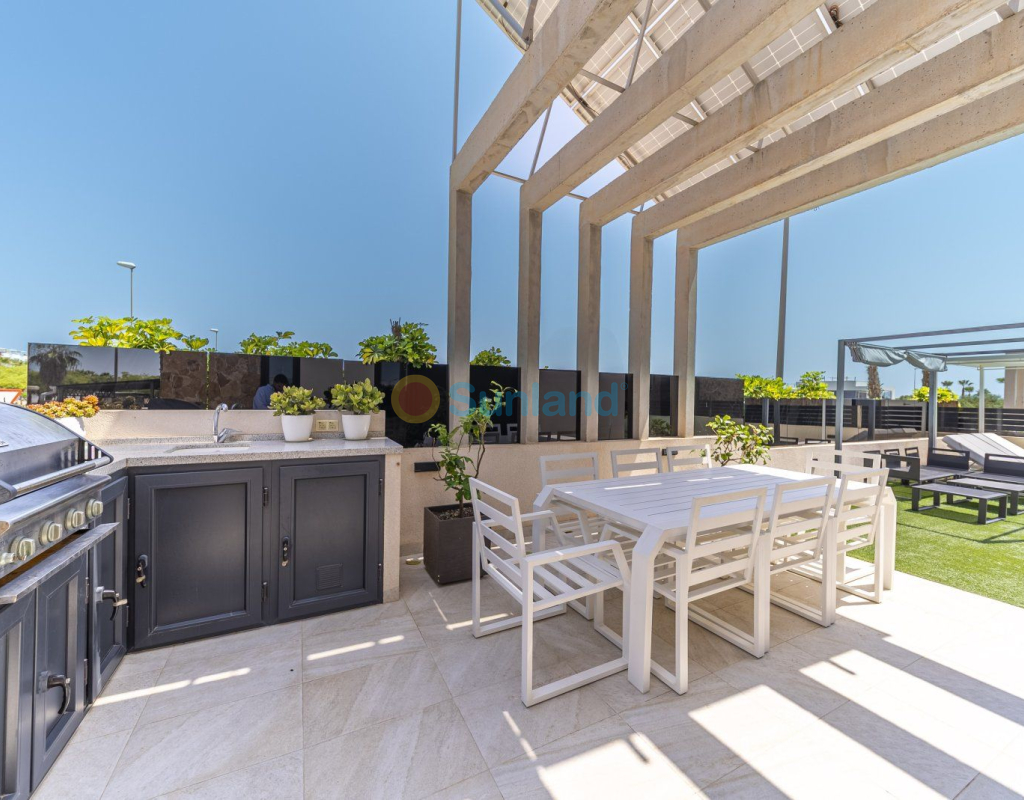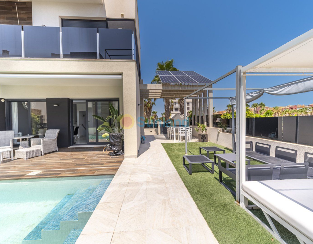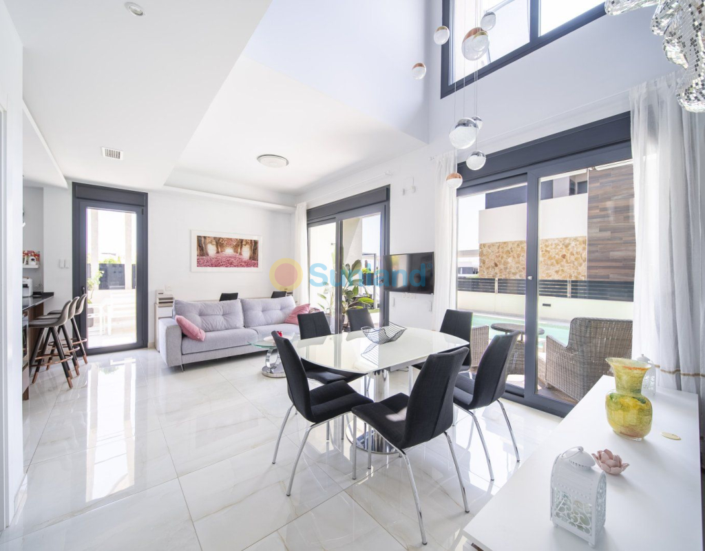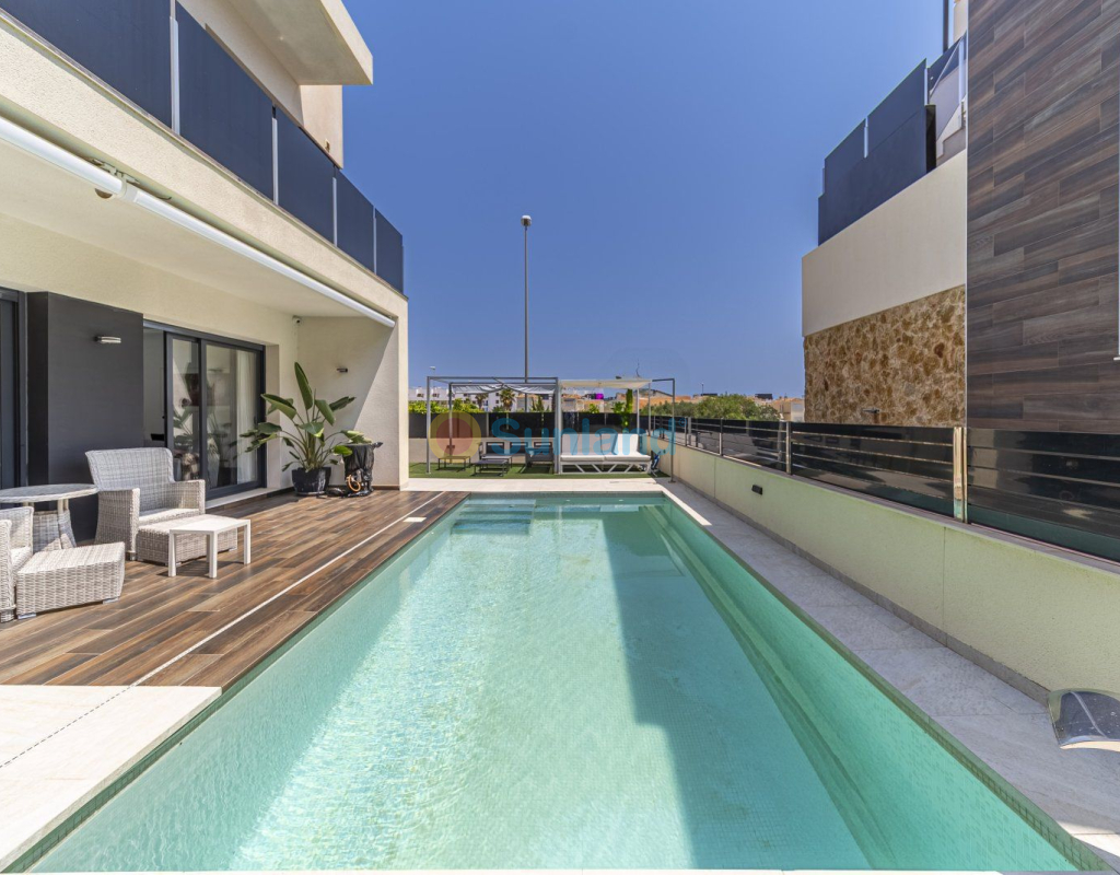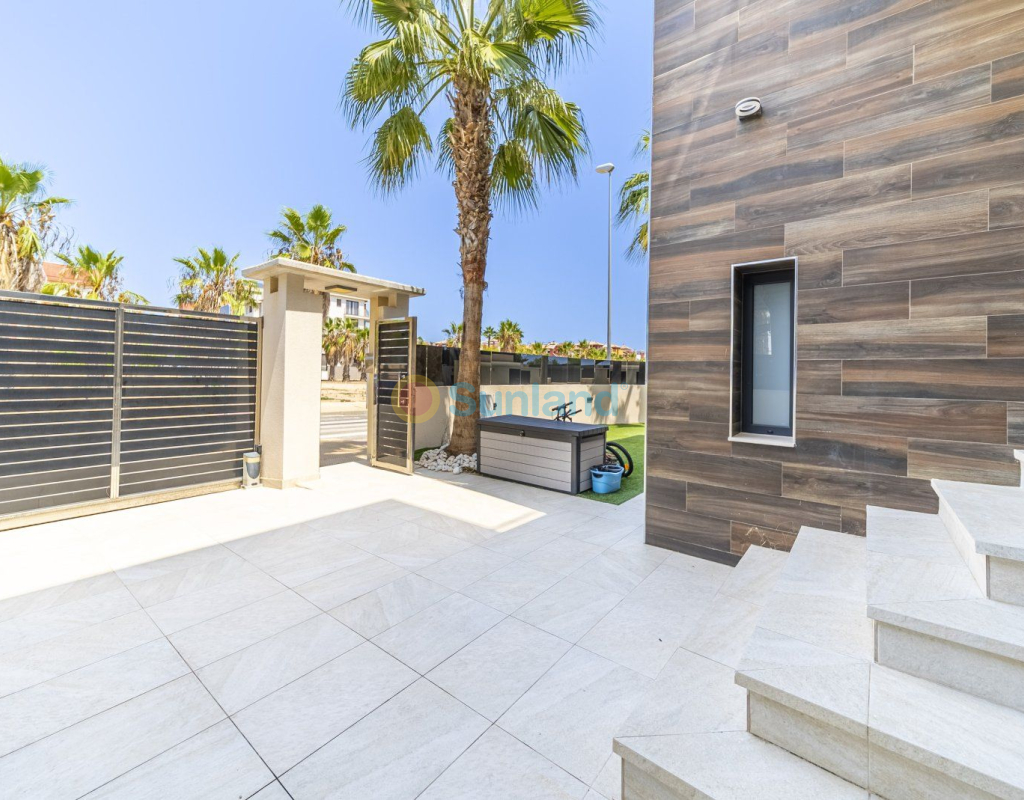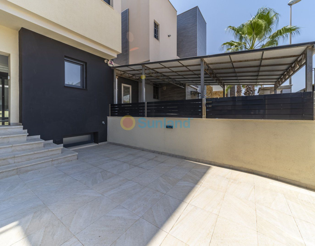 Luksuriøs hjørnevilla i Lomas de Cabo Roig. Denne elegante hjørnevillaen, bygget i 2021, er fordelt på to etasjer pluss en kjeller med stue. Den har 185 m² bebygd på en tomt på 285 m², med 4 romslige soverom, 4 bad, fullt utstyrt kjøkken, solrike terrasser og bod. Boligen er i meget god stand, møblert, med innebygde garderober, individuell elektrisk oppvarming og sørvendt orientering. Den har også privat parkering på tomten. Kvaliteter: 4 soverom og 4 bad 185 m² bebygd / 285 m² tomt 2 etasjer + kjeller med stue Terrasse og bod Sørvendt Møblert og utstyrt Innebygde garderober Privat parkering Bygget i 2021 Individuell elektrisk oppvarming Beliggenhet: 2 minutter til supermarkeder, butikker, barer og restauranter 7 minutter til stranden 10 minutter til kjøpesenteret Zenia Boulevard