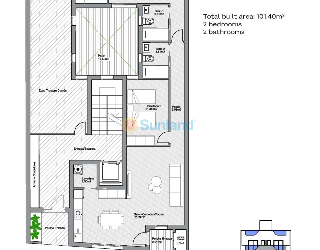 Moderne nybyggede leiligheter i hjertet av Torrevieja, bare 600 m fra sjøen Eksklusivt boutique-prosjekt i sentrum av Torrevieja Oppdag et eksklusivt boligprosjekt med bare 7 moderne nybyggede leiligheter, ideelt beliggende i det livlige sentrum av Torrevieja, Alicante. Bare 600 m fra strandpromenaden kombinerer disse stilige boligene fordelene ved å bo ved kysten med bekvemmeligheten ved en urban livsstil, med enkel tilgang til butikker, restauranter og fritidstilbud. Moderne design og smarte planløsninger Velg mellom leiligheter med 1 eller 2 soverom, hver med 2 bad (ett en-suite). De åpne planløsningene er designet for å maksimere plass og naturlig lys, og sikrer både komfort og funksjonalitet. Premium-finish som sikkerhetsdører, innebygde garderober med tekstilfinish, aluminiumsvinduer med termisk brudd og motoriserte persienner i stuen garanterer holdbarhet og stil. Kjøkken og bad har innredning av høy kvalitet, med dusjvegger og innebygde speil inkludert. Forhåndsinstallert luftkondisjonering for komfort hele året. Eksklusive fasiliteter for beboerne Denne moderne bygningen er designet for bekvemmelighet og avslapning. Beboerne kan nyte: Solarium på taket med felles svømmebasseng Parkeringsplass for sykler og e-scootere i første etasje Heis med tilgang til alle etasjer, inkludert taket Dynamisk livsstil på Costa Blanca Torrevieja er en livlig kystby kjent for sitt solrike klima med over 300 soldager i året, kulturelle arrangementer og middelhavsstil. Strendene, marinaen, promenadene og vannsportfasilitetene gjør det til et ideelt sted å bo permanent eller nyte en ferie. Alle viktige tjenester som supermarkeder, kafeer, skoler og helsesentre ligger innen gangavstand. Utmerket beliggenhet og tilknytning Denne privilegerte beliggenheten sikrer rask tilgang til viktige destinasjoner: Promenade: 600 m Playa del Acequión: 1 km Torrevieja Marina: 600 m Zenia Boulevard kjøpesenter: 8 km Golfbaner: 7–10 km Alicante internasjonale lufthavn: 45 km Ditt middelhavshjem venter Enten du er på utkikk etter et feriehus, en smart investering eller en permanent bolig, tilbyr disse moderne nybygde leilighetene i Torrevieja en enestående mulighet i et av de mest attraktive områdene på Costa Blanca. Kontakt oss i dag for å avtale en visning og sikre deg ditt nye hjem i dette eksklusive sentrumsprosjektet.
