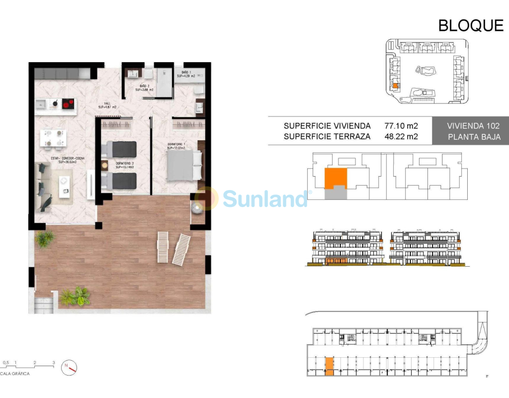 Nytt boligprosjekt i La Siesta, Torrevieja Moderne leiligheter med utmerkede fasiliteter Dette nye boligprosjektet i La Siesta, Torrevieja, tilbyr romslige og moderne leiligheter designet for komfort og stil. Boligene har 2 soverom og 2 bad (ett med eget bad) med store terrasser, fordelt på 7 lave blokker som omgir et imponerende fellesområde. Det inngjerdede boligområdet tilbyr førsteklasses fasiliteter, inkludert svømmebasseng for voksne og barn, anlagte hager, grillplass, lekeplass, padelbane og petanque-område, noe som gjør det ideelt for både avslapning og fritid. Førsteklasses beliggenhet på Costa Blanca Dette boligprosjektet ligger i det voksende nabolaget La Hoya, mellom de naturlige saltlagunene La Mata og Torrevieja, og tilbyr en perfekt balanse mellom ro og bekvemmelighet. Bare 3,5 km fra strendene i Torrevieja vil beboerne ha rask tilgang til daglige fasiliteter som supermarkeder, restauranter, helsesentre, sykkelruter og La Mata naturpark for fotturer. Det livlige sentrum av Torrevieja, med teatre, kinoer, kjøpesentre, sykehus og vannparken Aquopolis, ligger bare en kort kjøretur unna. Avstander til viktige severdigheter Torrevieja-strendene: 3,5 km La Marquesa Golf i Ciudad Quesada: 7 km Habaneras kjøpesenter: 2 km Alicante lufthavn: 40 km Murcia Corvera lufthavn: 60 km Spesifikasjoner av høy kvalitet Hver leilighet er bygget med moderne finish og designet for maksimal funksjonalitet: Fullt utstyrt kjøkken med hvitevarer Motoriserte persienner Forsterket sikkerhetsdør Varmtvannssystem drevet av aerotermisk energi Fullt installert klimaanlegg Underjordisk parkeringsplass og bod inkludert Som et spesielt lanseringstilbud vil de første enhetene som selges inkludere et komplett møbel- og belysningspakke, slik at ditt nye hjem er klart til innflytting fra første dag. En livlig middelhavsstil Torrevieja er et av de mest populære reisemålene på Costa Blanca, med mer enn 300 soldager i året, kulturelle arrangementer, livlige promenader og utmerkede fasiliteter for vannsport. Med sin blanding av tradisjonell spansk sjarm og moderne bekvemmeligheter er det et ideelt sted for permanent opphold, ferie eller en smart investeringsmulighet. Din nye bolig venter på deg i Torrevieja Dette prosjektet kombinerer luksus, bekvemmelighet og en uovertruffen beliggenhet ved sjøen. Kontakt oss i dag for å avtale en visning og sikre deg din drømmebolig på Costa Blanca.