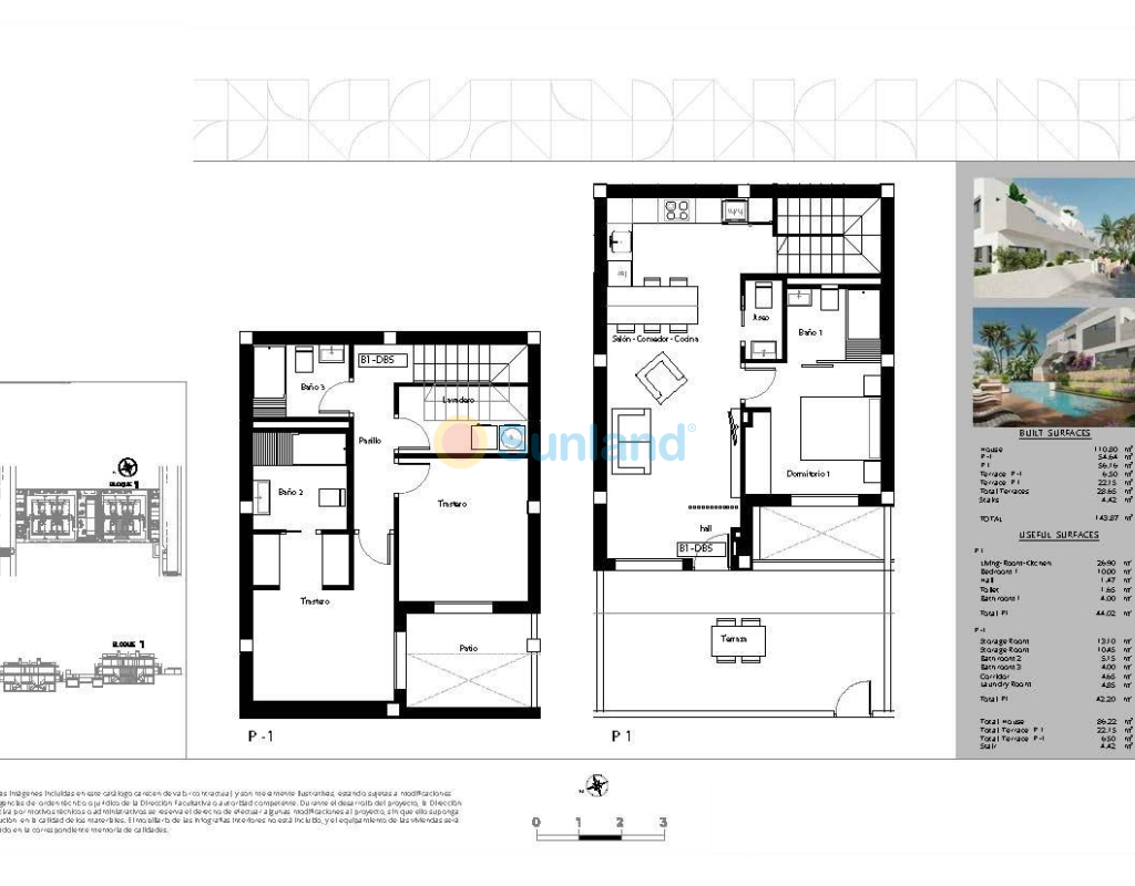 Nybygget boligkompleks i Los Balcones, Torrevieja Moderne boliger i en privilegert beliggenhet Dette eksklusive nybyggprosjektet i Los Balcones, Torrevieja består av 20 moderne bungalower, perfekt designet for komfort og stil. Prosjektet ligger bare 4 km fra strendene i Torrevieja og i nærheten av butikker, restauranter og viktige tjenester, og tilbyr en ideell beliggenhet for både permanent opphold og ferieturer på Costa Blanca. Los Balcones er et av de mest ettertraktede boligområdene i Torrevieja, med en fredelig atmosfære og likevel bare en kort kjøretur fra det livlige sentrum. Området har supermarkeder, lokale fasiliteter og et offentlig sykehus, med regelmessige bussforbindelser til byen. Eiendomsplaner som passer din livsstil Bungalower i første etasje: 3 soverom og 3 bad, inkludert et hovedsoverom med eget bad i hovedetasjen, åpen stue med kjøkken, gjestetoalett og romslig terrasse. En trapp fører til underetasjen med 2 ekstra soverom, 2 bad, vaskerom og uteplass. Bungalower i øverste etasje: 2 soverom, 2 bad, åpen kjøkkenløsning med stor stue, terrasse og privat solarium, perfekt for å nyte middelhavssolen. Alle boliger har private parkeringsplasser. Høy kvalitet og komfort Hver bungalow er designet med topp spesifikasjoner for å garantere maksimal komfort: Pansret inngangsdør og motoriserte aluminiumsluker Doble vinduer med solbeskyttelse Fullt installert klimaanlegg Aerotermisk varmtvannssystem Innredet kjøkken med hvitevarer LED-belysning inne og ute Bad med møbler, speil og dusjvegger Alarmsystem med detektorer og sentralenhet Eksklusive fellesfasiliteter Boligkomplekset har vakre anlagte hager, et felles svømmebasseng i to etasjer og et fullt utstyrt treningsstudio, som skaper det perfekte miljøet for å slappe av og sosialisere. Utmerket tilknytning på Costa Blanca Utbyggingen har utmerkede transportforbindelser: Strender: 4 km Alicante lufthavn: 55 km (40 minutter) Murcia lufthavn: 65 km (1 time) Villamartín golfbane: 9 km Torrevieja marina: 5 km Ditt nye hjem i Torrevieja venter Med sitt moderne design, høykvalitets finish og privilegerte beliggenhet er dette boligkomplekset i Los Balcones det perfekte valget for et nytt liv ved Middelhavet. Kontakt oss i dag for å avtale en visning og sikre deg din drømmebolig i Torrevieja.