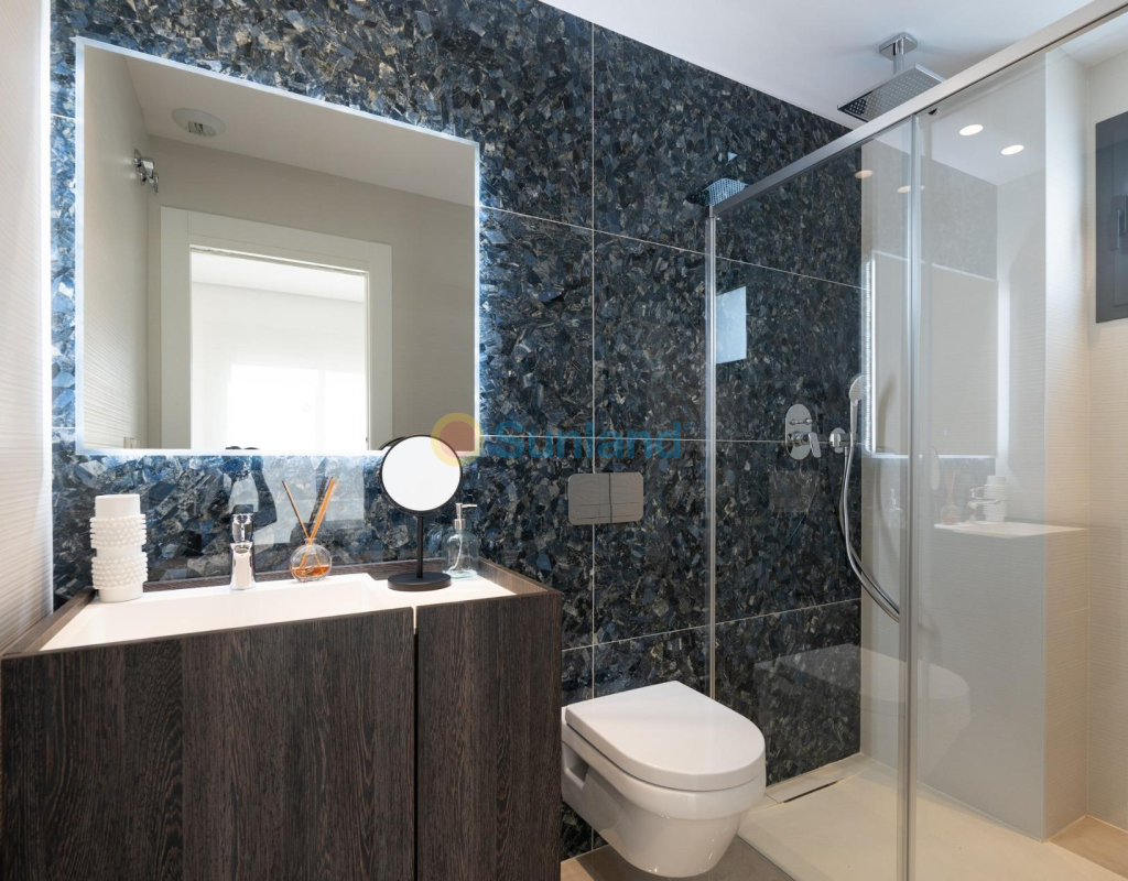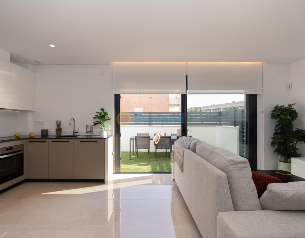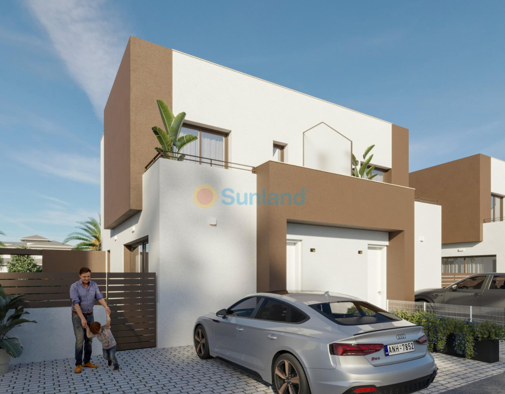 Nye tomannsboliger ved sjøen i La Marina - El Pinet-stranden Eksklusivt middelhavsliv nær stranden Dette nye boligprosjektet med tomannsboliger i La Marina, bare 500 meter fra El Pinet-stranden, tilbyr en uovertruffen kombinasjon av moderne design og et privilegert naturmiljø. Beliggende ved siden av Las Salinas naturpark, kan beboerne nyte gyldne sandstrender, krystallklart vann, beskyttede sanddyner og en hundre år gammel furuskog – det perfekte stedet å bo hele året eller nyte som et feriested. Moderne middelhavsvillaer designet for komfort Villaene er fordelt på to etasjer, med: 3 romslige soverom og 3 bad Første etasje med åpen kjøkkenløsning og stue, ett soverom, ett bad og tilgang til privat hage med parkeringsplass Andre etasje med to soverom, begge med eget bad, og en stor terrasse som er koblet til hovedsoverommet Hver bolig er designet med lyse, komfortable interiører og høykvalitets finish, noe som skaper en unik og innbydende atmosfære. Fullt utstyrt med førsteklasses funksjoner Disse villaene leveres med: Fullt utstyrt kjøkken med induksjonstopp, avtrekksvifte, stekeovn, kjøleskap og forhåndsinstallert oppvaskmaskin Moderne skap med førsteklasses finish Fullt installert sentral klimaanlegg Elektriske persienner Felles svømmebasseng omgitt av anlagte hager En førsteklasses beliggenhet på Costa Blanca Å bo i La Marina betyr å nyte alle fordelene ved en by med gode tjenester, samtidig som man er omgitt av natur og Middelhavet. Innen gangavstand finner du butikker, restauranter og viktige tjenester. Avstander til viktige severdigheter: El Pinet-stranden: 500 m Elche by: 17 km Alicante-Elche internasjonale lufthavn: 22 km Golfbaner (La Marquesa, El Plantío): 15–20 km Alicante by og havn: 30 km Den perfekte kystlivsstilen Enten du er på utkikk etter en permanent bolig, et andre hjem eller en smart investering, tilbyr disse villaene i El Pinet en livsstil preget av hav, natur og moderne komfort. Med sol hele året og en privilegert beliggenhet er La Marina et av de mest attraktive stedene på Costa Blanca. Kontakt oss i dag for å avtale en visning og sikre deg din drømmevilla ved Middelhavet.