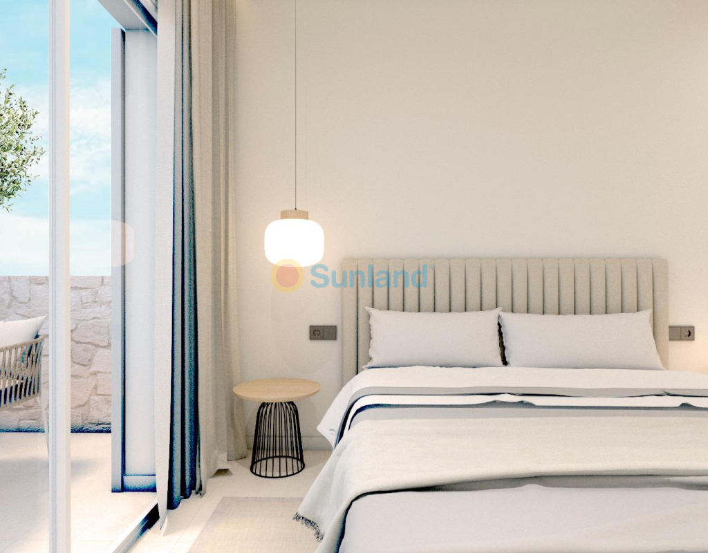 NYBYGD VILLA I TORRE DE LA HORADADA Nybygget villa i boligkompleks med felles svømmebasseng i Torre de la Horadada som ligger 800 meter fra stranden. Villaen har 4 soverom, 3 bad, åpen kjøkkenløsning med stue, garderober, terrasse, privat solarium, hage og parkeringsplass. Torre de la Horadada ligger sør for Alicante med en vakker beliggenhet ved kysten. De vakre strendene i Torre de la Horadada og Mil Palmeras har fin sand og en vakker strandpromenade. Det er mange restauranter, barer og butikker, og du kan også drive med vannsport, dykking og snorkling. Det er gode forbindelser, bare 40 minutter fra flyplassene i Alicante og Murcias Corvera, med store kommersielle kjøpesentre og flere golfbaner innen rekkevidde.