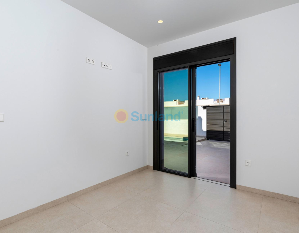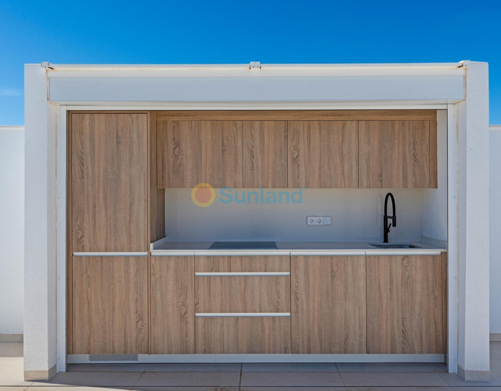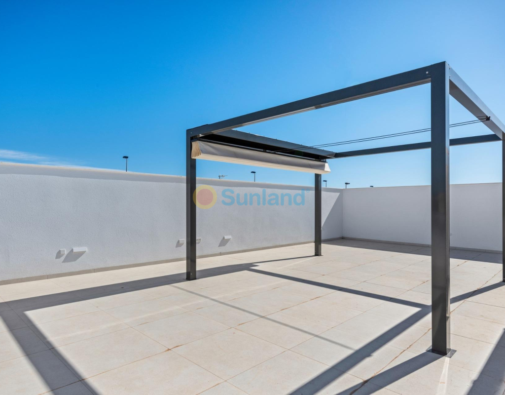 Eksklusive nybygg i Pilar de la Horadada, Costa Blanca Moderne middelhavsstil nær stranden Oppdag dette eksklusive nybyggprosjektet med bare 8 moderne boliger i Pilar de la Horadada, som ligger i gangavstand fra sentrum og bare 3,5 km fra de vakre strendene i Torre de la Horadada og Mil Palmeras. Denne sjarmerende kystbyen, som ligger i den sørligste delen av Costa Blanca, er kjent for sin avslappede atmosfære, tradisjonelle spanske sjarm og utmerkede fasiliteter. Innbyggerne kan nyte godt av et bredt utvalg av tjenester, inkludert supermarkeder, restauranter, butikker og fritidsområder, alt bare noen få minutter unna. Elegante boliger designet for komfort og stil Utbyggingen tilbyr et utvalg av leiligheter i første etasje med terrasser og private hager, eller leiligheter i øverste etasje med romslige terrasser og private solarium. Hver bolig har 3 soverom og 2 bad, hvorav ett er ensuite, designet med moderne linjer og høykvalitets finish for å sikre maksimal komfort. Boligkomplekset har et felles svømmebasseng omgitt av anlagte hager, som skaper et innbydende og fredelig miljø for avslapning og fritid. Hver eiendom har også en privat parkeringsplass og et bod. Høy kvalitet på finish og førsteklasses funksjoner Disse nybygde boligene er konstruert med materialer av topp kvalitet og med fokus på detaljer. Viktige spesifikasjoner inkluderer: Aluminiumsvinduer i antrasittgrått med termisk barriere (merket CORTIZO) Firedobbel vinduer med solbeskyttelse Elektriske aluminiumsluker i soverommene Hengende toaletter og dusjkabinetter med integrert gulv Baderomsmøbler med LED-bakbelyste speil og elektriske håndklestativ Fullt utstyrt kjøkken med Miele-apparater LED-belysning innvendig og utvendig i hele boligen Komplett klimaanlegg via kanaler (Fujitsu-system) Perfekt beliggenhet på Costa Blanca Pilar de la Horadada har en ideell beliggenhet både for permanent opphold og ferier. Byen kombinerer det beste av tradisjonelt spansk liv med moderne infrastruktur og nærhet til havet. Viktigste avstander: Strendene i Torre de la Horadada og Mil Palmeras: 3,5 km Lo Romero golfbane: 6 km Murcia-Corvera flyplass: 40 km Alicante flyplass: 55 km Marinaen i San Pedro del Pinatar: 10 km Ditt nye hjem i solen venter Nyt den perfekte kombinasjonen av design, komfort og middelhavsstil i disse nybygde boligene i Pilar de la Horadada. Enten du er på utkikk etter et feriested eller en bolig for hele året, tilbyr dette eksklusive prosjektet den ideelle balansen mellom kvalitet, beliggenhet og moderne livsstil. Kontakt oss i dag for mer informasjon eller for å avtale en visning.