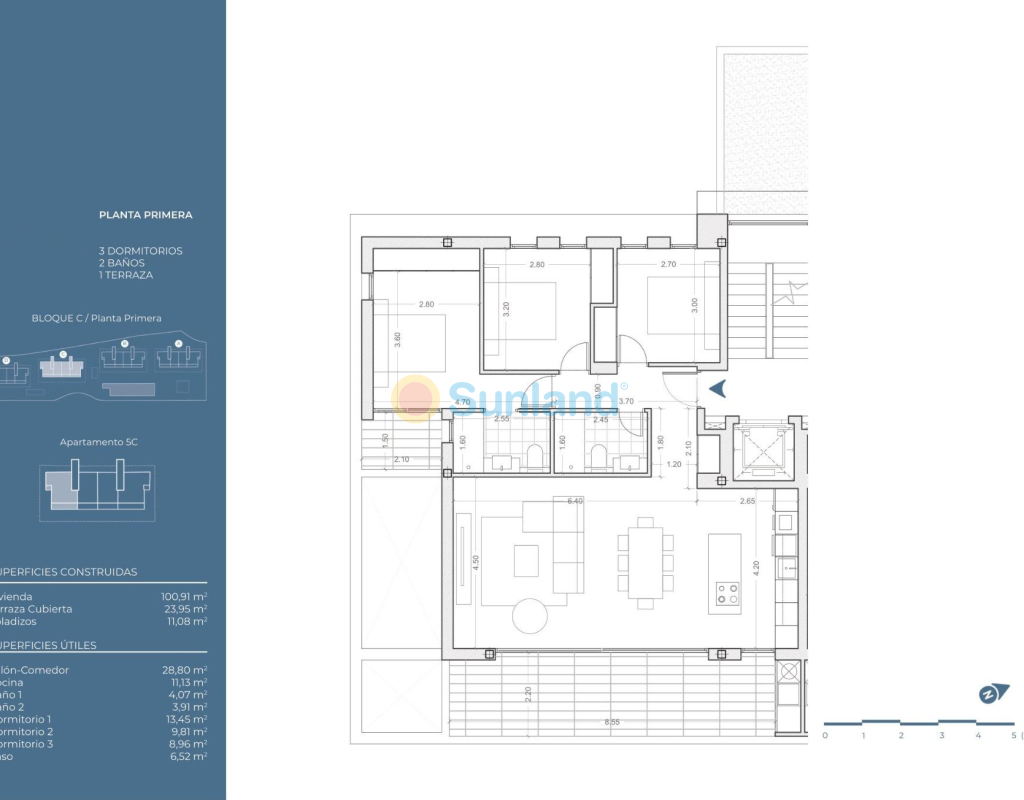 NYBYGD BOLIGKOMPLEKS I LA NUCIA Nybygget boligkompleks med leiligheter og toppleiligheter med felles utendørsbasseng, parkering, bod, heis, treningsstudio, felles spa med oppvarmet innendørsbasseng, badstue og boblebad i La Nucia. Moderne leiligheter med 2 og 3 soverom, alle med 2 bad, åpen kjøkkenløsning med romslig stue, garderober, terrasse, underjordisk parkeringsplass. Toppleilighetene har private solarium. Med sin avantgarde-arkitektur, utsøkte utførelser og avanserte tjenester er dette et drømmekompleks for dem som ønsker det høyeste nivået av komfort og raffinement. Interiør som kombinerer elegant design og moderne raffinement, skaper rom som gjør hver dag til en eksepsjonell opplevelse av komfort og velvære. Tysk designerkjøkken, Burger eller lignende, med benkeplate i Silestone, fullt utstyrt. Hvitevarer fra Siemens eller lignende. Induksjonstopp, avtrekksvifte, stekeovn, kjøleskap og oppvaskmaskin integrert i skapene. Forsterket inngangsdør med sikkerhetslås og lakkert panel som passer til det innvendige snekkerarbeidet. Mulighet for å montere lås med fjernkontroll fra smarttelefon eller nettbrett. Modulære garderobeskap med hengslede dører eller skyvedører som er lakkert for å matche resten av snekkerarbeidet, inkludert bagasjerom, skuffer og hengestang. Boligen vil være forberedt for å kunne trekke høyhastighetsinternett. Det vil være elektrisk gulvvarme med lavt forbruk på badene. Porttelefonen vil være elektronisk med fargebilde og ha integrert fjernkontroll fra telefon eller nettbrett. Samsung klimaanlegg. Hvert rom vil ha sin egen innvendige maskin og uavhengig kontroll. Klimaanlegget vil ha fjernkontroll. Det kan styres fra telefon eller nettbrett. Den komplette installasjonen av klimaanlegget vil bli utført med en varmepumpe som sørger for både kjøling og oppvarming. Det vil også bli brukt kanaler av glassfiber. Innendørsenhetene plasseres i undertaket på badene og i korridorene, mens utendørsenheten installeres i det området som er anvist i prosjektet. Ventilasjon. Installasjon av innvendig luftfornyelse i boligene med avtrekk på bad og kjøkken og klokke for programmering av tidsskjema. Svømmebasseng for felles bruk med saltvannsklorering og automatisk kontroll av PH og klor. I kjelleren blir det gymsal, oppvarmet innendørsbasseng, boblebad, badstue, dampbad, fargeterapi og omkledningsrom med bad. Store terrasseområder og hager med stedegne planter for flere bruksområder i fellesområdet. Omkretsen av tomten vil bli beplantet med planter som vil skape en privat atmosfære i innhegningen etter hvert som de vokser. Fellesområdene vil bli videoovervåket. Denne boligen har en privilegert beliggenhet mellom Nucia og Altea, og har et eksepsjonelt miljø og utmerkede tjenester i urbanisasjonen.