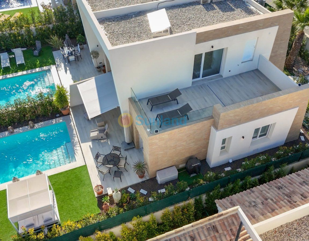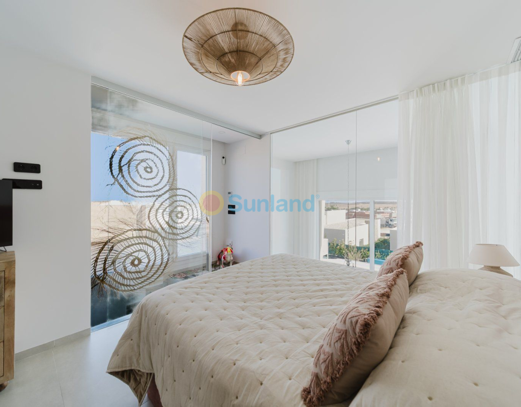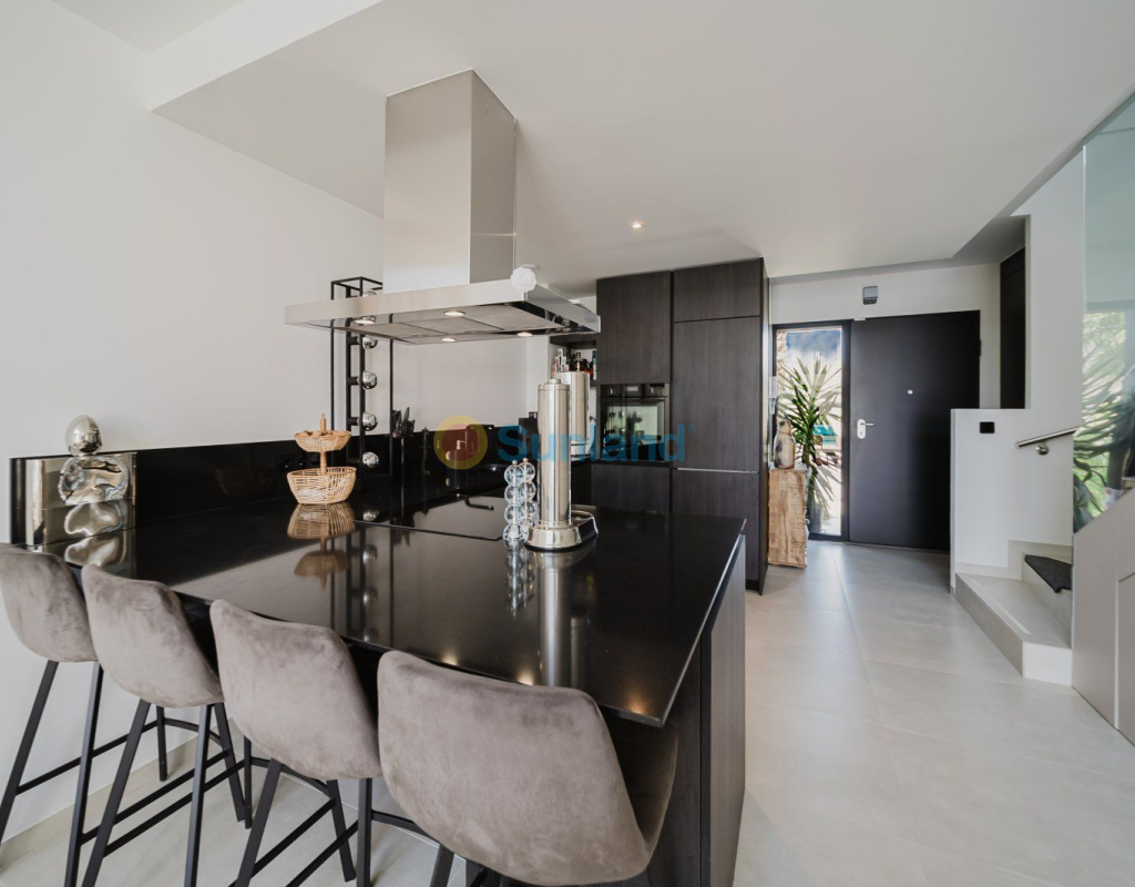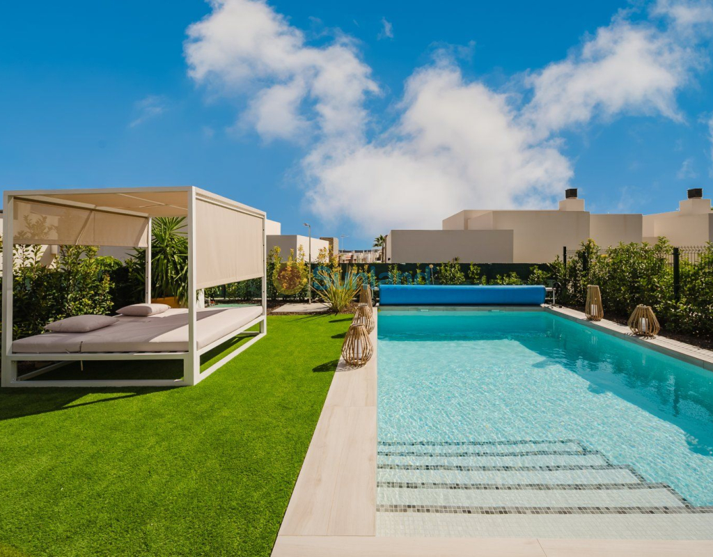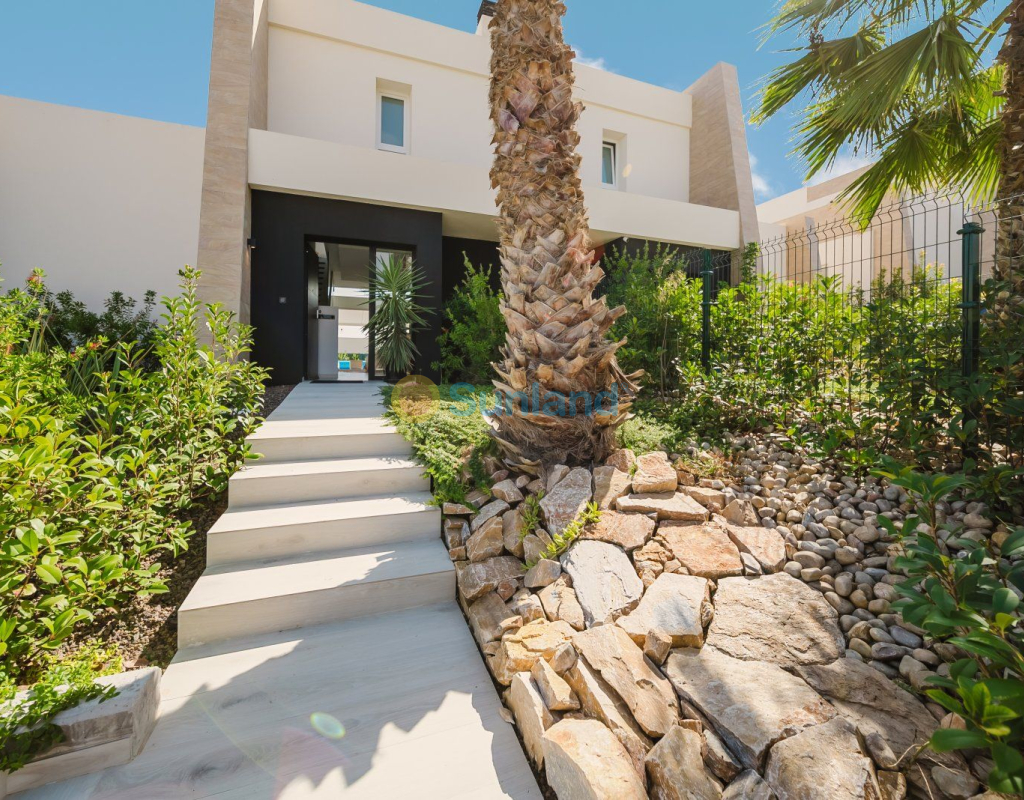 Moderne halvannenebolig med privat basseng på La Finca Golf, Algorfa. Ligger i et eksklusivt boligområde innenfor La Finca Golf. Denne moderne halvanneneboligen ble bygget i 2024 på en tomt på 312 m² og har 108 m² fordelt på to etasjer. Boligen har 3 soverom (2 i første etasje og 1 i andre etasje med terrasse), 2 bad med gulvvarme, en romslig stue med dobbel takhøyde og et moderne fullt utstyrt kjøkken. Uteområdet har en lettstelt hage med automatisk vanning, privat svømmebasseng på 24 m² (4×6 m) og parkeringsplass på egen tomt. Utstyrt med aerotermisk system, solcellepaneler for varmtvann, elektriske persienner og markiser. Boligen er i perfekt stand, sørvestvendt og svært lys. Kvaliteter: 3 soverom (2 i første etasje) 2 bad med gulvvarme 108 m² bebygd / 312 m² tomt Privat basseng 24 m² (4×6 m) Stue med dobbel takhøyde Moderne kjøkken fullt utstyrt Aerotermisk system og solcellepaneler Elektriske persienner og markiser Lettstelt hage med automatisk vanning Parkering på egen tomt Sørvestvendt Byggeår: 2024 Om La Finca Golf Resort La Finca Golf er en av Costa Blancas beste golfdestinasjoner. Denne 18-hulls, par-72 mesterskapsbanen tilbyr brede fairways, perfekte greener, strategisk plasserte bunkere, vannhinder, vakre naturlandskap og imponerende utsikter, noe som gjør golfopplevelsen utfordrende, men likevel underholdende for golfere på alle nivåer. På La Finca vil du oppdage toppmoderne fasiliteter, inkludert et velutstyrt sport- og treningssenter, paddel- og tennisbaner, og tre spisesteder—et klubbhus restaurant og to eksklusive Wine & Dine-opplevelse. Fasiliteter: 18-hulls par-72 mesterskapsgolfbane Klubbhusrestaurant og bar Wine & Dine Frijolino og Misto Treningssenter, tennis- og paddelbaner 5-stjerners La Finca Hotel Spa og svømmebasseng Vinkjeller, La Finca Bodega Ladestasjon for elbiler Avstand til: Alicante flyplass – 55 km, 40 min Kjøpesenteret La Zenia Boulevard – 21 km, 20 min Stranden i Guardamar del Segura – 19 km, 20 min Vannpark, Aquopolis Torrevieja – 19 km, 20 min Hospital Universitario de Torrevieja – 18 km, 18 min