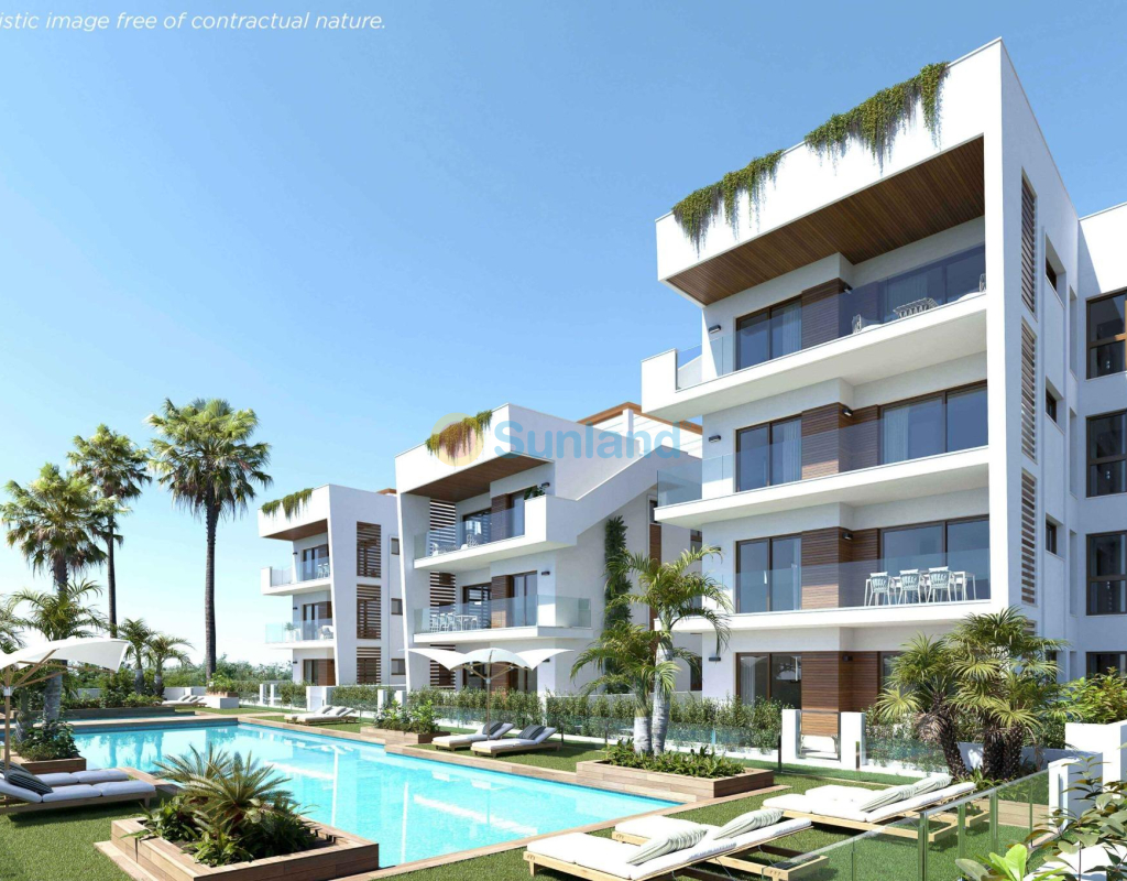 Nye boliger i middelhavsstil i Los Alcázares, Costa Cálida Moderne kystliv i en privilegert beliggenhet Oppdag dette eksklusive nye boligprosjektet i Los Alcázares, en sjarmerende kystby i regionen Murcia, kjent for sin avslappede middelhavsatmosfære, gylne strender og sol hele året. Komplekset kombinerer moderne design, komfort og stil for å skape en unik boligopplevelse i et av de mest ettertraktede kystområdene i Sør-Spania. Los Alcázares har 7 kilometer kystlinje langs Mar Menor, en naturlig saltvannslagune kjent for sitt rolige og terapeutiske vann og sitt milde klima, med en gjennomsnittstemperatur på 18 °C hele året. Byen tilbyr et bredt utvalg av tjenester, som restauranter, supermarkeder, butikker, medisinske sentre og fritidsområder, alt innen gangavstand. Elegante boliger med private uteområder Velg mellom leiligheter med 2 eller 3 soverom, alle med 2 bad (ett en suite) og store uteområder. Boligene i første etasje har private hager, de på mellometasjene har store terrasser, og penthouse-leilighetene i øverste etasje har private solterrasser, perfekte for å nyte solen, spise utendørs eller bare slappe av i ditt eget fredelige tilfluktssted. Hver eiendom er designet med moderne finish og materialer av høy kvalitet, noe som garanterer komfort og energieffektivitet. Alle boligene har en parkeringsplass, og noen enheter har også en bod, noe som gir praktisk og komfortabel bruk. Enestående fellesskap og tjenester Dette lukkede fellesskapet har vakre hager, et stort felles svømmebasseng og mange grønne områder hvor man kan slappe av. Boligdesignet fremmer friluftsliv, og integreres perfekt med det naturlige miljøet og skaper en rolig og trygg atmosfære. Beliggende bare 900 meter fra Los Narejos-stranden og bare 10 minutters gange fra sentrum, kan beboerne nyte det beste av kystlivet og ha alle bekvemmeligheter i nærheten. Den internasjonale flyplassen i Murcia-regionen ligger bare 22 km unna (ca. 30 minutter), og den historiske byen Cartagena ligger bare 15 minutter unna med bil. Flere golfbaner, som Roda Golf og La Serena Golf, ligger mindre enn 5 km unna, noe som gjør dette til et ideelt reisemål for golfentusiaster. En perfekt balanse mellom avslapning og aktivitet Los Alcázares er ikke bare et paradis for avslapning, men også et sentrum for friluftsliv og kultur. De rolige vannene i Mar Menor er ideelle for windsurfing, kitesurfing og seiling, mens omgivelsene byr på pittoreske turstier og sykkelruter. Ditt ideelle hjem under solen venter på deg Enten du er på jakt etter en permanent bolig, et feriested eller en smart investeringsmulighet, tilbyr dette nye boligkomplekset i Los Alcázares den perfekte kombinasjonen av middelhavs sjarm, komfort og livsstil. Kontakt oss i dag for å avtale en visning og oppdag ditt nye hjem på Costa Cálida.