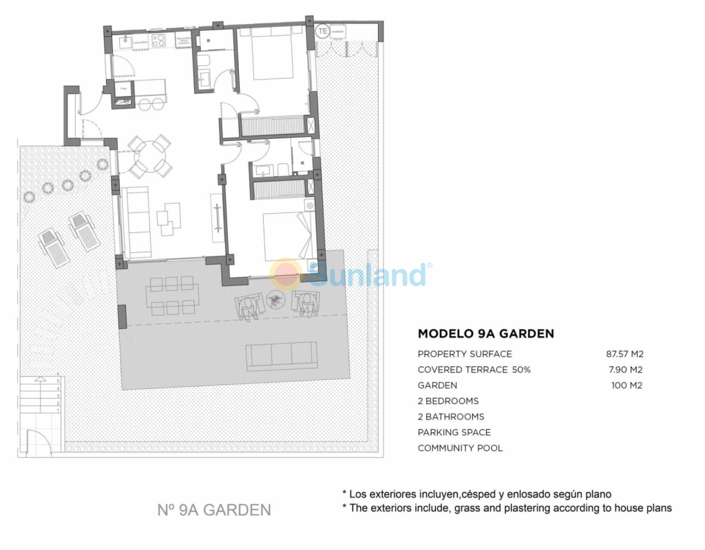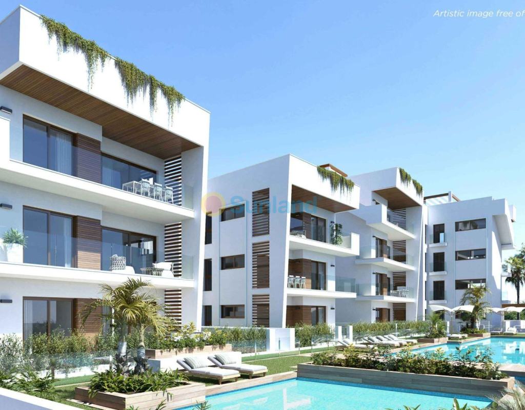Nye boliger i middelhavsstil i Los Alcázares, Costa Cálida Moderne kystliv i en privilegert beliggenhet Oppdag dette eksklusive nye boligprosjektet i Los Alcázares, en sjarmerende kystby i regionen Murcia, kjent for sin avslappede middelhavsatmosfære, gylne strender og sol hele året. Komplekset kombinerer moderne design, komfort og stil for å skape en unik boligopplevelse i et av de mest ettertraktede kystområdene i Sør-Spania. Los Alcázares har 7 kilometer kystlinje langs Mar Menor, en naturlig saltvannslagune kjent for sitt rolige og terapeutiske vann og sitt milde klima, med en gjennomsnittstemperatur på 18 °C hele året. Byen tilbyr et bredt utvalg av tjenester, som restauranter, supermarkeder, butikker, medisinske sentre og fritidsområder, alt innen gangavstand. Elegante boliger med private uteområder Velg mellom leiligheter med 2 eller 3 soverom, alle med 2 bad (ett en suite) og store uteområder. Boligene i første etasje har private hager, de på mellometasjene har store terrasser, og penthouse-leilighetene i øverste etasje har private solterrasser, perfekte for å nyte solen, spise utendørs eller bare slappe av i ditt eget fredelige tilfluktssted. Hver eiendom er designet med moderne finish og materialer av høy kvalitet, noe som garanterer komfort og energieffektivitet. Alle boligene har en parkeringsplass, og noen enheter har også en bod, noe som gir praktisk og komfortabel bruk. Enestående fellesskap og tjenester Dette lukkede fellesskapet har vakre hager, et stort felles svømmebasseng og mange grønne områder hvor man kan slappe av. Boligdesignet fremmer friluftsliv, og integreres perfekt med det naturlige miljøet og skaper en rolig og trygg atmosfære. Beliggende bare 900 meter fra Los Narejos-stranden og bare 10 minutters gange fra sentrum, kan beboerne nyte det beste av kystlivet og ha alle bekvemmeligheter i nærheten. Den internasjonale flyplassen i Murcia-regionen ligger bare 22 km unna (ca. 30 minutter), og den historiske byen Cartagena ligger bare 15 minutter unna med bil. Flere golfbaner, som Roda Golf og La Serena Golf, ligger mindre enn 5 km unna, noe som gjør dette til et ideelt reisemål for golfentusiaster. En perfekt balanse mellom avslapning og aktivitet Los Alcázares er ikke bare et paradis for avslapning, men også et sentrum for friluftsliv og kultur. De rolige vannene i Mar Menor er ideelle for windsurfing, kitesurfing og seiling, mens omgivelsene byr på pittoreske turstier og sykkelruter. Ditt ideelle hjem under solen venter på deg Enten du er på jakt etter en permanent bolig, et feriested eller en smart investeringsmulighet, tilbyr dette nye boligkomplekset i Los Alcázares den perfekte kombinasjonen av middelhavs sjarm, komfort og livsstil. Kontakt oss i dag for å avtale en visning og oppdag ditt nye hjem på Costa Cálida.