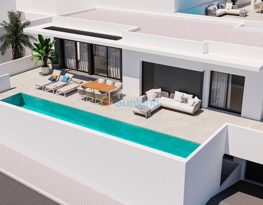 Moderne luksusvilla med fjellutsikt i Ciudad Quesada, Costa Blanca Moderne design og eksepsjonell komfort Oppdag denne elegante nybygde villaen i Ciudad Quesada, et av de mest ettertraktede boligområdene på Costa Blanca. Villaen ligger på en 300 m² stor tomt med en vakker hage og et privat 3x12 m svømmebasseng, og tilbyr den perfekte blandingen av moderne arkitektur, naturlig skjønnhet og middelhavskomfort. Eiendommen har 265 m² innvendig areal fordelt på to etasjer, designet for å maksimere lys, plass og funksjonalitet. Store vinduer fyller oppholdsrommene med naturlig sollys og gir samtidig en fantastisk utsikt over fjellene og naturen rundt. Romslig planløsning med fleksible oppholdsrom Villaen har 4 soverom, med mulighet for å lage et 5. soverom eller et ekstra oppholdsrom, slik at den passer perfekt til din livsstil. I hovedetasjen finner du en åpen stue og spisestue som er koblet til et moderne, fullt utstyrt kjøkken med eksklusive hvitevarer, noe som skaper en sømløs overgang til terrassen og bassengområdet; ideelt for underholdning eller avslapning utendørs. I underetasjen (kjeller) gir de resterende soverommene en kjølig og fredelig atmosfære, med direkte tilgang til hagen. Eiendommen har også en lukket garasje, vaskerom og høykvalitets finish overalt. Høy kvalitet på finish og bærekraftige funksjoner Hver detalj i denne villaen er nøye designet for komfort og effektivitet. Den inkluderer: Fullt utstyrt kjøkken med integrerte hvitevarer Bad med møbler, dusjvegger og elektriske håndkletørkere Klimaanlegg med kanaler (fullt installert) Solcellepaneler for energibesparelser Elektriske persienner i stue og soverom Pansret inngangsdør for maksimal sikkerhet Førsteklasses beliggenhet i Ciudad Quesada Denne villaen ligger i et eksklusivt og rolig område, og har en uovertruffen beliggenhet nær alt. La Marquesa golfbane ligger bare 1 km unna, og er et paradis for golfelskere. De blåflaggede strendene i Guardamar del Segura ligger bare 6 km unna, mens Torrevieja og Orihuela Costa kan nås på under 15 minutter. Alicante internasjonale lufthavn ligger omtrent 40 km (35 minutter) unna, noe som sikrer utmerkede transportforbindelser. Opplev middelhavslivet Omgitt av appelsinlunder, sportsklubber, restauranter og alle nødvendige tjenester, tilbyr Ciudad Quesada et livlig, men likevel fredelig miljø. Det er det ideelle stedet for de som søker et luksuriøst hjem i solen; perfekt som permanent bolig, feriebolig eller investeringseiendom. Kontakt oss i dag for å avtale et besøk og opplev det beste av middelhavslivet i ditt nye hjem i Ciudad Quesada.