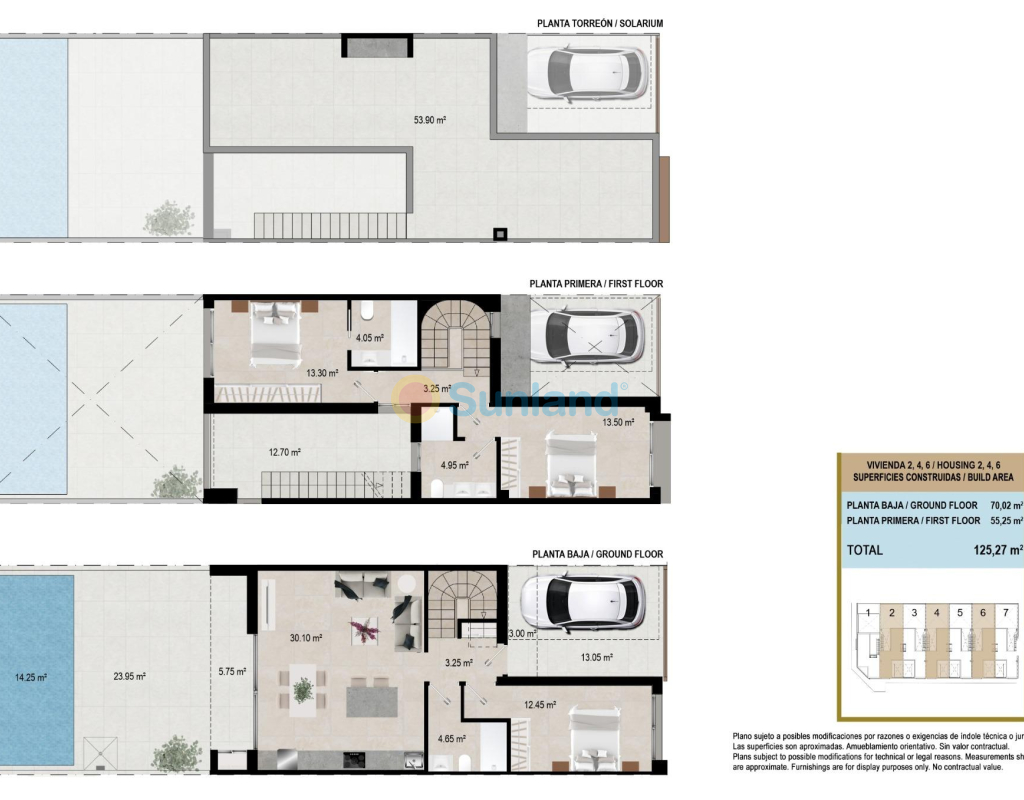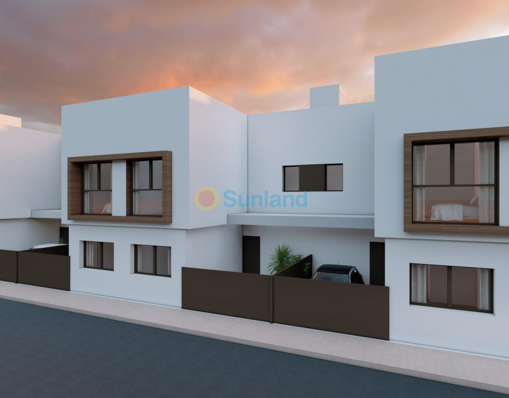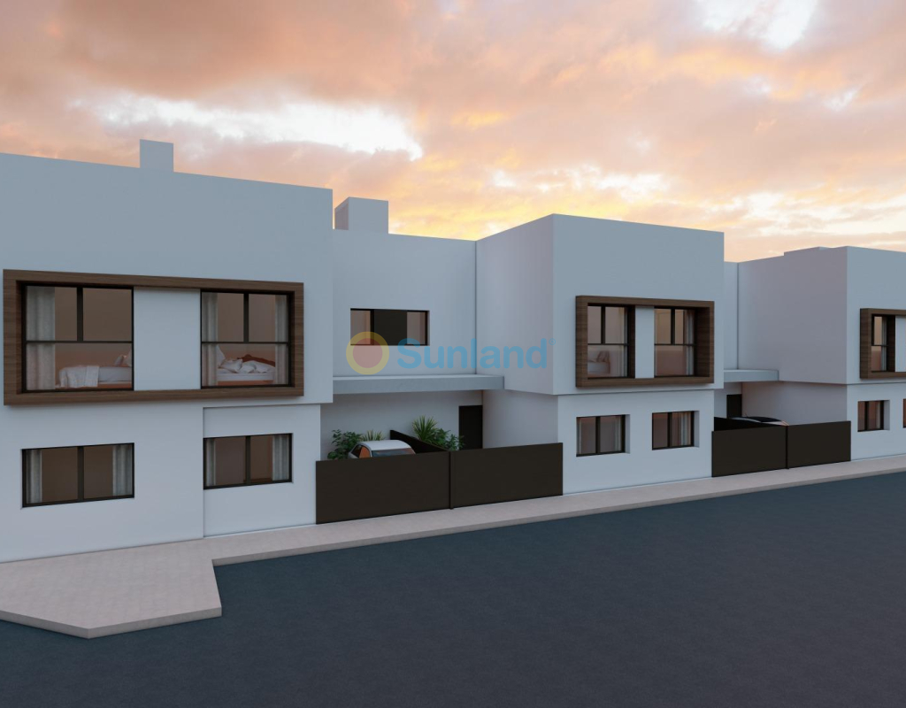 Nybygde rekkehus i San Javier - moderne design og førsteklasses beliggenhet Rekkehus med moderne design og privat svømmebasseng Oppdag dette eksklusive komplekset med 8 splitter nye rekkehus i San Javier, Murcia, som er designet for å tilby maksimal komfort og en moderne livsstil. Hver bolig har et privat svømmebasseng, terrasse, solarium og parkeringsplass, noe som gir en ideell plass for avslapning og nytelse året rundt. Boligene er bygget med materialer av høy kvalitet og har en åpen planløsning som utnytter det naturlige lyset på best mulig måte. De er perfekte både som permanent bolig og som feriehus på Costa Cálida. Distribusjon og utstyr av høy kvalitet Hvert rekkehus har: 3 romslige soverom med garderober og kommoder. 3 fullt utstyrte bad med møbler, speil og skjermer. Åpent konseptkjøkken, fullt utstyrt og med hvitevarer inkludert. Romslig stue-spisestue med store vinduer som går ut til terrassen. Privat svømmebasseng med dusj og hage med kunstgress. Solarium med sommerkjøkken, perfekt for å nyte middelhavsklimaet. Pre-installasjon av kanalisert klimaanlegg i hver etasje. PVC utvendig snekring med doble vinduer, noe som garanterer termisk og akustisk isolasjon. Sikkerhetsinngangsdør, for større trygghet og beskyttelse. Strategisk beliggenhet i San Javier San Javier er en kystby med et bredt utvalg av tjenester, idrettsanlegg og fritidsområder. Beliggenheten til denne boligen gir rask tilgang til: Strendene i Mar Menor - bare 5 minutter med bil. Strender ved Middelhavet - 10 minutter unna. Golfbaner - Ulike alternativer i området, ideelt for golfelskere. Kjøpesentre og tjenester - Alt du trenger bare noen få minutter unna. Murcia-Corvera lufthavn - 30 minutter unna. Alicante lufthavn - 45 minutter unna. Nyt det beste klimaet og den beste livskvaliteten i San Javier San Javier er et utmerket alternativ for de som leter etter en eiendom nær sjøen, med et privilegert klima og tilgang til alle slags utendørsaktiviteter. Ikke gå glipp av muligheten til å kjøpe en av disse eksklusive boligene. Kontakt oss i dag for mer informasjon eller for å avtale et besøk.