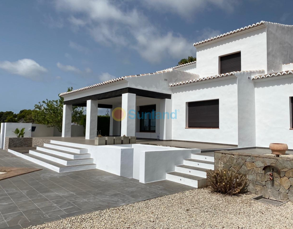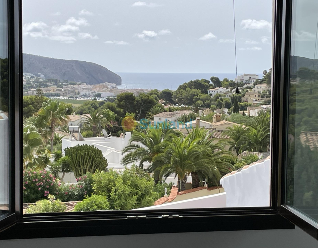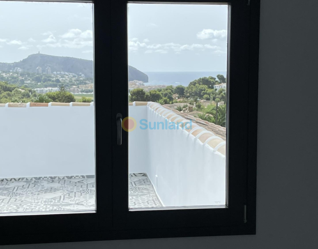 Villa i middelhavsstil med havutsikt til salgs i Moraira, Costa Blanca Elegant villa med panoramautsikt over havet Denne vakre villaen i middelhavsstil til salgs i Moraira (Costa Blanca, Alicante) tilbyr fantastisk utsikt over Cape Moraira, havet og den omkringliggende kystlinjen. Eiendommen ligger på en åskam og nyter total privatliv og ro, samtidig som den ligger bare 2 km fra det livlige sentrum av Moraira, med sine gylne strender, supermarkeder, restauranter og kafeer. Villaen er bygget på en nesten flat tomt på 897 m2 og tilbyr eksepsjonell komfort, vakre uterom og fantastisk utsikt fra alle hovedrommene. Romslig planløsning over to etasjer Villaen er fordelt på to etasjer som er designet for å maksimere naturlig lys og havutsikt. I første etasje er det en lys stue/spisestue med peis, et rom som er klargjort for installasjon av et moderne kjøkken og vaskerom (forhåndsinstallert rørleggerarbeid og elektrisitet), og et komplett bad med dusj. Denne etasjen har også en tilknyttet, men uavhengig gjesteleilighet med egen inngang, bestående av en stue-spisestue som kan fungere som en master suite, et soverom, et bad og et ekstra rom som er forberedt for et omkledningsrom eller eget bad. Inngangen til leiligheten har en vakkert restaurert massiv tredør, som gir autentisk middelhavsjarm. I øverste etasje, som nås via en intern trapp, finner du to komfortable soverom, et bad og en stor solterrasse med spektakulær havutsikt – perfekt for å slappe av eller nyte solnedgangen. Uteliv og middelhavsjarm Villaens eksteriør er designet for å nyte middelhavslivet til det fulle, med romslige terrasser, et unikt formet privat basseng med utendørs dusj og en lettstelt hage med automatisk vanning. Det er god plass til å spise ute, sole seg og underholde familie og venner. Høy kvalitet og finish Denne eiendommen tilbyr moderne komfort kombinert med middelhavskarakter, inkludert Aluminiumsvinduer med trefinish og doble vinduer Motoriserte persienner og myggnett i soverommene Innebygde garderober med skyvedører Sentralvarme med radiatorer Justerbar innvendig belysning Motorisert skyveport for biler og fotgjengere Privat parkering på tomten Førsteklasses beliggenhet nær viktige fasiliteter Moraira sentrum og strender: 2 km La Sella golfbane: 15 km Moraira havn: 2 km Kjøpesentre: 5 km Alicante internasjonale lufthavn: 90 km Opplev det beste av middelhavslivet Denne eksepsjonelle villaen kombinerer privatliv, eleganse og fantastisk havutsikt på en av Costa Blancas mest attraktive beliggenheter. Kontakt oss i dag for å avtale visning eller for å be om mer informasjon om dette vakre hjemmet i Moraira.
