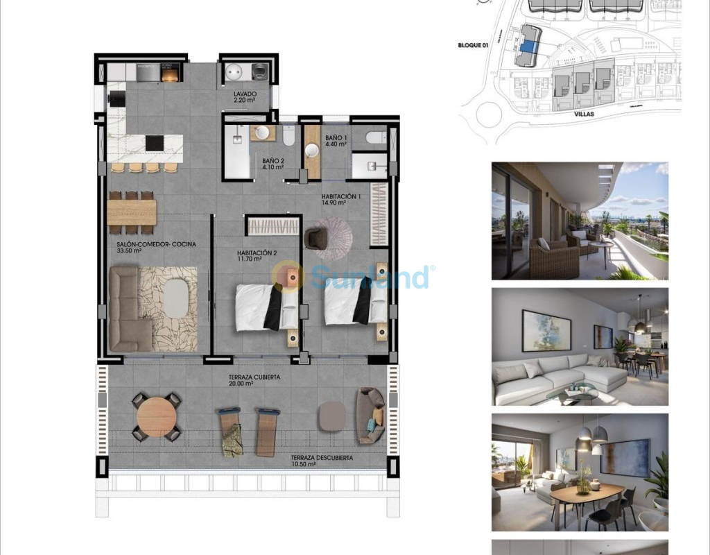Luksuriøse nybyggede leiligheter og villaer med panoramautsikt over havet i Finestrat Eksklusivt middelhavsliv nær Benidorm Oppdag et eksepsjonelt nytt luksuriøst boligprosjekt med leiligheter, de fleste med havutsikt, og private villaer i det prestisjefylte området Finestrat, bare noen minutter fra den livlige byen Benidorm og dens gylne strender. Dette privilegerte området ligger mellom fjellene og Middelhavet og tilbyr et fredelig miljø med rask tilgang til fine restauranter, eksklusive butikker, internasjonale skoler, golfbaner og marina. Alicante lufthavn ligger omtrent 55 km unna, mens sandstrendene i Benidorm og den sjarmerende gamlebyen ligger henholdsvis 3 km og 4 km unna. Moderne arkitektur og førsteklasses design Dette eksklusive feriestedet er designet for de som søker eleganse, moderne komfort og en middelhavsstil av høy kvalitet, og har innovativ arkitektur og romslige terrasser som tilbyr uhindret havutsikt og sol hele året. Hver eiendom er bygget etter de høyeste standarder med romslig interiør, vinduer fra gulv til tak og sømløs integrering mellom inne og ute. Velg mellom luksuriøse leiligheter med 2 og 3 soverom i første etasje med private hager, mellomste etasjer med store terrasser med havutsikt eller fantastiske penthouse-leiligheter med private solarium. Eksklusive villaer med 3 soverom er også tilgjengelige, med planløsning i ett plan, private bassenger og kjellere, ideelle for permanent boende eller investering med høy avkastning. Førsteklasses finish og avansert smarthusteknologi Boligene har fullt utstyrte kjøkken, sentral klimaanlegg, møblerte bad, dusjvegger og innebygde garderober. Alle enhetene har et smart alarmsystem, app-styrte persienner og belysning, med oppgraderingsmuligheter for ekstra hjemmeautomatiseringsfunksjoner. Privat parkering og boder er inkludert. Fasiliteter i resort-stil Nyt en sofistikert livsstil med eksepsjonelle fellesfasiliteter, inkludert • Rekreasjonsbassenger og solterrasser • 25 meter svømmebasseng • Fullt utstyrt treningsstudio og flerbruksområde • Utendørs trenings- og pilatesområde • Petanquebane • Lekeområde for barn • Omfattende anlagte hager med innfødte planter • Solenergisystem for forbruk på resortet Bærekraftig og energieffektivt boende Dette prosjektet er bygget med høyeffektive materialer og tilbyr topp energiprestasjon med energiklasse A og solenergiløsninger for å redusere miljøpåvirkningen. Førsteklasses beliggenhet og enkel tilgang • Benidorms strender 3 km • La Marina kjøpesenter 1 km • Puig Campana Golf 3 km • Benidorms gamleby og fritidsområde 4 km • Alicante internasjonale lufthavn 55 km • Direkte tilgang til motorvei AP7 Din ideelle investering og livsstilsvalg Opplev luksus, komfort og natur i perfekt harmoni. Kontakt oss i dag for å avtale et besøk eller få mer informasjon om dette eksklusive feriestedet i Finestrat.