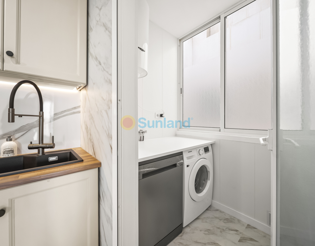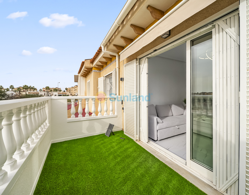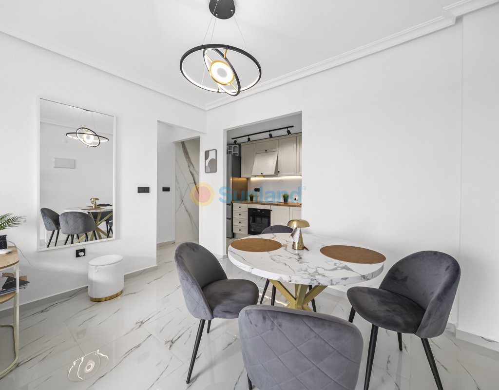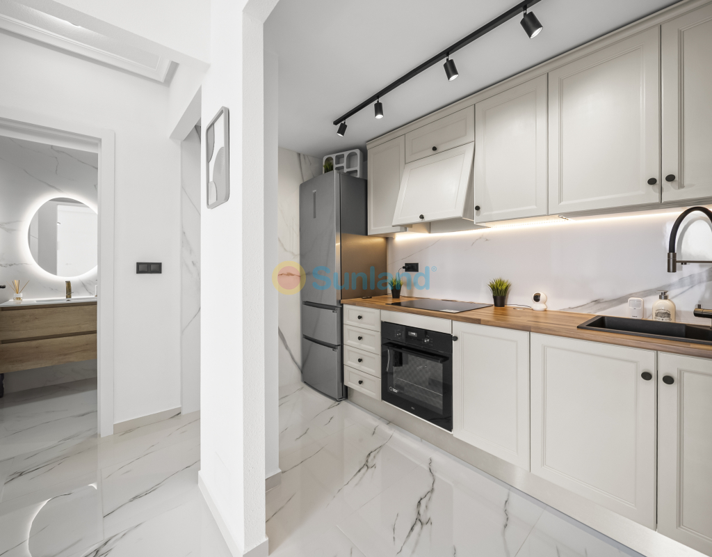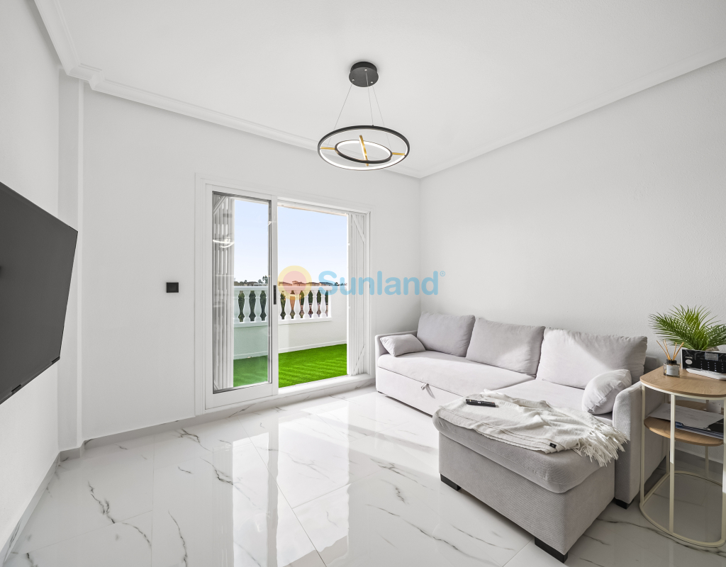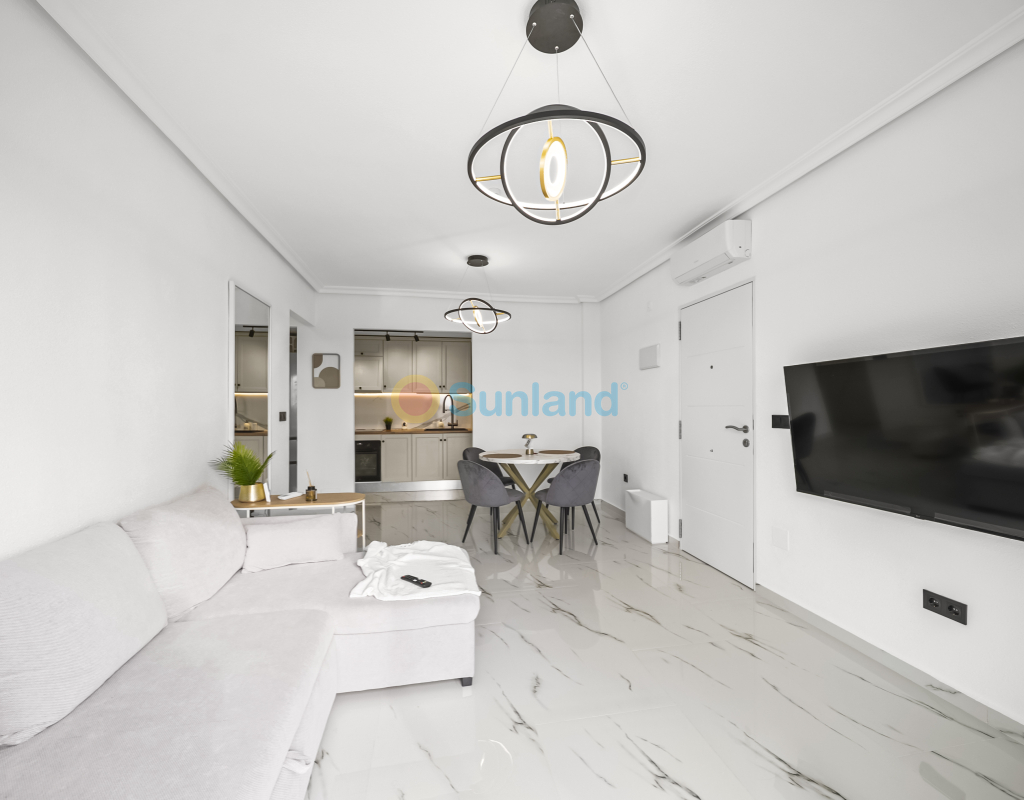 Renoveret leilighet med solrik terrasse og havutsikt i Zeniamar. Fullstendig renovert i 2025, beliggende i første etasje uten heis i boligkomplekset Zeniamar, Playa Flamenca. Leiligheten har 1 soverom, 1 bad, åpen kjøkkenløsning og terrasse vendt mot sørøst med havutsikt. Selges møblert, med bod og tilgang til fellesbasseng. Kvaliteter 1 soverom 1 bad 52 m² bebygd Åpen kjøkkenløsning Terrasse med havutsikt Første etasje (uten heis) Bod Møblert Fellesbasseng Sørøstvendt Byggeår: 2001 Renovert i 2025 Årlige kostnader IBI: €125 Felleskostnader: €364 Beliggenhet Nær alle tjenester Kun få minutter fra supermarkeder, padelbaner, La Zenia Boulevard og restauranter