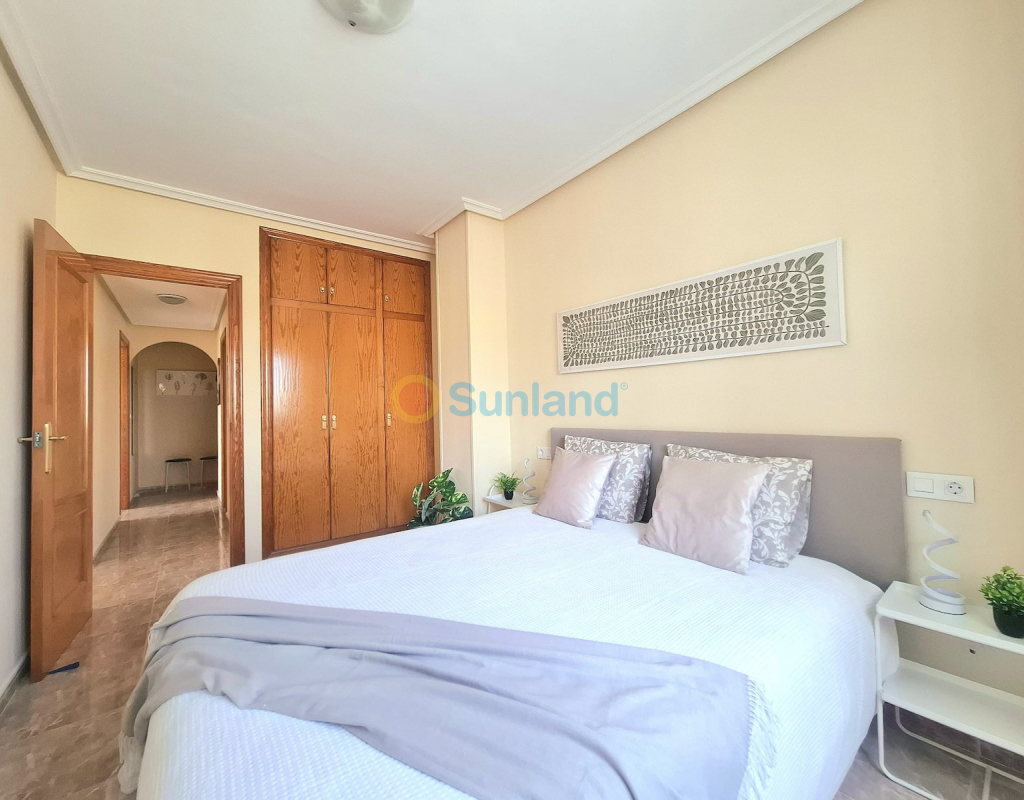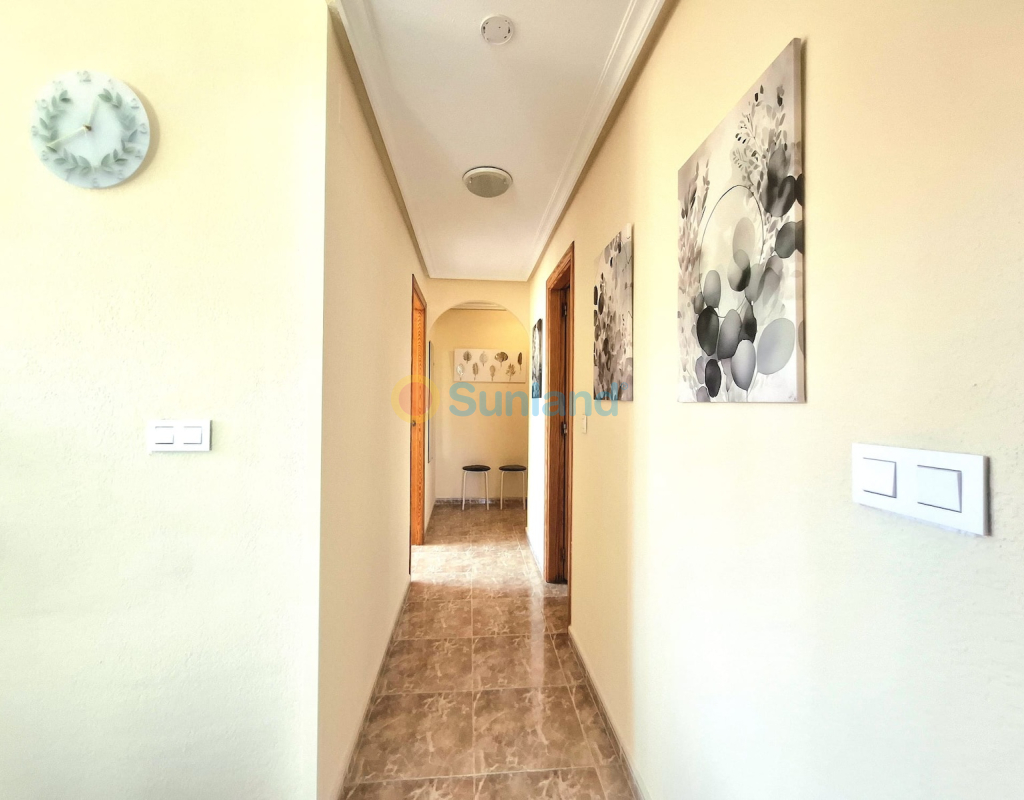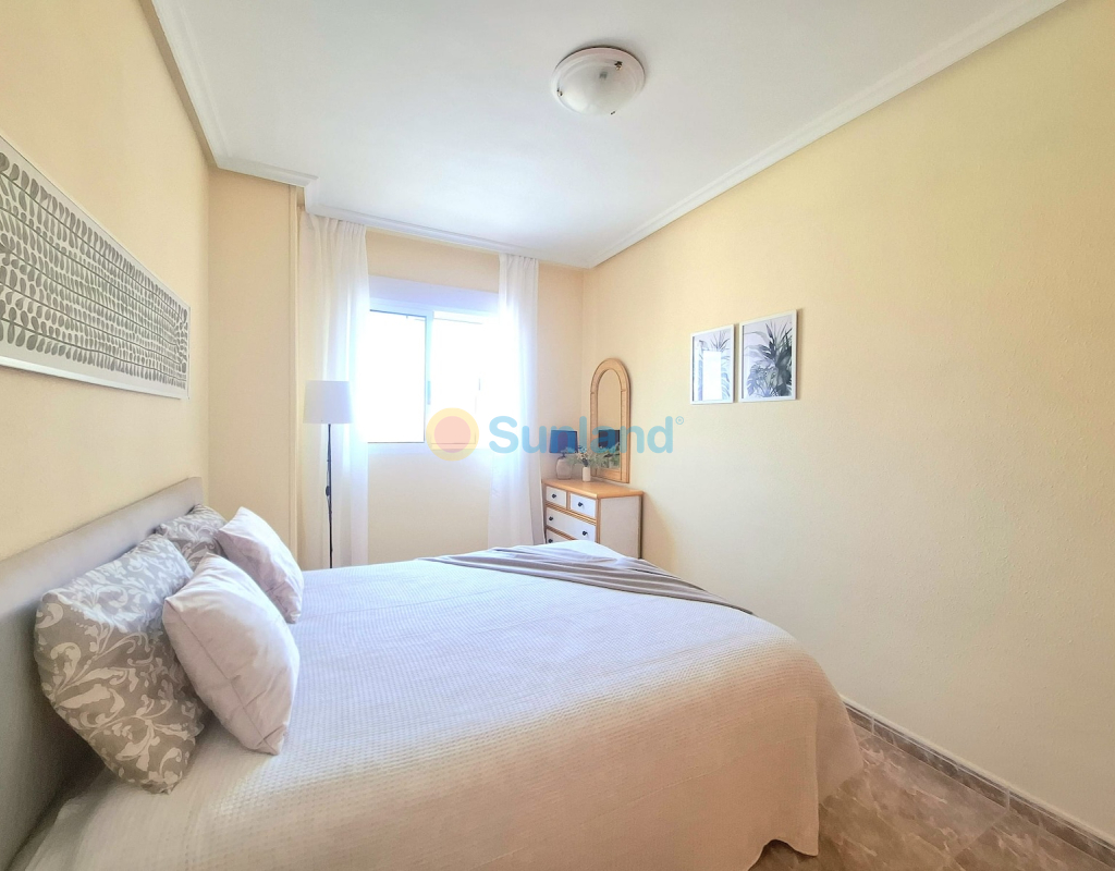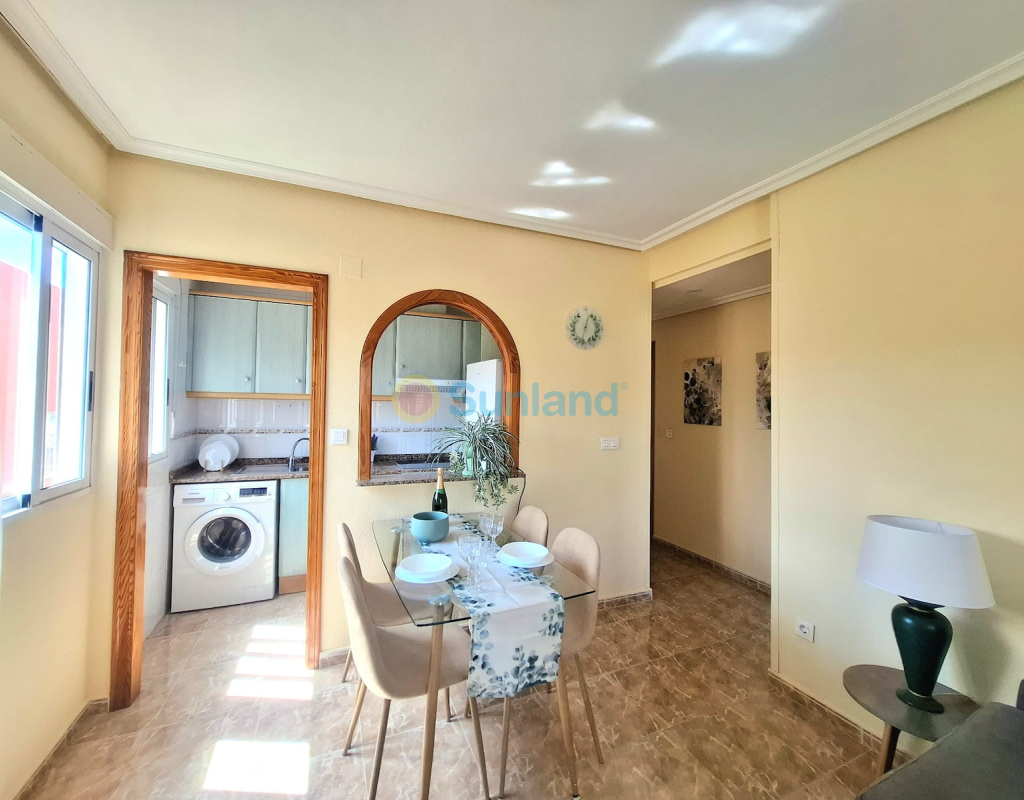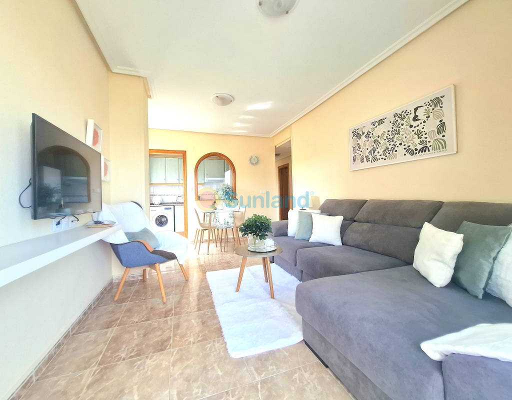 Leilighet i andre etasje i sentrum av Torrevieja. Leilighet beliggende midt i sentrum av Torrevieja, kun 1 km fra Playa del Cura. Den har 60 m² bebygd areal, fordelt på 2 soverom, 1 bad, åpen kjøkkenløsning og stue med utgang til en terrasse med nordøstorientering. Selges fullt møblert, med hvitevarer og aircondition, klar til å flytte rett inn. Del av et boligkompleks med felles svømmebasseng. Kjennetegn: 2 soverom 1 bad 60 m² bebygd Andre etasje Terrasse med nordøstlig orientering Utstyrt åpen kjøkkenløsning Aircondition Fullt møblert med hvitevarer Felles basseng Byggeår: 2002 Årlige kostnader: Felleskostnader: 563 € IBI (eiendomsskatt): 240 € Beliggenhet: 50 m fra helsesenteret La Loma 500 m til supermarkeder 1 km til Playa del Cura Midt i sentrum, nær butikker, transport og alle tjenester