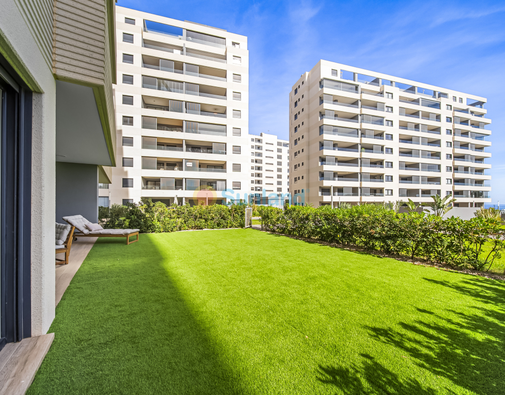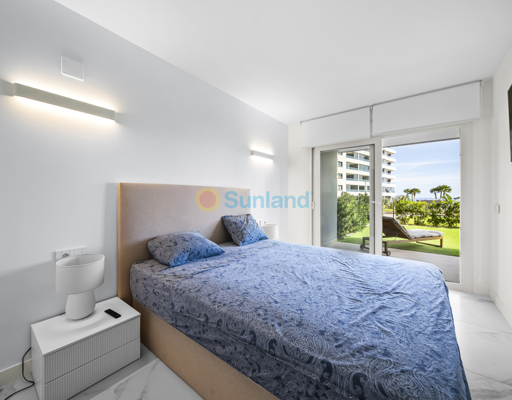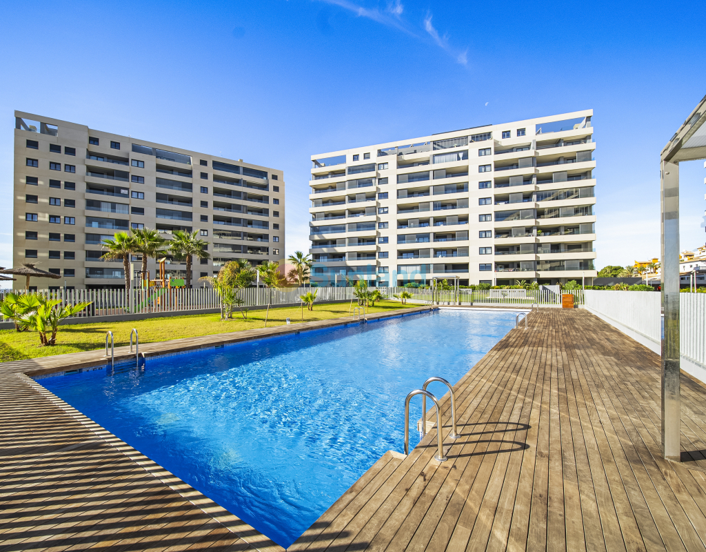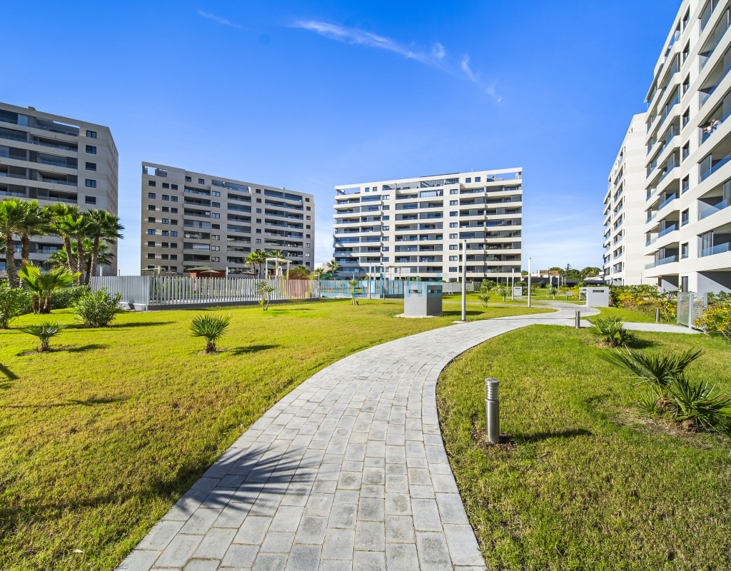 Leilighet i første etasje med hage ved sjøen i Punta Prima. Nybygd leilighet i det eksklusive boligkomplekset Posidonia, beliggende i første linje mot sjøen i Punta Prima. Den har 2 soverom, 2 bad og en østvendt hageterrasse på 46 m². Leiligheten har 127 m² bebygd areal, parkeringsplass i kjeller og bod. Kvaliteter 2 soverom 2 bad 127 m² bebygd Hageterrasse på 46 m² Første etasje Østvendt Møblert Parkeringsplass i kjeller Bod Byggeår: 2024 Boligkompleks Første linje mot sjøen 3 fellesbasseng (ett evighetsbasseng og ett oppvarmet) Felles jacuzzi Lekeplass Grønne områder 24-timers sikkerhet Beliggenhet 150 m fra stranden i Punta Prima 500 m fra barer og restauranter 700 m fra supermarked og butikker 5 min med bil til kjøpesenteret Zenia Boulevard 15 min til golfbanene i Villamartín 40 min til Alicante flyplass