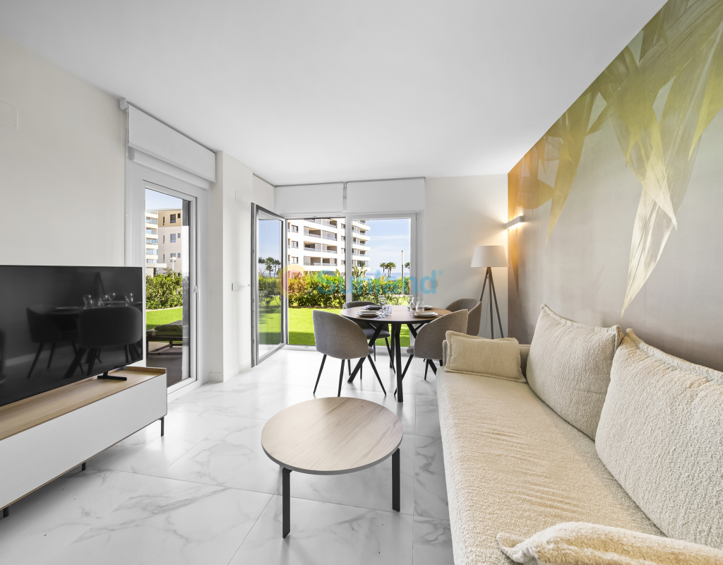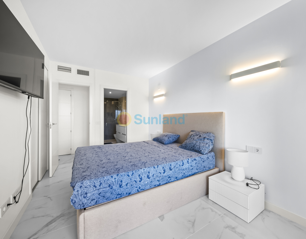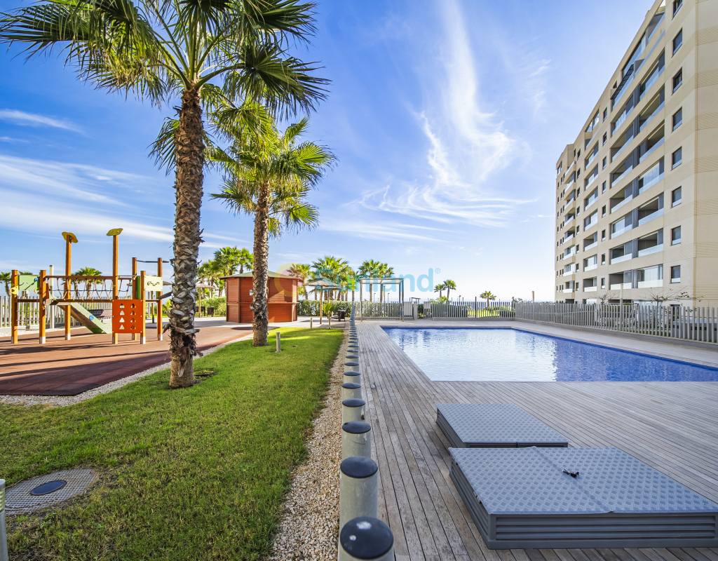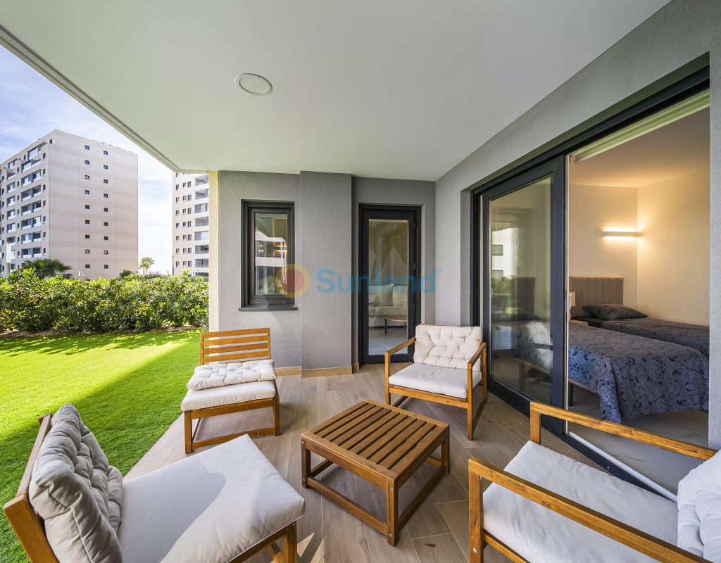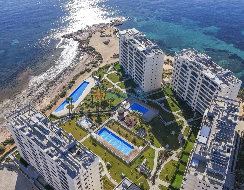 Leilighet i første etasje med hage ved sjøen i Punta Prima. Nybygd leilighet i det eksklusive boligkomplekset Posidonia, beliggende i første linje mot sjøen i Punta Prima. Den har 2 soverom, 2 bad og en østvendt hageterrasse på 46 m². Leiligheten har 127 m² bebygd areal, parkeringsplass i kjeller og bod. Kvaliteter 2 soverom 2 bad 127 m² bebygd Hageterrasse på 46 m² Første etasje Østvendt Møblert Parkeringsplass i kjeller Bod Byggeår: 2024 Boligkompleks Første linje mot sjøen 3 fellesbasseng (ett evighetsbasseng og ett oppvarmet) Felles jacuzzi Lekeplass Grønne områder 24-timers sikkerhet Beliggenhet 150 m fra stranden i Punta Prima 500 m fra barer og restauranter 700 m fra supermarked og butikker 5 min med bil til kjøpesenteret Zenia Boulevard 15 min til golfbanene i Villamartín 40 min til Alicante flyplass