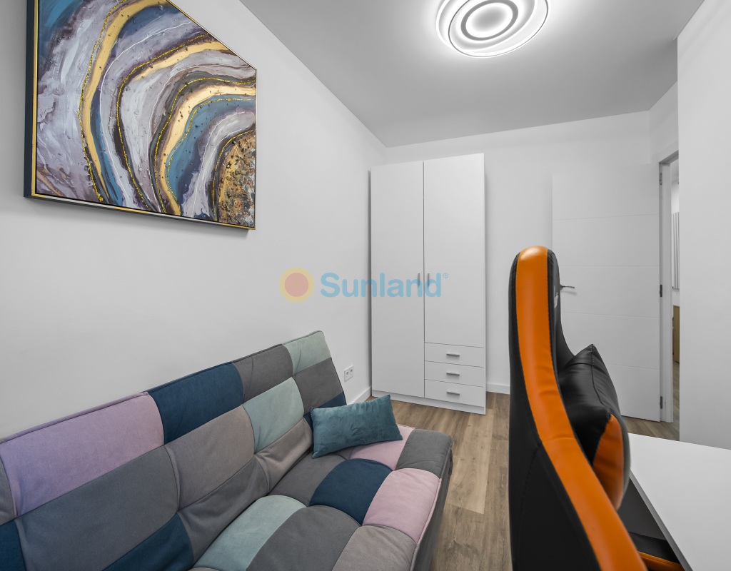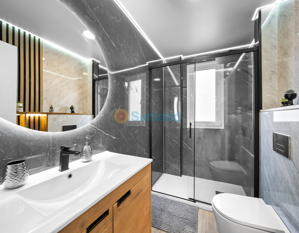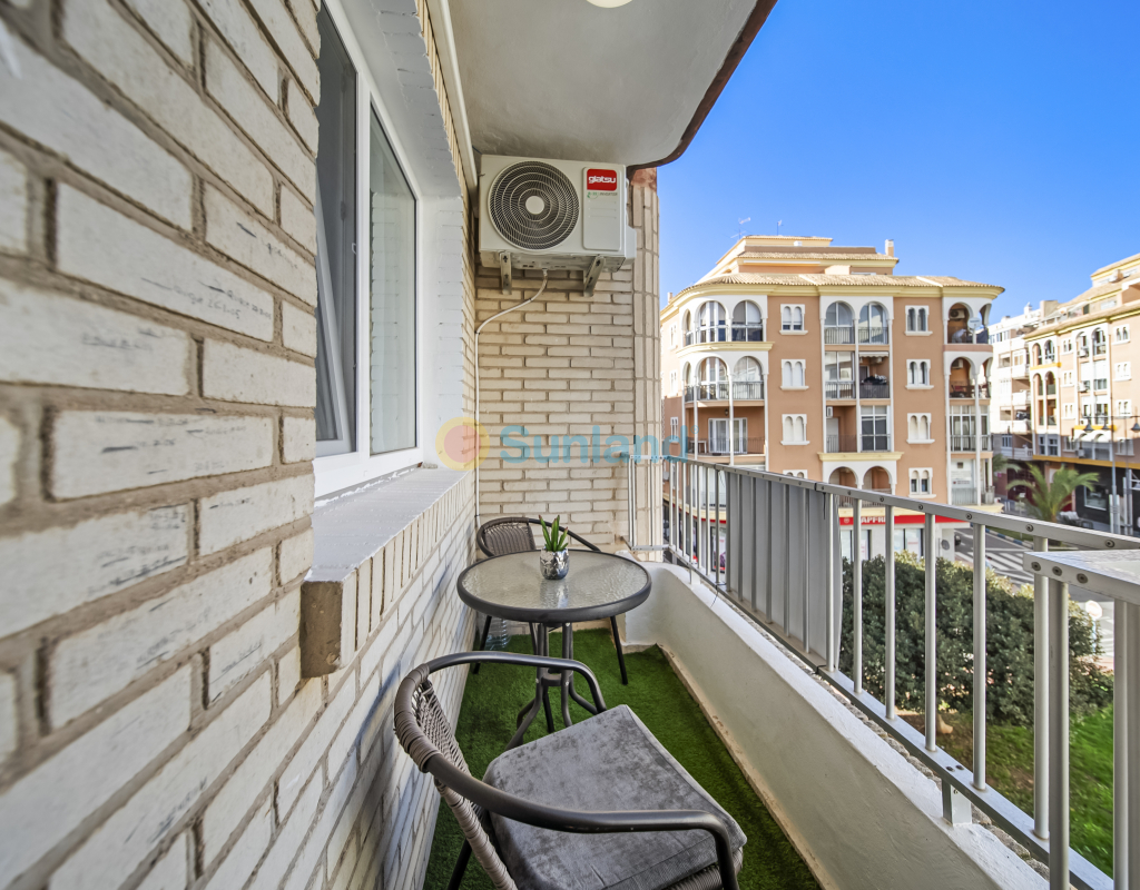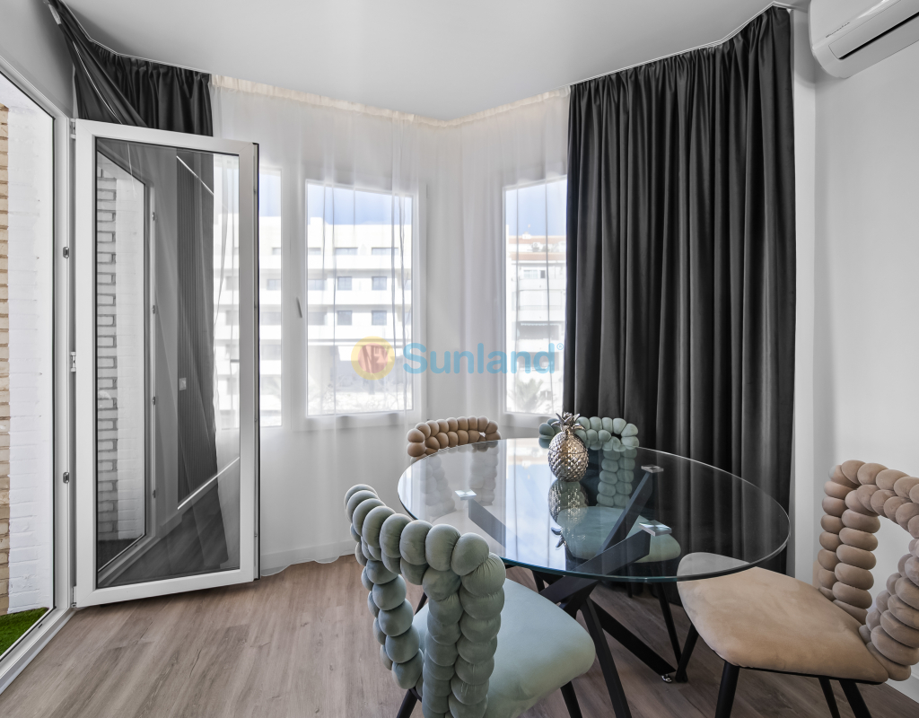 Renoveret leilighet med terrasse i sentrum av Torrevieja. Fullstendig renovert i 2025, beliggende i tredje etasje i en bygning med heis, midt i sentrum av Torrevieja. Leiligheten har 3 soverom, 1 bad, terrasse med utsikt over en liten plass, og totalt 85 m² bebygd areal. Selges med moderne innredning inkludert i prisen. Kvaliteter 3 soverom 1 bad 85 m² bebygd Terrasse med utsikt mot en plass Nordvestvendt Tredje etasje Heis Moderne innredning inkludert Byggeår: 1980 Renovert i 2025 Årlige kostnader IBI: €185 Felleskostnader: €360 Beliggenhet 50 m fra supermarked 300 m fra barer og restauranter 300 m fra Playa del Cura 500 m fra Playa de Los Locos 7 min med bil til Habaneras kjøpesenter 40 min med bil til Alicante flyplass