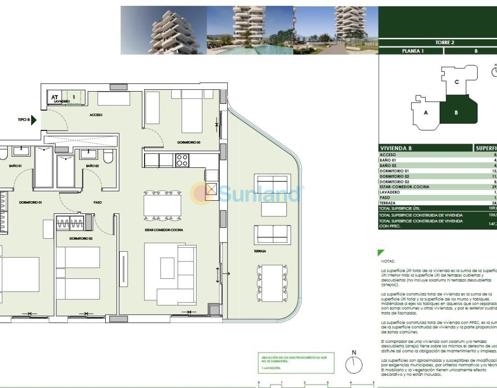 Moderne nybygg i Calpe, bare 450 meter fra Playa del Cantal Roig Et moderne boligkompleks nær sjøen Dette eksklusive boligkomplekset består av 120 nybygde leiligheter med 2 og 3 soverom, fordelt på tre moderne tårn. Komplekset ligger bare 450 meter fra Playa del Cantal Roig, i det fredelige området El Saladar, og tilbyr den perfekte blandingen av kystliv og urbane bekvemmeligheter. Sentrum av Calpe ligger bare noen minutter unna, mens den fantastiske Salinas de Calpe og den ikoniske naturparken Peñón de Ifach skaper en unik naturlig bakgrunn. Havutsikt er tilgjengelig fra tredje etasje og oppover. Førsteklasses fasiliteter for en eksepsjonell livsstil Det inngjerdede boligkomplekset er designet for å maksimere komforten og tilbyr et bredt utvalg av fasiliteter, inkludert svømmebasseng for voksne, barnebasseng, svømmebane, paddle-bane, treningsstudio, sosial klubb, anlagte hager med lekeområder, sykkelparkering og digitale pakkeskap. Sikkerhet og kontrollert tilgang sikres gjennom en concierge-tjeneste. Parkering og boder er inkludert i prisen. Elegante boliger med høykvalitetsfunksjoner Hver leilighet kombinerer moderne design med funksjonelle planløsninger og utmerket beliggenhet. Romslige terrasser står i sentrum og tilbyr den ideelle rammen for å nyte middelhavsklimaet. Boligene har utvendig snekring med termisk isolasjon, motoriserte persienner, pansret inngangsdør, fullt utstyrt kjøkken med hvitevarer, sentral klimaanlegg og aerotermisk varmtvannssystem. Oppdag Calpe og dens utmerkede omgivelser Calpe er en av Costa Blancas mest symbolske kystbyer, kjent for sine strender, nautiske livsstil og rike valencianske arv. Beliggenheten tilbyr uovertruffen tilgang: ca. 80 km til Alicante lufthavn, 12 km til Altea, 25 km til Benidorm og sømløse forbindelser via motorveien A7 og veien N332. Golfentusiaster finner flere golfbaner innen 25 km, mens Real Club Náutico de Calpe og Puerto Blanco Marina ligger mindre enn 3 km unna. Ditt ideelle hjem ved Middelhavet Opplev en ny måte å leve på i Calpe med moderne hjem designet for komfort, natur og avslapning. Kontakt oss i dag for å avtale et besøk.