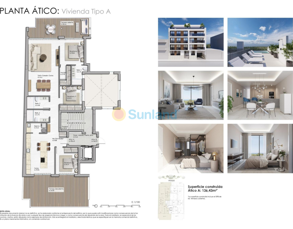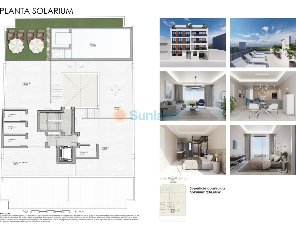 Moderne nybyggede leiligheter i sentrum av Guardamar del Segura Eksklusivt boende i hjertet av Guardamar del Segura Oppdag dette eksepsjonelle nye prosjektet som ligger i sentrum av Guardamar del Segura, en av de mest ettertraktede kystbyene på Costa Blanca Sør. Guardamar er kjent for sine 11 km med sandstrender og sin imponerende fredede furuskog, og kombinerer naturlig skjønnhet med en livlig atmosfære året rundt. Dette moderne bygget har en ideell beliggenhet bare 700 meter fra stranden og rett foran Guardamar-furuskogen, og tilbyr åpen panoramautsikt fra de fleste av boligene og havutsikt fra de øverste etasjene og felles solarium på taket. Stilige boliger med høykvalitetsutstyr Utbyggingen består av 13 moderne leiligheter designet med komfort, lys og kvalitet i tankene. Kjøpere kan velge mellom 3 eller 4 soverom med 2, 3 eller 4 bad, vaskerom og store terrasser som maksimerer de fantastiske naturlige omgivelsene. Kjøkkenene er fullt møblerte og utstyrt med Siemens-apparater og et osmoseanlegg. Ytterligere funksjoner inkluderer motoriserte persienner, forsterket inngangsdør, elektrisk gulvvarme på badene og forhåndsinstallasjon for kanalisert klimaanlegg. Valgfrie parkeringsplasser i kjelleren er tilgjengelige for ekstra bekvemmelighet. Eksepsjonelle fellesarealer for avslapning Beboerne kan nyte et eksklusivt solarium på taket med et designerbasseng med fantastisk utsikt over Middelhavet og den vidstrakte furuskogen. Bygningen har heis for å sikre komfortabel tilgang til alle etasjer, noe som gjør hverdagen praktisk og hyggelig. Livsstilen i Guardamar Å bo i Guardamar betyr å nyte en dynamisk kystby med aktiviteter og tjenester hele året. Fra det ukentlige onsdagsmarkedet til den livlige marinaen som tilbyr vannsport, tilbyr byen alt du trenger for et komfortabelt liv. Sportsentusiaster kan benytte seg av tennisbaner, padelbaner, fotballbaner og et oppvarmet innendørsbasseng, mens det lokale biblioteket tilbyr gratis Wi-Fi og offentlige datamaskiner. Utmerkede forbindelser til viktige destinasjoner Stranden i Guardamar: 700 m Golfbaner: 6,5 km Alicante Elche internasjonale lufthavn: 20 km Torrevieja: 12 km Alicante sentrum: 35 km Kjøpesentre som La Zenia Boulevard: 25 km Et perfekt hjem eller en perfekt investeringsmulighet Med sin førsteklasses beliggenhet, fantastiske utsikt og høye byggekvalitet tilbyr dette prosjektet en enestående mulighet for permanent opphold, ferie eller investering. Kontakt oss i dag for å avtale en visning og sikre deg ditt nye hjem ved Middelhavet.
