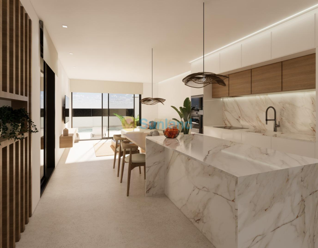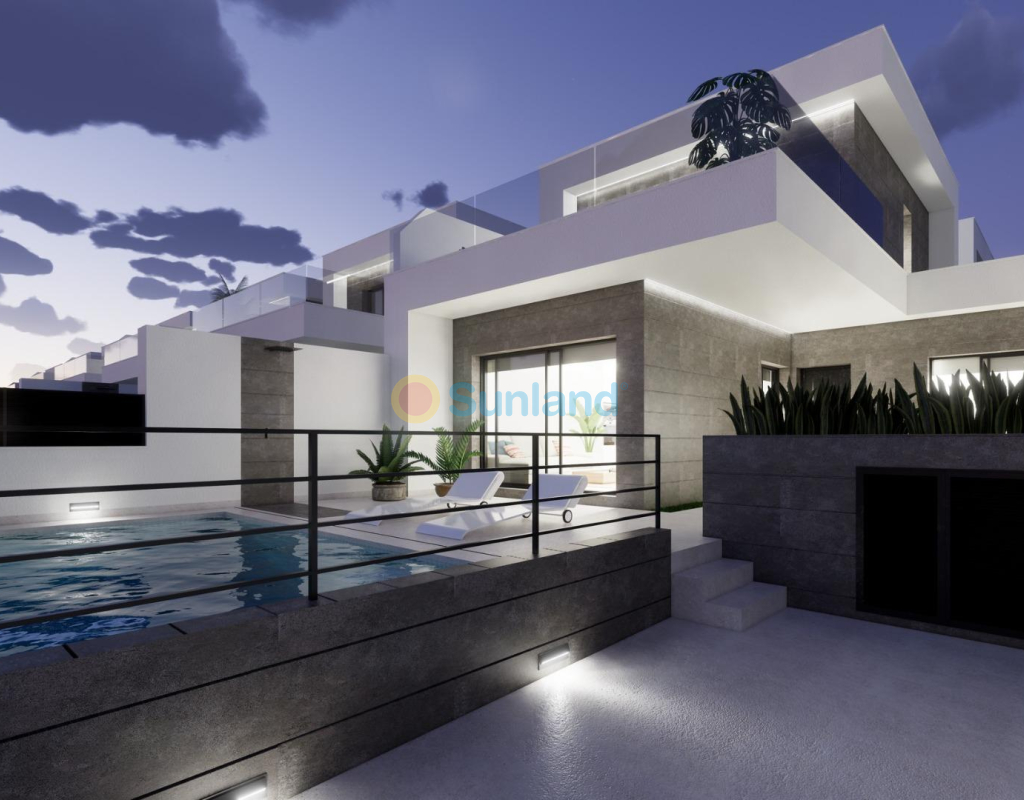 Moderne nybyggede villaer i Dolores, Alicante Eksklusivt boligprosjekt i hjertet av Vega Baja Oppdag dette nye boligprosjektet i Dolores, Alicante, som ligger i sentrum av den fruktbare regionen Vega Baja og bare 15 minutter fra noen av Middelhavets beste strender. Dette eksklusive prosjektet består av 8 moderne, semi-frittstående villaer fordelt på to etasjer, hver med 3 soverom, 2 bad, et gjestetoalett og eksepsjonelle finish. Alle boligene er designet for å tilby komfort og privatliv, og har privat svømmebasseng og store uteområder. Elegant design og funksjonell planløsning Første etasje har en åpen stue/spisestue med integrert kjøkken og kjøkkenøy, som skaper et lyst og elegant rom for hverdagslivet. Fra stuen gir store skyvedører direkte tilgang til hagen, bassenget og den private parkeringsplassen. Denne etasjen har også et soverom med eget bad og garderobe, et gjestetoalett og et vaskerom. I andre etasje gir to ekstra soverom og et komplett bad komfort for familien og gjestene. En stor åpen terrasse fullfører denne etasjen, ideell for å nyte middelhavsklimaet hele året. Spesifikasjoner av høy kvalitet Hver villa er bygget med materialer av høyeste kvalitet og moderne funksjoner, blant annet: Pansret inngangsdør Motoriserte persienner Bad med møbler, speil og dusjvegg Møblert kjøkken med hvitevarer Forhåndsinstallert sentral klimaanlegg Privat svømmebasseng Parkering på tomten med motorisert port En rolig beliggenhet med gode transportforbindelser Dolores er en sjarmerende boligby omgitt av åkrer, frukthager og åpent landskap, som tilbyr et avslappet og trygt miljø. Til tross for sin rolige beliggenhet, har den perfekte transportforbindelser til de viktigste kyst- og byområdene. Strendene i Guardamar, La Marina og El Pinet ligger bare 12-15 km unna, perfekte for å nyte solen og havet hele året. Viktige avstander: Strendene i Guardamar og La Marina: 12 til 15 km Golfbanene La Finca, Vistabella og La Marquesa: 10 til 15 km Byen Elche: 20 km Alicante lufthavn: 30 km Alicante by: 35 km Lev den middelhavske livsstilen Med over 300 soldager i året, milde temperaturer og en uovertruffen livskvalitet, tilbyr Dolores et eksepsjonelt miljø for å bo eller investere i. Nærheten til strender, golfbaner, naturlandskap og viktige tjenester gjør det til et av de mest attraktive stedene på Costa Blanca. Din ideelle bolig på Costa Blanca venter på deg Kontakt oss i dag for å avtale en visning og sikre deg en av disse eksklusive nybygde villaene i Dolores.