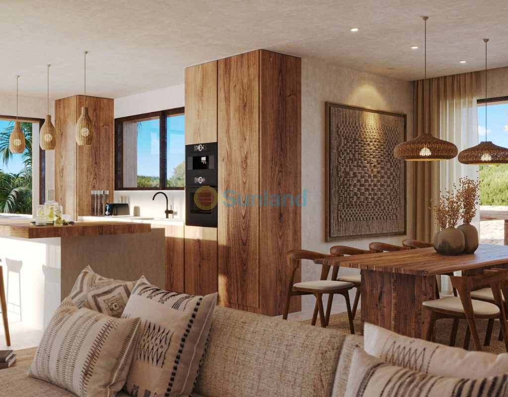 Nybygget villa i Ibiza-stil med luksuriøse detaljer i Javea Eksklusiv middelhavsdesign nær El Arenal-stranden Denne fantastiske nybyggede villaen i Ibiza-stil i Javea ligger bare 3 km fra den berømte El Arenal-stranden, et av de mest livlige og attraktive områdene på Costa Blanca Nord. Eiendommen ligger i et rolig og godt tilknyttet boligområde og tilbyr en eksepsjonell kombinasjon av eleganse, komfort og moderne middelhavsarkitektur. Javea er kjent for sitt krystallklare vann, pittoreske bukter, naturparker, marinaer og utmerkede spisesteder, noe som gjør det til et svært attraktivt reisemål både for å bo og investere. Elegant interiør på to etasjer Villaen er nøye designet for å maksimere komfort og stil. I første etasje er en romslig stue og spisestue sømløst forbundet med et fullt utstyrt kjøkken, noe som skaper et lyst og innbydende åpent rom. Dette nivået inkluderer også en heis for ekstra bekvemmelighet, et gjestetoalett og en sentral gang som forbinder alle områder. Det er to doble soverom med eget bad, pluss et imponerende hovedsoverom med stor planløsning, eget bad og integrert walk-in-garderobe. Uteplass designet for middelhavsstilen Uteområdene er skapt for å nyte det varme klimaet i Javea hele året. Eiendommen har to elegante pergolaer, en ved inngangen og en som strekker seg fra stuen og kjøkkenet mot den åpne terrassen som omgir det 38 m2 store private bassenget. Ved siden av kjøkkenet ligger en ekstra terrasse med grillplass, som er perfekt for uteservering og sosiale sammenkomster. Førsteklasses kjeller med eksepsjonelle fasiliteter Kjelleren kombinerer funksjonalitet og luksus, med åpen garasje, heis, vaskerom, tørkerom, treningsrom, overbygd uteplass, bad og et romslig oppbevaringsrom. Denne etasjen er designet for å tilpasse seg moderne livsstil og samtidig tilby maksimal bekvemmelighet. Førsteklasses beliggenhet i Javea Javea tilbyr en unik blanding av naturlig skjønnhet, fritidsaktiviteter og tjenester av høy kvalitet. Viktige avstander fra villaen: El Arenal-stranden 3 km Javea havn og marina 7 km Javea golfklubb 3 km Alicante flyplass 100 km Valencia flyplass 125 km Ditt middelhavshjem venter Enten du er på utkikk etter en permanent bolig, et luksuriøst feriehus eller en førsteklasses investeringsmulighet, tilbyr denne villaen enestående kvalitet og en uovertruffen beliggenhet. Kontakt oss i dag for å avtale en visning og oppdag ditt nye hjem i Javea.
