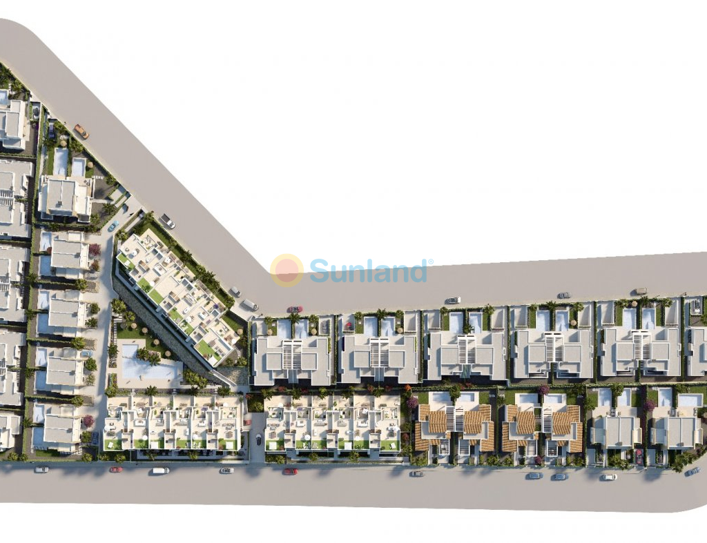 NYBYGG BOLIGKOMPLEKS I ALGORFA Nybygget boligkompleks med uavhengige eller tomannsbolige villaer og leiligheter med fantastisk felles svømmebasseng og grønne områder i La Finca golfbane, Algorfa. Nybygget tomannsbolig med 3 soverom, 2 bad, en romslig stue med terrassedører som leder ut i hagen, off-road parkering, et åpent kjøkken med spiseplass. Hver eiendom leveres komplett med privat svømmebasseng. Boligkompleks som ligger i La Finca Golf resort, i Algorfa kommune, i Vega Baja-området på Costa Blanca Sør. Kun 15 minutters kjøring fra sandstrendene i Guardamar del Segura, og kun 35 minutter fra Alicante flyplass. De større byene Almoradi, Benijófar og Ciudad Quesada ligger en kort kjøretur unna. Torrevieja og Orihuela Costa, med sine store kjøpesentre, ligger 15 minutter unna.