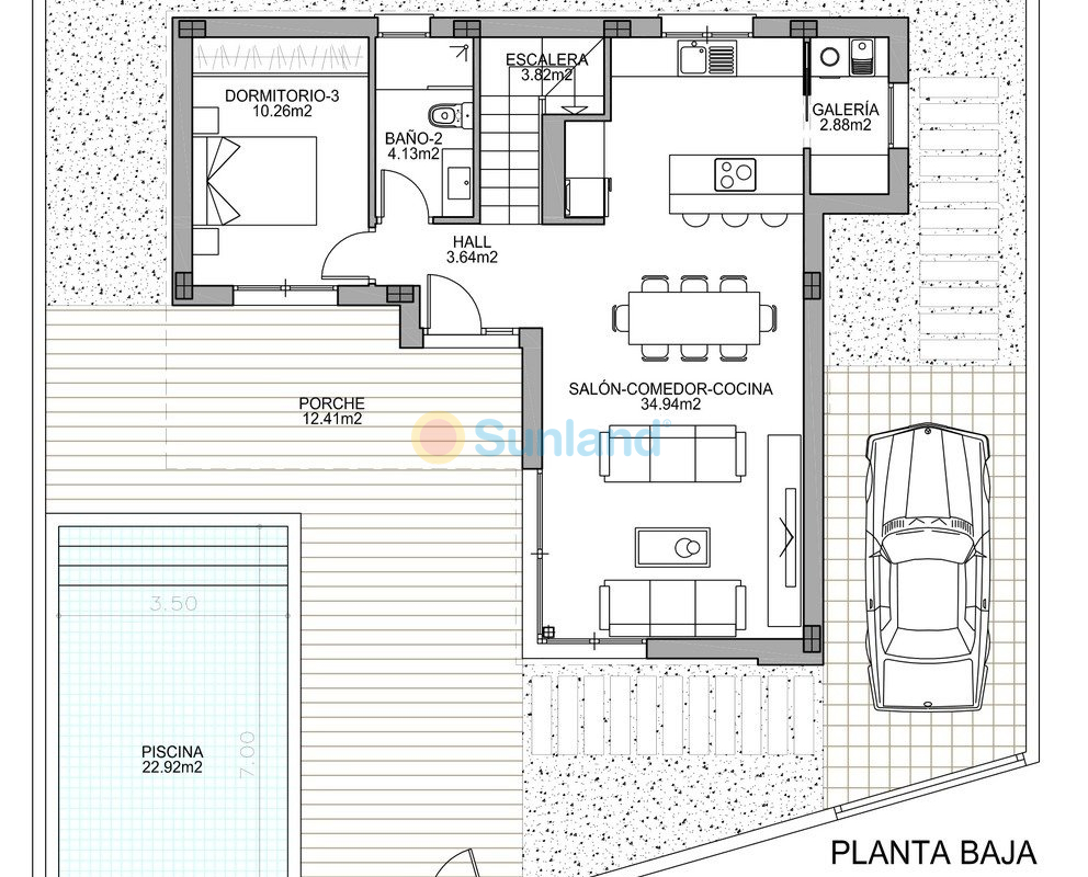 NYBYGG MODERNE VILLAER I BENIJOFAR Nybyggede villaer som ligger i Benijófar, et privilegert område på Costa Blanca, utstyrt med alle tjenester, 20 minutter fra Alicante flyplass, nær de vakre strendene i Guardamar og flere golfbaner. Det er en moderne villa som består av romslig stue/spisestue med åpen kjøkkenløsning, 3 soverom (ett av dem en-suite) og 2 bad. Den har også en privat tomt med terrasse, parkeringsplass, privat basseng, hage i middelhavsstil med flott utsikt. Huset har også varmt og kaldt klimaanlegg, videointercom og sikkerhetsdør. Benijofar det er en nydelig landsby med en sjarmerende kirke og alle tjenester som supermarkeder, apotek, banker, restauranter og naturpark som ligger svært nær villaene. Det er flere golfbaner i nærheten, samt badeland i nærliggende Rojales og Torrevieja. Benijófar ligger noen få minutter fra N-332 og AP-7. Bare 30 minutter fra Alicante flyplass, 10 minutter fra strendene i Guardamar og Torrevieja.