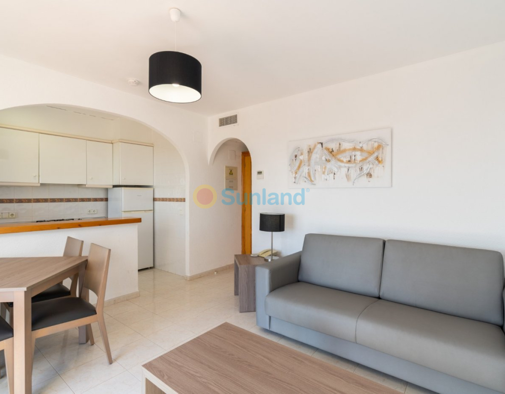 ØVERSTE ETASJE BUNGALOWLEILHETER I CALPE Flotte bungalower med 1 soverom, 1 bad, amerikansk kjøkken med stue, innebygd garderobe og terrasse. Alle bungalowene har parkering . Boligkomplekset har en vakker felleshage med svømmebasseng. Calpe, en av byene La Marina Alta, ligger på nordkysten av provinsen Alicante, omgitt av byene Altea, Benidorm, Teulada-Moraira, Benissa. Calpe har en herlig blanding av gammel valenciansk kultur og moderne turistfasiliteter. Det er en flott base for å utforske lokalområdet eller nyte de mange lokale strendene. Calpe alene har tre av de vakreste sandstrendene på kysten. Calpe har også to seilklubber: Real Club Náutico de Calpe og Club Náutico de Puerto Blanco. Fiskerlandsbyen Calpe nå forvandlet til en turistmagnet, byen har en ideell beliggenhet, lett tilgjengelig fra motorveien A7 og N332 som går fra Valencia til Alicante; Det er ca. 1 times kjøring fra flyplassen i Alicante og 1,5 time til Valencias flyplass.