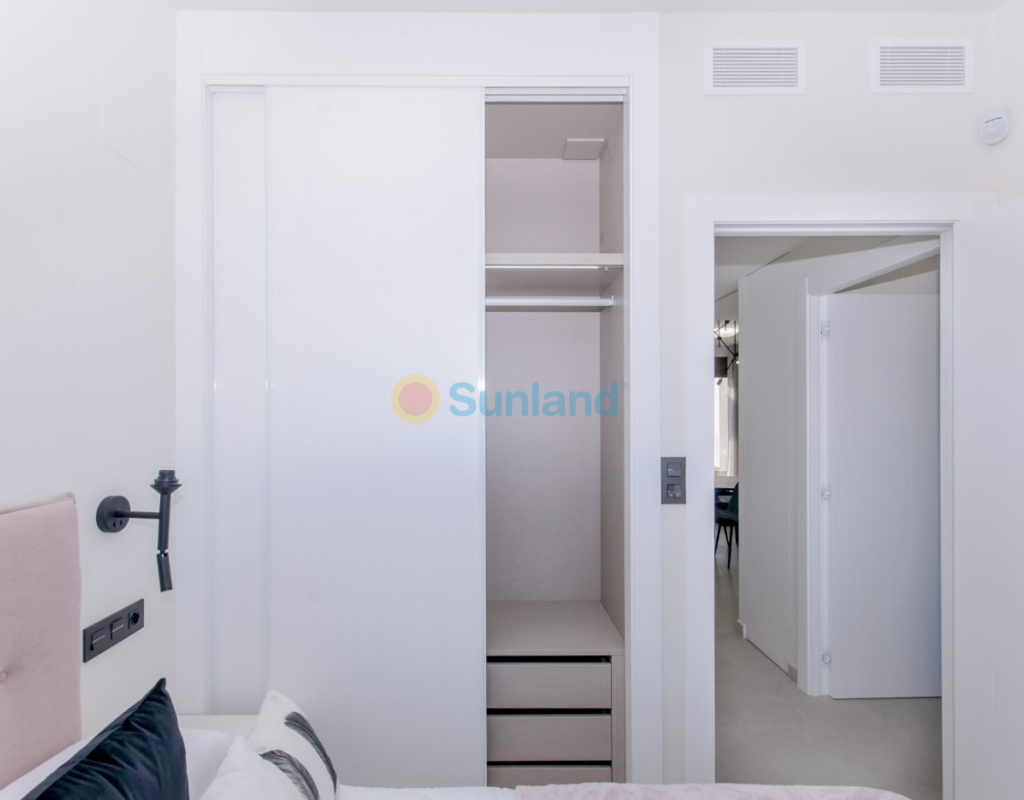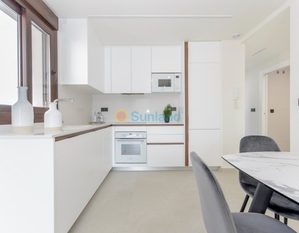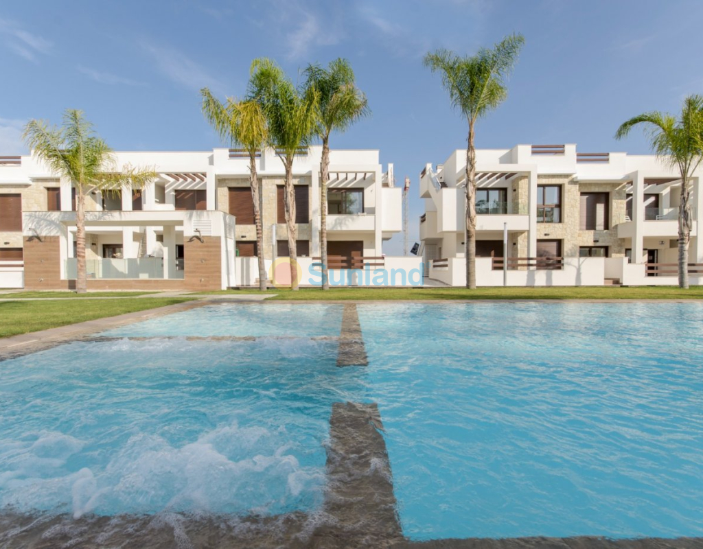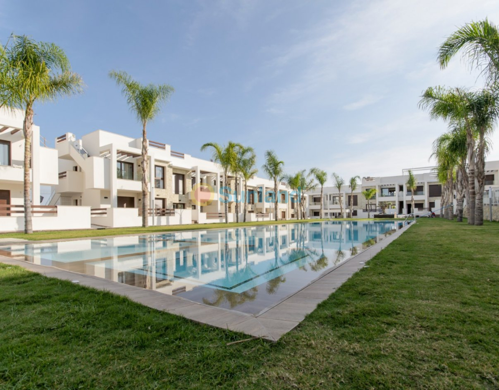 NYBYGG BOLIG AV BUNGALOW LEILIGHETER I LOS BALCONES, TORREVIEJA Nybygget boligkompleks med praktfull rosa utsikt over saltsjøen i Los Balcones. Komplekset består av 104 bungalowleiligheter med 2 og 3 soverom, bungalower i toppetasjen har private solarium med panoramautsikt til saltsjøen og bungalower i første etasje har store terrasser med utsikt over det grønne området. Disse bungalowene deler vakre grøntområder og 2 store svømmebassenger. Valgfri underjordisk parkering og lagringsplasser er tilgjengelig. Denne boligen tilbyr moderne design, utvalgte materialer, leiligheter ferdig til de høyeste spesifikasjonene med kun materialer av topp kvalitet. Boligen skal bygges opp til en åsside, på denne måten er utsikten og også luften klar og unik kvalitet. Los Balcones ligger like utenfor Torrevieja med alle tilgjengelige tjenester, kun 5 minutter fra Playa de Los Náufragos, supermarkeder, skolen og kjøpesenteret La Zenia Boulevard, og et minutt fra Torrevieja Universitetssykehus. Videre vil du finne 4 golfbaner innen kort kjøretur, inkludert den prisbelønte Las Colinas Golf & Country Club. Komplekset ligger 40 minutter fra Alicante flyplass og 1 time Murcia - Corvera flyplass.