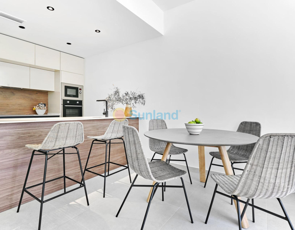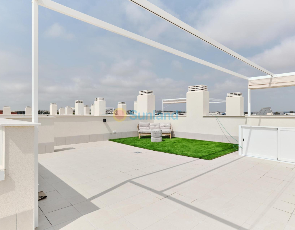DESIGNBUNGALOW VED HAVET Bolig i et nyutviklet område kun 250 meter fra sjøen. Utmerket beliggenhet svært nær det urbane sentrum av Torrevieja og omgitt av tjenester, butikker og restauranter. Torrevieja General Hospital og marinaen ligger også i nærheten. Utmerket bolig med en vakker hage, svømmebasseng og treningsområde. Nyt denne komplette, moderne og sjarmerende bungalowen med minimalistisk design.