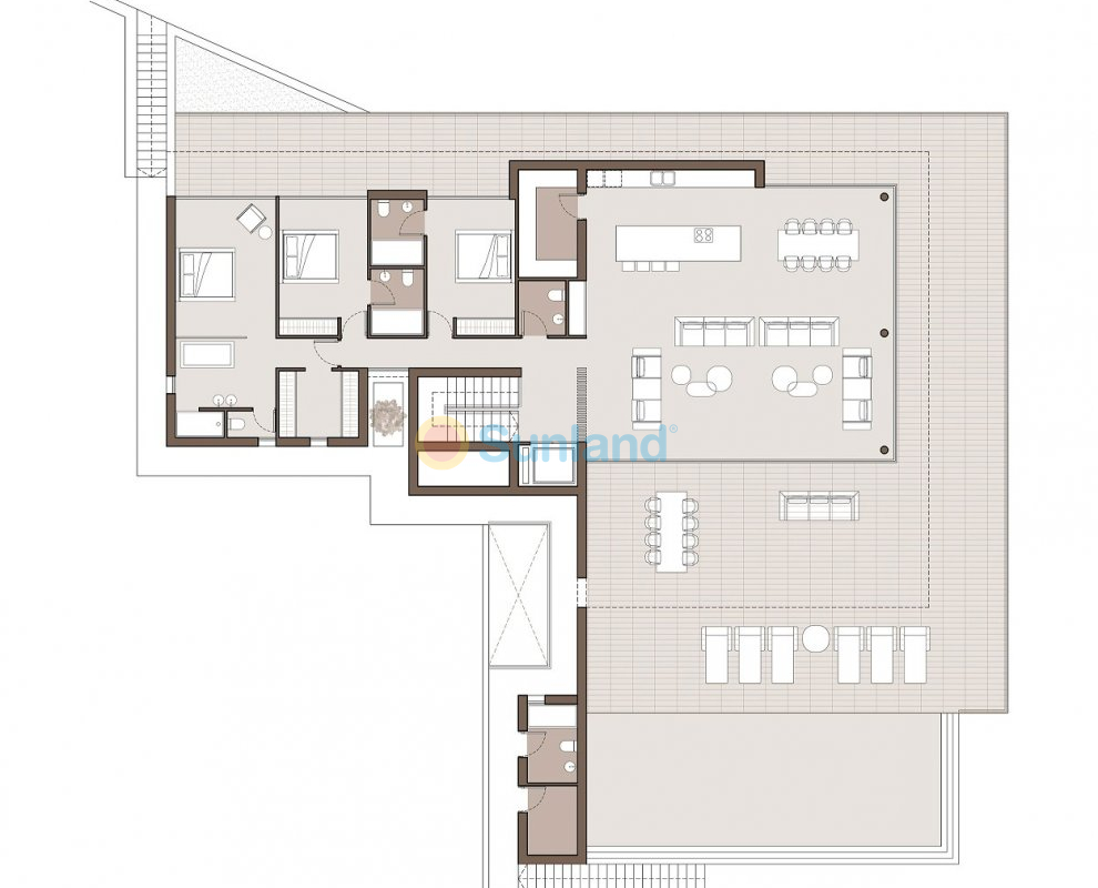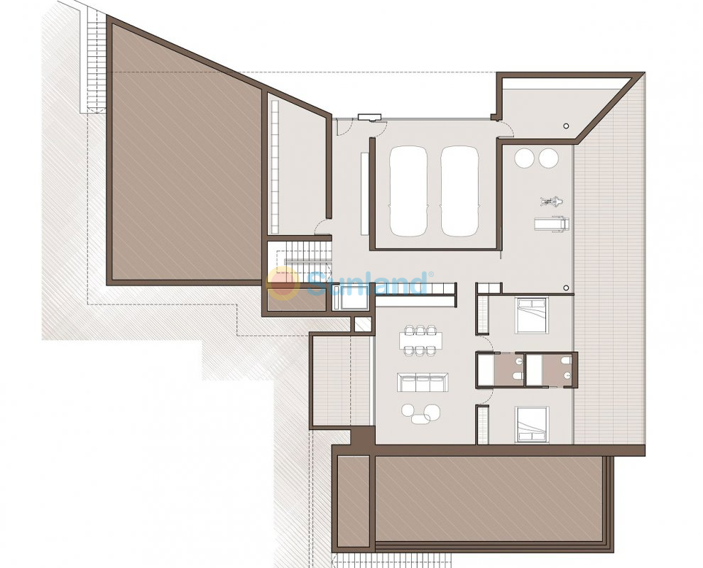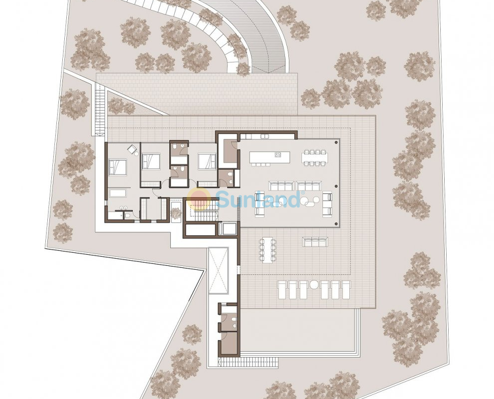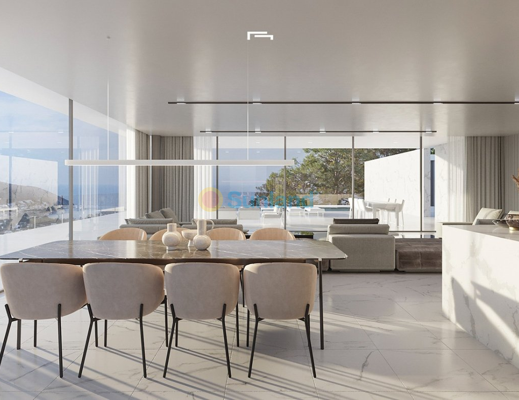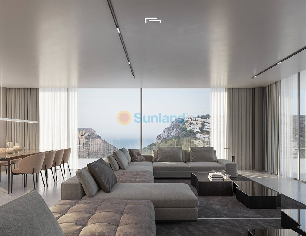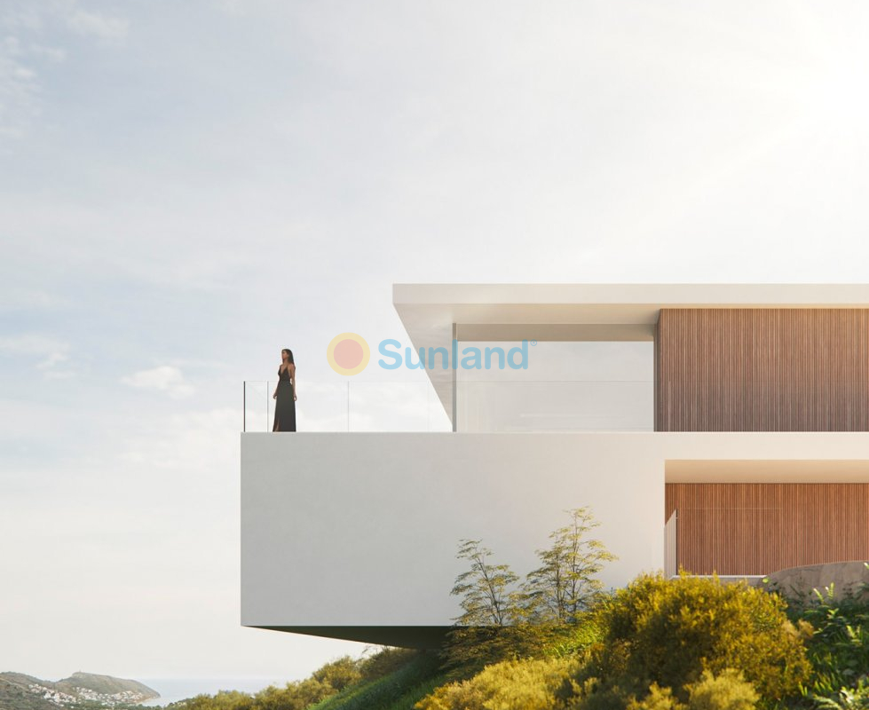 LUKSUS NYBYGGEVILLA MED HAVUTSIKT I MORAIRA Nybygget luksusvilla med havutsikt i Moraira. Villa artikulerer de indre rommene gjennom enkle, rene og ettertrykkelige geometrier. Den er tilgjengelig gjennom en rampe og trapper integrert i bakken, og støtter den øvre delen av huset på en steinsokkel som gir inngang til stue. I første etasje er det garasje, generøs halladkomst ved siden av stor kjeller og bod og treningsrom. I øverste etasje er soverommene hovedrommene i huset, alle med bad en suite og en stor åpen plass på mer enn 90m2 for å romme et flytende rom med kjøkken spisestue og stue i en 180º panoramautsikt over landskapet. All denne plassen er omgitt av en romslig terrasse, i den fremre delen som faller en veranda åpen på mer enn 50m2, som rager mot utsiden av husets indre og gjør det til et unikt rom. Et unikt geometrisk stykke som gir noen imponerende utsikt over landskapet og har praktisk og forsiktig måte programmet og funksjonaliteten inne. Den geometriske renheten og utformingen av huset overføres fra den arkitektoniske komposisjonen til utførelsen av den minste detalj. Det er valgt topp moderne tekniske og konstruksjonsmessige løsninger for å overføre den siste utviklingen i markedet til boligen. Alt dette for å oppnå et luksuriøst hjem med maksimale fordeler og med et utsøkt design. Moraira er en liten by med gode restauranter, barer og mange supermarkeder rundt. Det er en veldig hyggelig strand rett ved siden av byen som er flott for familier. Strandpromenaden tilbyr en fantastisk utsikt over Penon Ifach over bukten i Calpe. Kystveien dit er vel verdt å gjøre med noen spektakulære utsikter. Moraira ligger omtrent 1 time og 15 minutter nordover opp A7 fra Alicante flyplass, det er ganske enkelt å komme til. Det er omtrent samme avstand eller litt mindre sør fra Valencia flyplass.