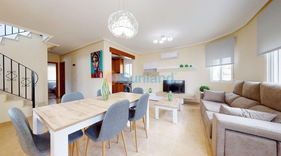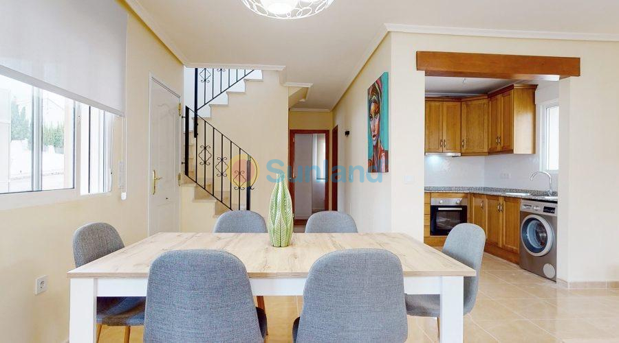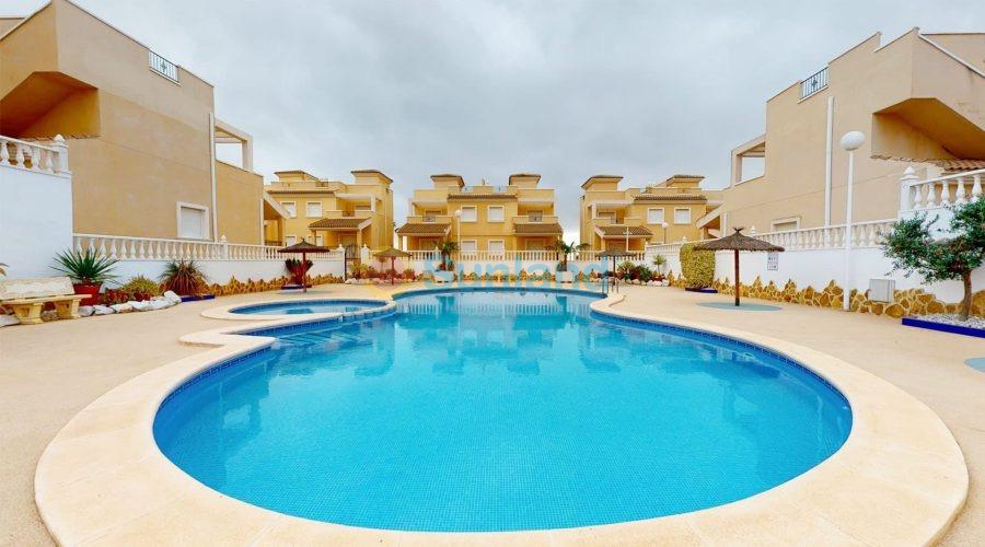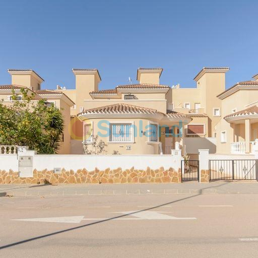 LOS ALCORES VILLAGES is located on a promontory, which has as its background the fantastic landscape of Las Lagunas de sal de Torrevieja and the Mediterranean Sea, erected in the residential area of Los Altos de San Miguel.. . Just 2.5 kilometers along the CV-941 from the charming town of San Miguel de Salinas; A typical population of Vega Baja Alicante, a town that offers all kinds of services.. . The proximity to large cities such as Torrevieja, Orihuela, San Javier,... makes it possible to have all the essential services (hospitals, universities, shopping centers, leisure, beaches,...).. . LOS ALCORES VILLAGES has an exceptional means of communication: it has easy and close access to the AP-7 (2.5 kilometers) which facilitates communication with Murcia, Alicante and Cartagena in less than 45 minutes.. Independent villas with 3 bedrooms, 3 bathrooms or 3 bedrooms, 2 bathrooms with cassock and solarium.. Community pool and parking and garden.. .