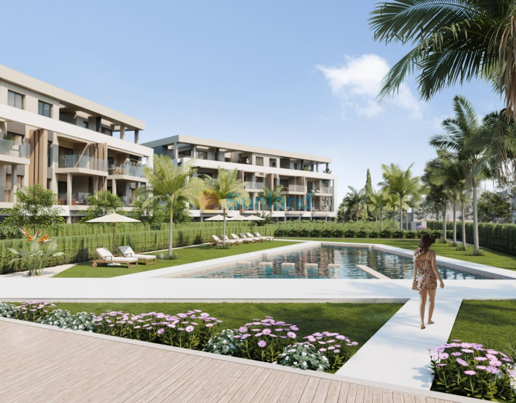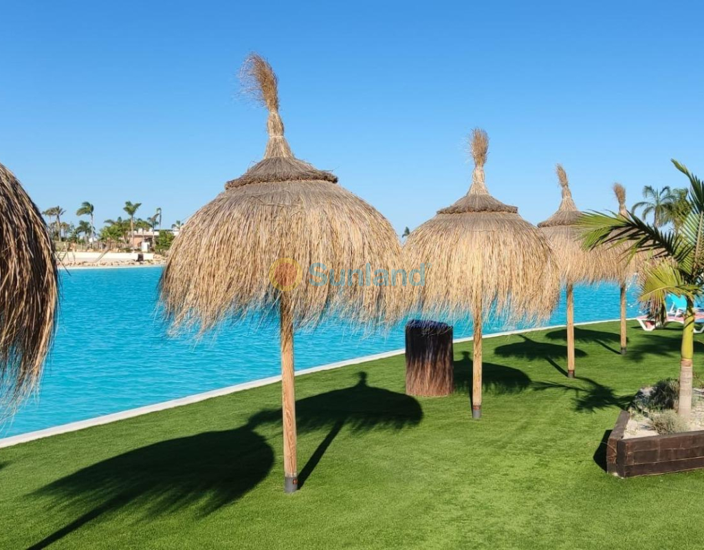 NEW BUILD RESIDENTIAL IN PRIVATE GATED RESORT IN PROVINCE OF MURCIA New Build residential complex consist of 42 luxury apartments and penthouses with 2 and 3 bedrooms, 2 bathrooms, open plan kitchen with spacious living room, fitted wardrobes and terraces. Apartments on the ground floor having private garden, middle floors apartments with terrace and penthouses with a large private terrace. This exclusive development has a landscaped communal area which boasts a fabulous contemporary pool, social club and green areas. All apartments come with underground parking and storage room. Located in a private gated resort, with a main access entrance and 24 hours security. The resort is designed around an impressive 126.000 m2 green area. It comprises walking and cycling paths, sport facilities, paddle and tennis courts, a mini-golf course, gardens, dog parks, leisure areas, clubhouse…. Also in the central area is the jewel of the resort, a crystal-clear artificial lake of almost 17.000m2 of water surface, surrounded by white sandy beaches and palm trees, bringing a piece of the Caribbean to the Murcia Region. There are 2 islands in the lake, one of them has its own bar, there are also “beach Chiringuitos” spread around the lake. The resort is strategically located less than 4 km from the beach and the town of Los Alcázares, where you can practice various water sports, surrounded by several golf courses and the city of Cartagena less than 15 minutes by car and 22 km from Murcia airport, therefore having a wide cultural, gastronomic and sports offer within reach.