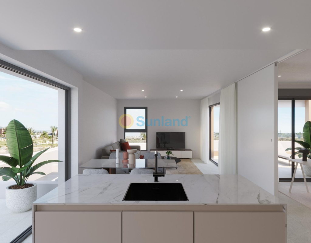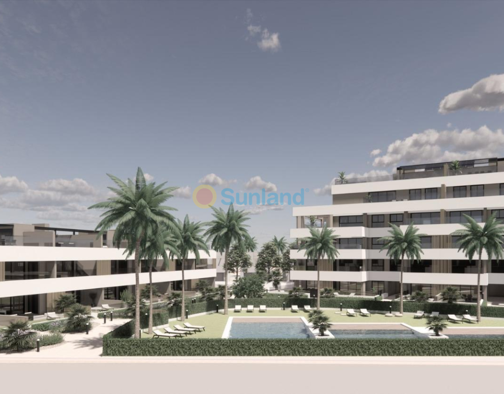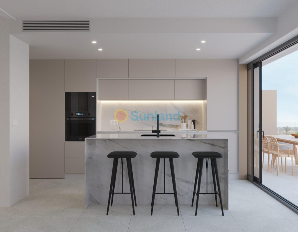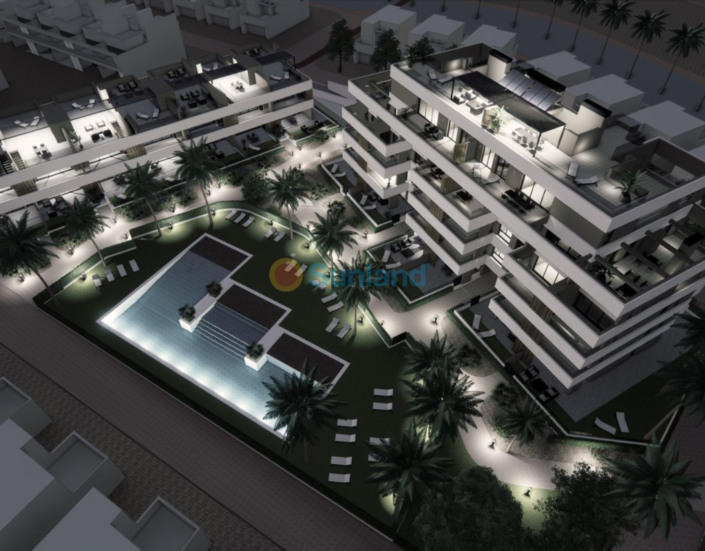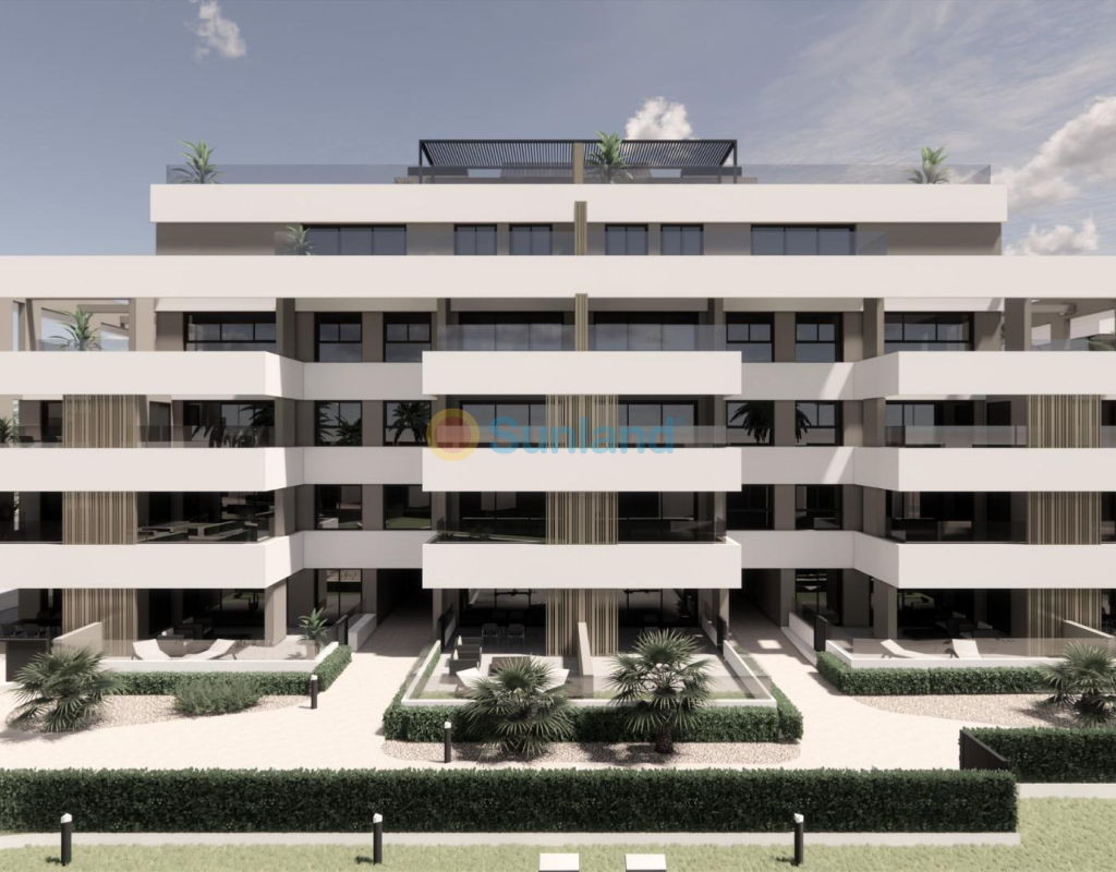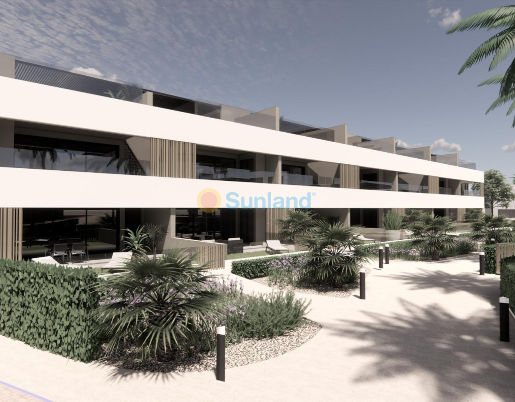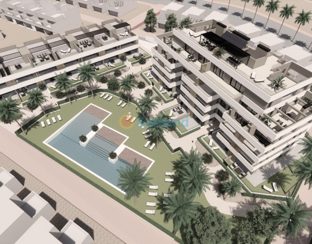 NEW BUILD RESIDENTIAL COMPLEX IN PRIVATE GATED RESORT IN PROVINCE OF MURCIA New Build residential complex of apartments and bungalows in private gated resort. Beautiful properties have 1, 2 and 3 bedrooms and 1 or 2 bathrooms, open plan kitchen with spacious living room, fitted wardrobes, terraces with views of the green areas of this large luxury resort. Ground floor bungalow with private garden, top floor bungalows with private solarium. Complex has a communal pool and all properties have a parking pace and a storage room. Located in a private gated resort, with a main access entrance and 24 hours security. The resort is designed around an impressive 126.000 m2 green area. It comprises walking and cycling paths, sport facilities, paddle and tennis courts, a mini-golf course, gardens, dog parks, leisure areas, clubhouse…. Also in the central area is the jewel of the resort, a crystal-clear artificial lake of almost 17.000m2 of water surface, surrounded by white sandy beaches and palm trees, bringing a piece of the Caribbean to the Murcia Region. There are 2 islands in the lake, one of them has its own bar, there are also “beach Chiringuitos” spread around the lake. The resort is strategically located less than 4 km from the beach and the town of Los Alcázares, where you can practice various water sports, surrounded by several golf courses and the city of Cartagena less than 15 minutes by car and 22 km from Murcia airport, therefore having a wide cultural, gastronomic and sports offer within reach.