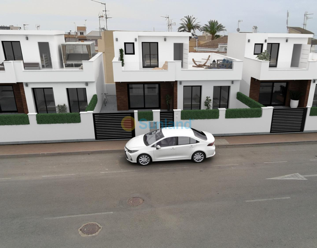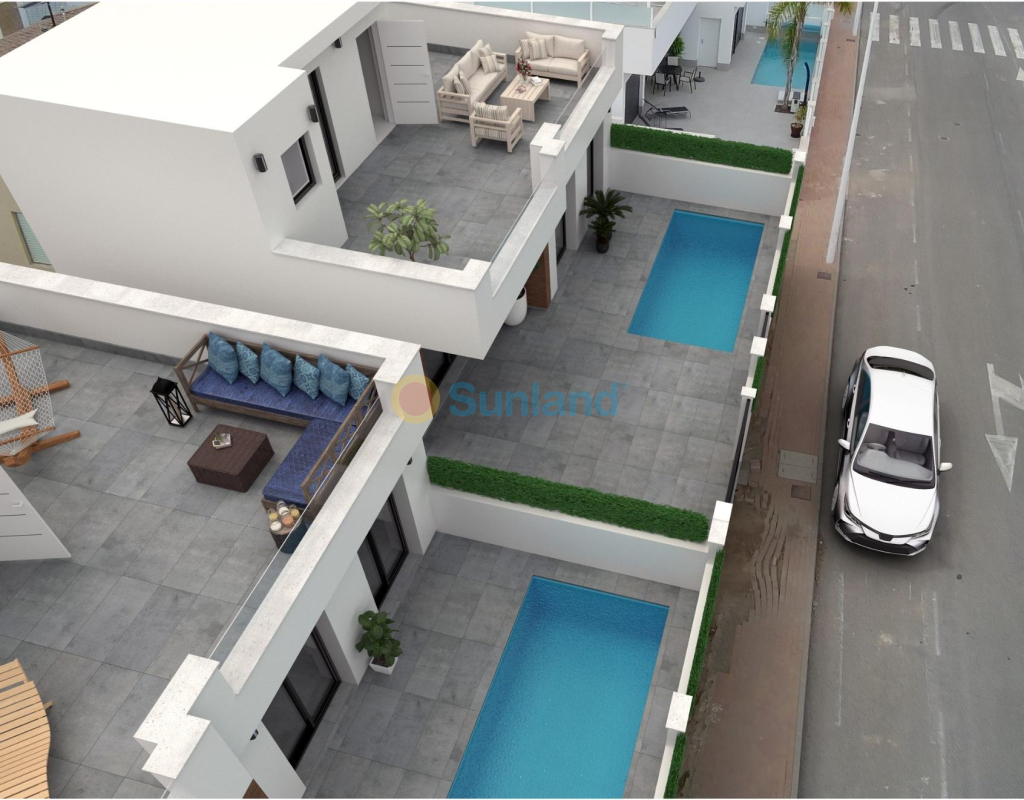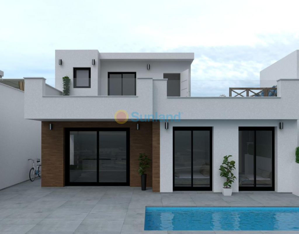 NEW BUILD VILLAS IN SAN PEDRO DEL PINATAR New Build villas in San Pedro del Pinatar, Murcia. This exclusive project of 4 independent villas with 3 bedrooms and 3 bathrooms, open plan kitchen with spacious living room, fitted wardrobes, including private swimming pool and there is a large solarium - terrace where you can enjoy the sun every day of the year. The properties have fully equipped kitchens and bathrooms and pre-installation for ducted air conditioning. South facing. San Pedro del Pinatar's privileged location on the Mar Menor and Mediterranean coastline it attracts those with an interest in sailing and water sports, providing marina mooring and sailing clubs, while the beaches and natural mud baths attract those seeking safe sun, sea and sand. San Pedro del Pinatar has an established community and offers an excellent range of activities, including covered swimming pool and sports facilities, as well as a year round programme of social activities by the pleasant winter weather. The benefits of the mud baths, typical of the region, or the calm waters of the Mar Menor, have favoured the growth of Lo Pagán, wich currently has all kind of amenities. In addition, it has an excellent location, just 5 minutes from the Comercial Centre Dos Mares.