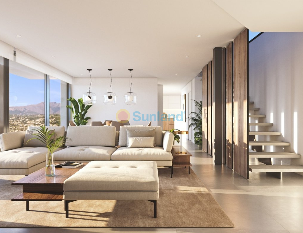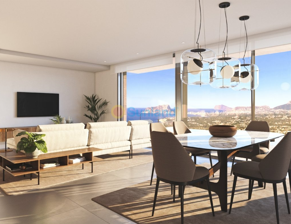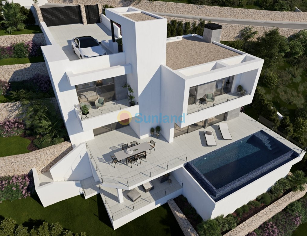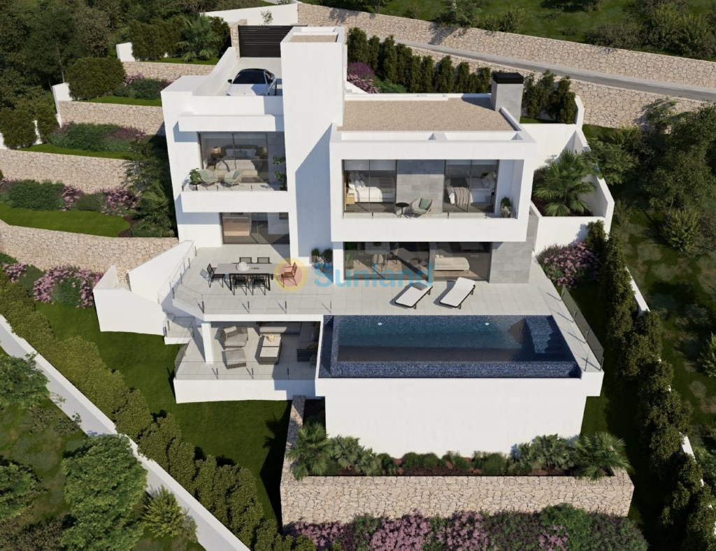 NEW BUILD LUXURY VILLA IN CUMBRE DEL SOL New Build villa located on a plot situated in exclusive area of Residential Resort Cumbre del Sol, on an elevated plot that allows the property to enjoy a view of both the sea and the inland Costa Blanca North. The luxury villa with garden and private swimming pool is distributed over three floors, the access located on the top floor, where we have the parking and the lift that connects the entire house. On the middle floor are located the bedrooms, a total of 3 bedrooms all with access to terrace, a luxury to wake up going out to the terrace to breathe fresh air and start the day watching the Mediterranean. The ground floor, a large living area full of light, conected to the kitchen and the exterior, which makes this room the heart of the house. The outdoor spaces of this luxury villa have been taken care of in detail, a garden adapted to the plot, with terraced walls that generate various spaces and levels, and a large terrace with an infinity pool that merges with the sea, are its most characteristic elements. Villa located in one of the most exclusive areas of the Cumbre del Sol Residential Resort, a paradise facing the Mediterranean. With an enviable location, next to spectacular coves and beaches, surrounded by nature, with a unique gastronomy and leisure offer, well connected to two international airports less than 100 km away, and strategically located between Alicante and Valencia city, a paradise on the Coast White North. Residential is part of the Cumbre del Sol urbanization, so the homes that are located in it enjoy all the services that a consolidated urbanization such as Cumbre del Sol offers, which has a commercial area with a supermarket, hairdresser , pharmacy, bars and restaurants, Lady Elizabeth International School and a diverse sports offer with tennis and paddle courts, hiking trails, equestrian centre, without forgetting Moraig Beach with beach bars and Llebeig and Los Tiestos coves, coves of Great beauty and charm. And all the catering and leisure offer of Benitachell and the municipalities of Xàbia (just 7 km away) and Teulada-Moraira (just 4 km away), all of them tourist municipalities of recognized international prestige, and at an equidistant distance from Alicante and Valencia city.