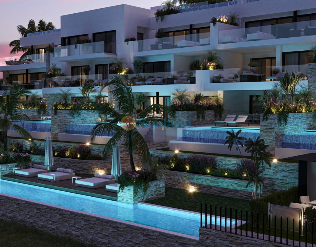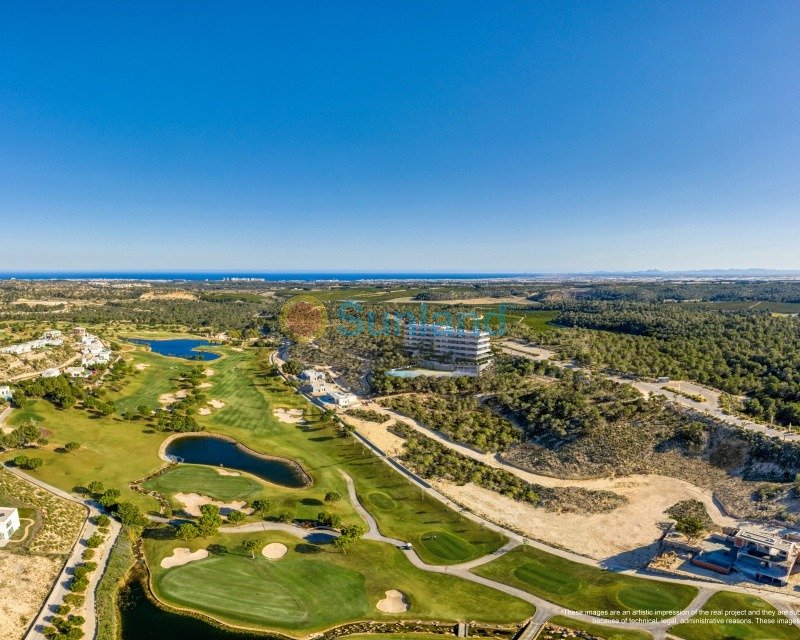 NEW BUILD RESIDENTIAL IN LAS COLINAS GOLF New Build development of luxury apartments on Las Colinas Golf & Country Club. Beautiful 2 and 3 bedrooms apartments and penthouses. All ground floor apartments and penthouses have private swimming pools. 3 bedroom apartments have double parking in the basement and a build-in wine room. All bedrooms and the living room you have direct access to the south facing terrace. The open kitchen, dining area and living room benefits from the natural light from the big windows to the terraces overlooking the communal area and the green surroundings. Included in the apartment comes a parking space and private storage room in the basement. In the heart of the Costa Blanca South we find a leafy valley of 330 hectares between hills, very close to the sea and with a magnificent championship golf course that crosses it. This unique urban development is described as ecological due to the low intensity of housing it has built. The success of this ecological urban development project lies in a total integration of the buildings in the natural environment. If you are looking for a corner in Spain to disconnect and find that privacy, in Las Colinas Golf & Country Club you will find the ideal place to escape. You will enjoy 200,000 square meters of beautiful Mediterranean landscapes and you will be able to make scenic walks through the lush indigenous, native flora and the extensive fields of orange and lemon groves. Complex located 40 minutes from Alicante airport and 1 hour Murcia - Corvera airport.