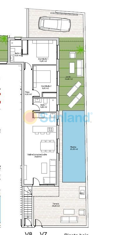 New Build Bungalows with Private Pool in Santiago de la Ribera Modern Homes Just 800m from the Beach Discover this exclusive new development of eight contemporary apartments in Santiago de la Ribera, just 800 meters from the sea. Designed with a modern aesthetic and high-quality finishes, these homes offer spacious interiors, private outdoor areas, and top-tier amenities. Property Options – Ground Floor or Penthouse Choose the home that best suits your lifestyle: Ground-floor bungalows: Enjoy a private garden, parking space, and private swimming pool. Top-floor penthouses: Feature a dedicated parking space, private terrace, and an expansive solarium with private pool, perfect for relaxing or entertaining. All homes are available with 2 or 3 bedrooms and 2 bathrooms, providing flexibility for different needs. High-Quality Finishes for Comfort and Style Each home is equipped with premium materials and energy-efficient systems, including: Reinforced security entrance door Aluminum windows with thermal break for better insulation Bosch kitchen appliances Aerothermal system for hot water efficiency Glass shower screens in all bathrooms Ducted air conditioning system fully installed Prime Location in Santiago de la Ribera Situated in the charming coastal town of Santiago de la Ribera, this development offers the perfect blend of tranquility and convenience. Originally a traditional fishing village, the area has transformed into a sought-after destination on the Costa Cálida, known for its Mediterranean lifestyle, golden sandy beaches, and excellent amenities. The town boasts 4 km of beaches along the Mar Menor, featuring calm, warm waters ideal for swimming and water sports. A beautiful palm-lined promenade stretches along the coast, providing the perfect setting for walks, cycling, and enjoying seaside restaurants. Excellent Connectivity and Nearby Attractions Beach (Playa de Santiago de la Ribera) – 800 m Murcia-Corvera Airport – 30 km Alicante Airport – 95 km Golf courses (Roda Golf, La Serena Golf, Lo Romero Golf) – 10-15 km Dos Mares Shopping Center – 3 km Marina & Nautical Club – 1.5 km Your Dream Home by the Sea Awaits Whether you’re looking for a holiday retreat, investment opportunity, or permanent residence, these bungalows offer modern comfort in an unbeatable coastal location. Contact us today for more details and to schedule a visit!