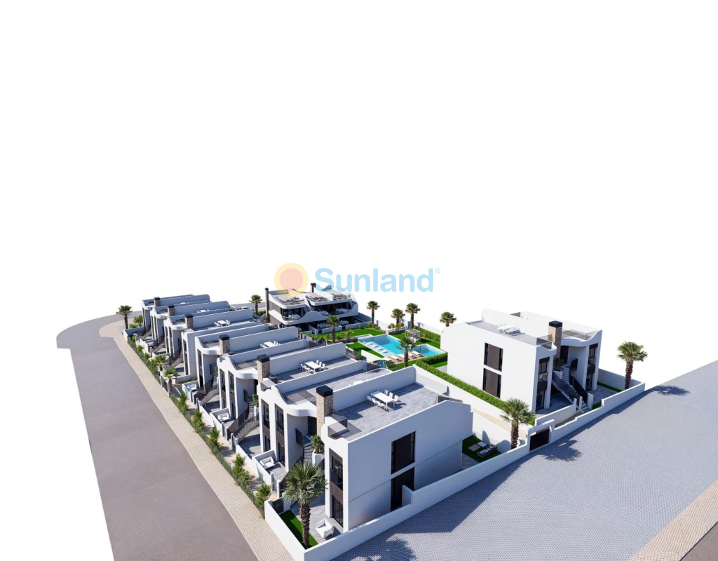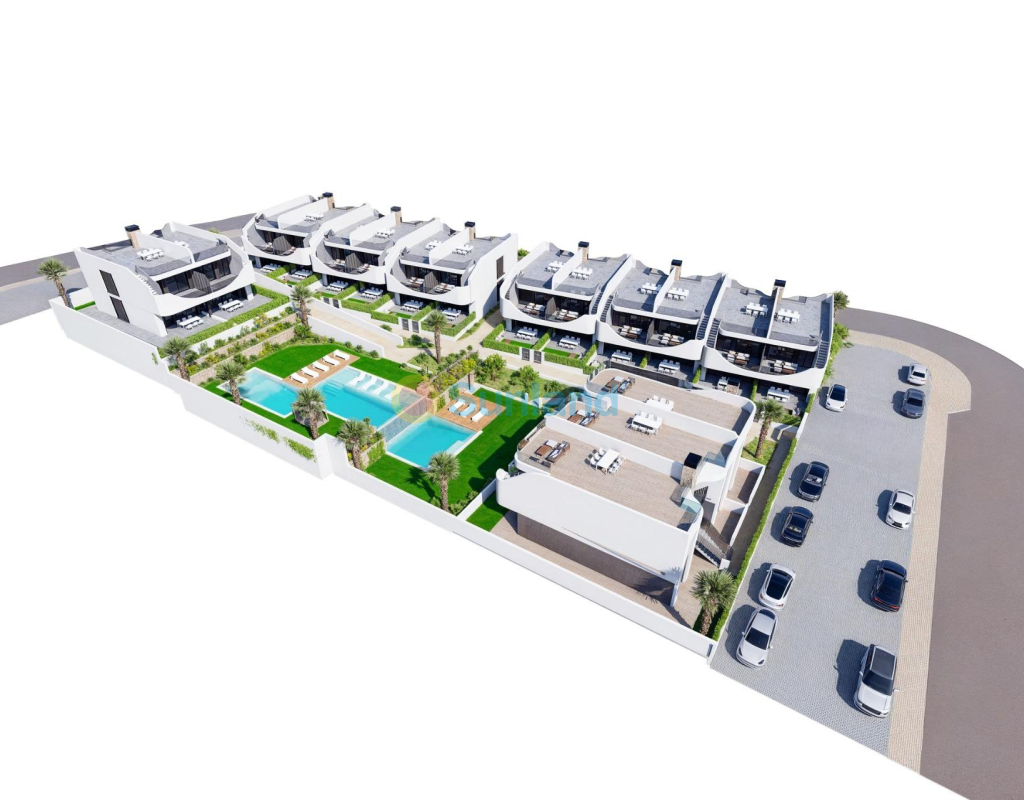 Bungalows of New Construction in San Miguel de Salinas - Nature, Golf and Comfort Privileged Location in a Natural Environment This exclusive residential of newly built bungalows is located less than 3 km from San Miguel de Salinas, in a quiet area surrounded by nature and with impressive unobstructed views. Its excellent location allows you to enjoy the tranquillity without renouncing to the proximity of all the services. Just 7 km away are the beaches of Orihuela Costa and the city of Torrevieja, where you can enjoy a wide range of leisure, gastronomy and shops. Modern Design and Unobstructed Views The properties are designed in a modern style and have high quality interior and exterior finishes. You can choose between: Ground floors with private garden, ideal for those looking to enjoy the outdoors. Top floors with private solarium, perfect for sunbathing and relaxing with panoramic views. In addition, all homes include allocated parking space. Communal Areas for Maximum Comfort The development offers a beautiful communal swimming pool, surrounded by green areas, perfect for enjoying the Mediterranean climate. The natural environment encourages a healthy lifestyle, away from stress and pollution, in an enclave that resembles a true paradise. Proximity to the Best Golf Courses San Miguel de Salinas is an ideal destination for golf lovers. Less than 4 km away are three of the most prestigious courses on the Costa Blanca: Villamartin Golf - 3.5 km. Las Colinas Golf & Country Club - 4 km. Campoamor Golf - 4 km. Connected to the Main Points of Interest This residential is in a strategic location with easy access to: San Miguel de Salinas - 3 km. Orihuela Costa Beaches - 7 km. Torrevieja - 7 km. La Zenia Boulevard Shopping Centre - 10 km. Alicante Airport - 55 km. Murcia Airport (Corvera) - 50 km. Secure your home in San Miguel de Salinas If you are looking for a home on the Costa Blanca where you can enjoy tranquillity, nature and golf, this residential is your best option. Contact us today for more information and to arrange a viewing.