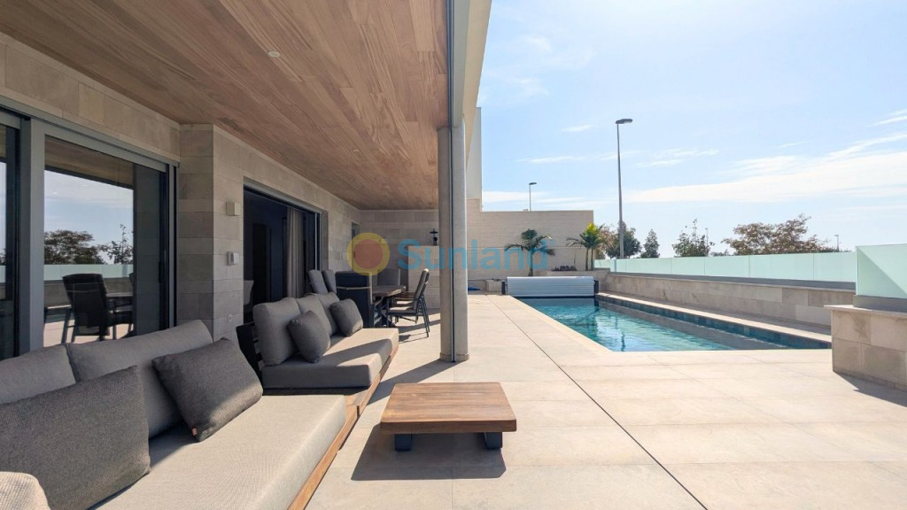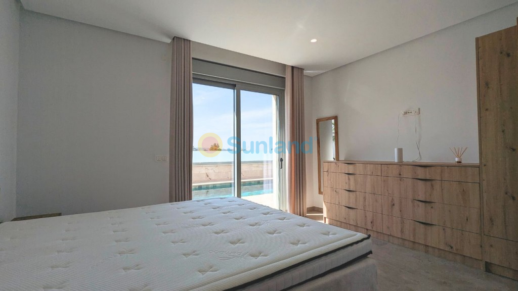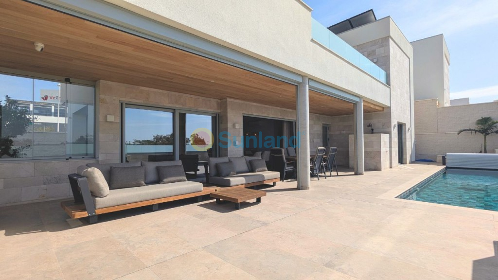 We proudly present an exclusive luxury villa in the heart of Benijófar – a masterpiece of modern elegance and comfort. This stunning residence is designed for those who seek the perfect blend of tranquility and convenience, just minutes from essential amenities. Whether you're looking for a dream family home or a private retreat, this villa offers an unparalleled Mediterranean lifestyle. Step inside to discover a bright, open-concept layout that seamlessly connects indoor and outdoor living. On the ground floor, a spacious bedroom with built-in wardrobes and a luxurious bathroom provides both comfort and privacy. One of the villa’s most remarkable features is the direct access to the private pool—simply slide open the glass doors and step into your personal oasis. Upstairs, you'll find three generously sized bedrooms, each with its own en-suite bathroom, ensuring the highest level of comfort and privacy for every member of the household. The crowning jewel is the expansive solarium, offering breathtaking panoramic views—perfect for sunbathing, entertaining guests, or unwinding as you watch the sunset. Adding to its versatility, the villa includes a large basement with ample space for a garage, storage, or even an additional living area, entertainment space, or guest suite. Every detail has been carefully considered, including a state-of-the-art water purification system that provides clean, filtered water throughout the home. We want to truly emphasize that the house has been built with technical ingenuity, incorporating various high-quality Vaillant appliances to achieve optimal results. With its exquisite design, prime location, and first-class amenities, this exceptional villa is the epitome of Mediterranean luxury. Don’t miss the chance to own your own piece of paradise in Benijófar..