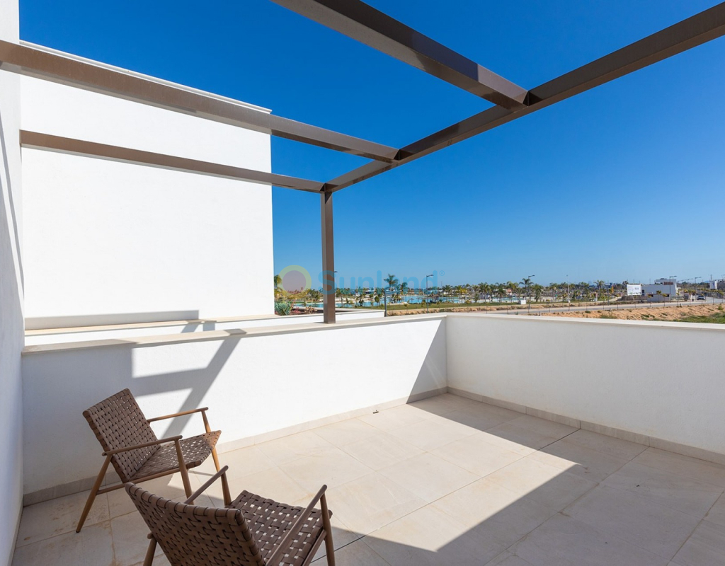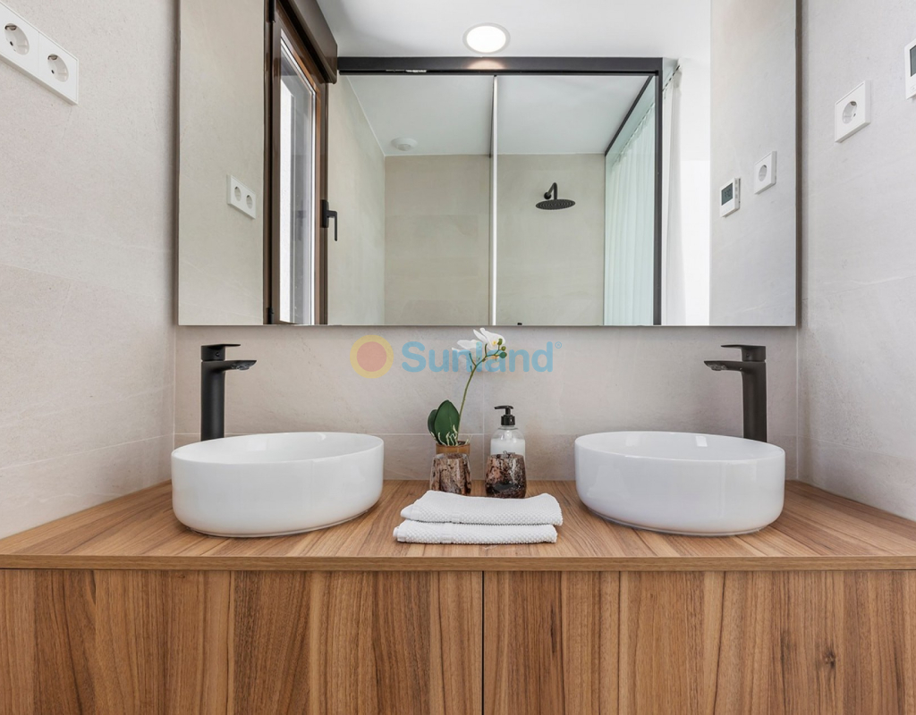 This exclusive and fully furnished villa, centrally located in the prestigious Santa Rosalia Lake & Life Resort, offers an unrivalled living experience just 50 meters from the beautiful lake and its idyllic beaches. Thanks to its south-east orientation, you will enjoy sunshine and natural light all day long . Moreover, the sandy Mediterranean beaches are only a 10-minute drive away, allowing you to enjoy both the serene lake and the nearby coastline. With three floors and a thoughtful layout, this property combines luxury, comfort and modern technology, perfect for both permanent living and a high-quality investment. Excellent investment opportunity – the base price is €415,000 and this villa is sold fully furnished, with a rental licence and professional website with management system for an additional €50,000. This villa has an official rental licence and a professional website, ensuring excellent returns. This makes the property attractive not only as a private residence, but also as a successful and lucrative investment in the rental market. Layout & features Ground floor: space & comfort Open and fully equipped kitchen (fridge, freezer, microwave, convection oven, induction hob, dishwasher). Stylish living and dining area with a large dining table for 6. Bedroom with built in closet and double bed. Bathroom with shower, washbasin and toilet. Several terrace areas seamlessly connecting inside and outside. First floor: Luxury & Privacy Master bedroom with built in closet and private en-suite bathroom. Spacious private terrace with stunning views. Lower floor: Relaxation & Functionality TV room with a 65' Smart TV and high-speed internet. Lounge area and relaxation area. Desk - ideal for homework or study. Spacious bedroom with double bed (2 separate mattresses & 2 duvets). Separate bathroom with shower, sink and toilet. Additional storage space Outside: Enjoying complete privacy on a corner plot Enclosed garden with spacious terraces and pre-installation for a jacuzzi and outdoor shower. Lounge area, sunbeds and a dining table with chairs for cosy outdoor dining. Additional assets ✔ Just a 10-minute drive from sandy beaches. ✔ Official rental licence, ideal for those looking for an attractive return. ✔ Professional website included, facilitating and optimising rentals. ✔ Underfloor heating in the bathrooms for extra comfort. ✔ Air conditioning & heating throughout the entire property. ✔ Wireless audio speakers (Sonos, Apple Airplay) for a high-end music experience. ✔ High-speed WiFi for maximum convenience. ✔ Move-in ready, including all household goods, decoration, bath and bed linen. Exclusive living and investment in a prime location This unique villa is located in a secure and exclusive residence, perfect for those looking for an oasis of calm with the luxury of modern amenities. Thanks to its proximity to the beautiful lake and beaches, you will enjoy a unique lifestyle here in one of the region's most desirable resorts. In addition, the combination of a rental licence and professional website offers an immediate return on investment, making this an excellent opportunity for investors. Don't miss this opportunity! Contact us today for more information or a viewing.