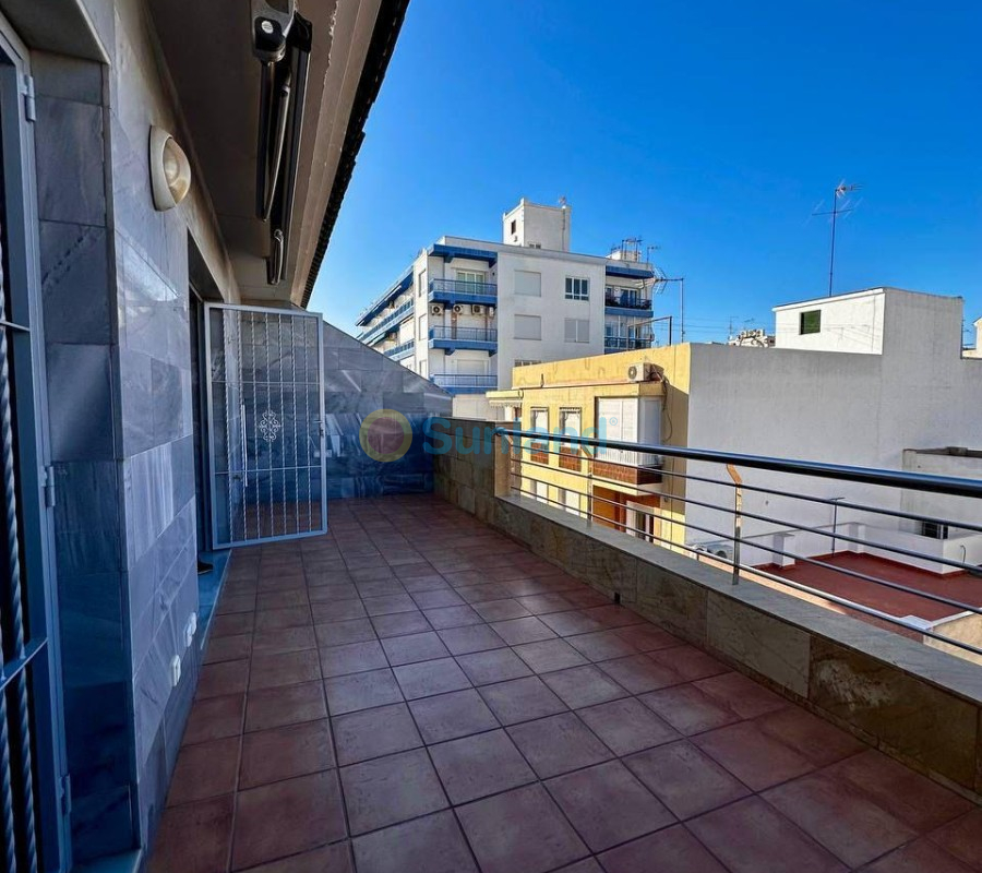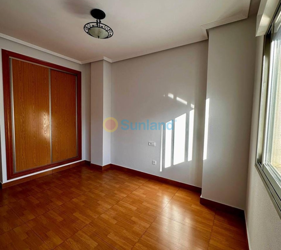 Discover this spacious and bright apartment located in the prestigious area of downtown Torrevieja , at Calle Pedro Lorca 54. With an unbeatable location , just steps from Playa del Cura , this home combines comfort, quality, and convenience . This apartment has a surface area of 110 m² , distributed in a functional and cozy design. It has three spacious bedrooms , all with built-in wardrobes , providing excellent storage space. It has two full bathrooms , designed to offer comfort and style. The large living room is a bright and welcoming space, with direct access to a 24.5 m² terrace , ideal for enjoying the Mediterranean climate. The separate kitchen is fully equipped with modern appliances, offering a practical and comfortable space for everyday living. Located on the 4th floor of a well-maintained building , it has an elevator for added convenience. This apartment has been renovated with high-quality materials , ensuring a modern and comfortable atmosphere. It has split-type air conditioning , ensuring a pleasant temperature throughout the year. The building has a communal solarium , perfect for relaxing and enjoying the sun. The building entrance is well maintained , reflecting a clean and safe environment. In addition, it includes an underground parking space , providing convenience and security for parking. Built in 2004 , this apartment is ideal both as a permanent residence and as an investment , thanks to its proximity to the beach and all essential services . Don't miss this opportunity to live in one of the best locations in Torrevieja . Contact us for more information or to arrange a viewing!