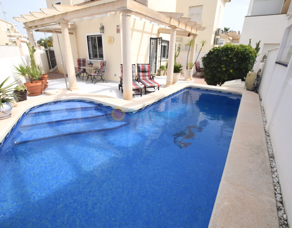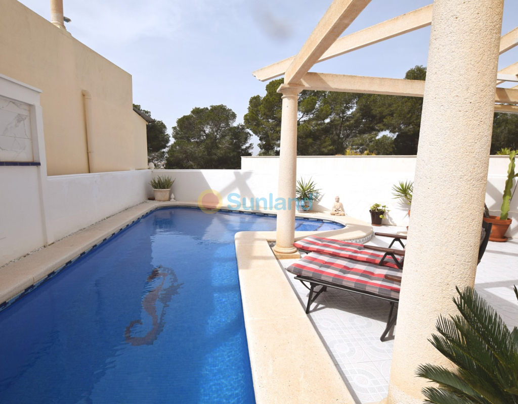 Beautiful 3 bedroom and 2 bathroom detached villa located in the popular residential area of Lo Pepin. The villa sits on a 200m2 plot with it´s own private swimming pool, off road parking, and plenty of outside space and terraces to enjoy outdoor living. Inside the property offers a spacious lounge/dining room, kitchen, 3 double bedrooms and 2 family sized bathrooms. The property also benifits from having extras such as A/C, central heating, heated swimming pool and also comes partly furnished. Viewing is highly recommended.