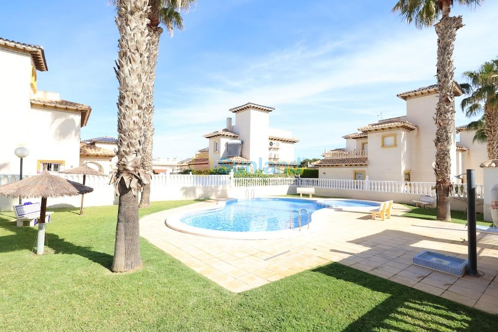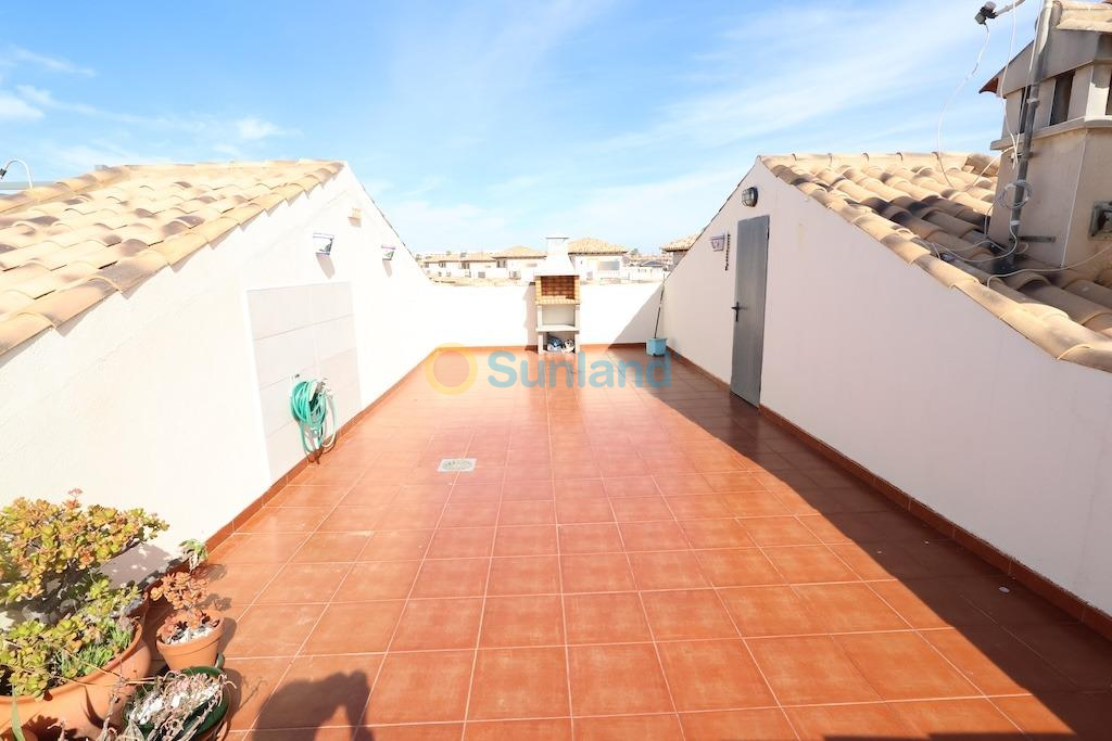 La Regia, San Jose Villas Residential, Top floor bungalow with 18 m2 private solarium with barbecue and storage room, the house is 65 m2 with 2 bedrooms, bathroom, separate kitchen with utility room, and terrace, the house is sold furnished and the residential has a communal pool.
