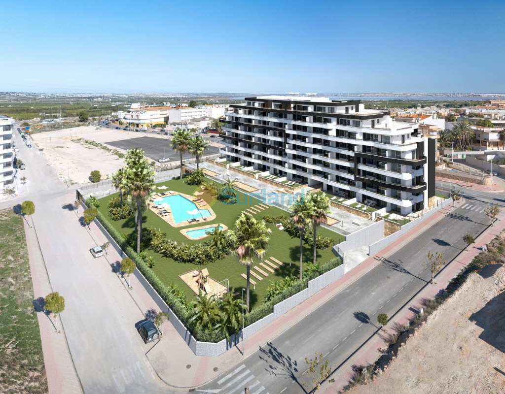 New residential development in San Miguel de Salinas, a stone's throw from the centre Spacious apartments with impressive amenities This newly built residential complex in San Miguel de Salinas offers modern 2-bedroom apartments with spacious terraces, carefully distributed over seven floors. The gated community offers first-class facilities, including separate swimming pools for adults and children, lush green areas, a children's playground and a petanque area. Privileged location on the Costa Blanca Nestled in the charming town of San Miguel de Salinas, this development enjoys a strategic location on the Costa Blanca. It is within walking distance of the town centre, where you will find all the essential services for daily life, including shops, restaurants and health centres. The property is a short drive from several points of interest: Las Colinas and Campoamor Golf Courses: Just 7 km away, perfect for golf lovers. Beaches of Orihuela Costa and Torrevieja: Located approximately 10 km from the residence, they offer beautiful sandy shores. Shopping Centres: Zenia Boulevard, a popular shopping destination, is only 9 km away. Alicante Airport: 50 km away. Murcia Corvera Airport: About 55 km away, ideal for regional connections. High-quality specifications Each apartment is designed with modern finishes and functionality in mind: Fully equipped kitchens with appliances included. Motorised blinds. Security entrance door. Hot water by aerothermal energy. Fully installed ducted air conditioning. LAUNCH OFFER: Furniture pack included for the first units sold. In addition, all apartments include a designated parking space. About San Miguel de Salinas San Miguel de Salinas is a picturesque municipality in the Vega Baja del Segura region, which forms part of the vibrant Valencian Community. Located near the border with Murcia, the town offers stunning views of the Torrevieja and La Mata lagoons, as well as a peaceful, family-friendly atmosphere. Your new home awaits Whether you are looking for a holiday retreat or a permanent residence, this new development in San Miguel de Salinas combines luxury, comfort and an unbeatable location. Contact us today to schedule a visit and take the first step towards owning your dream home on the Costa Blanca.