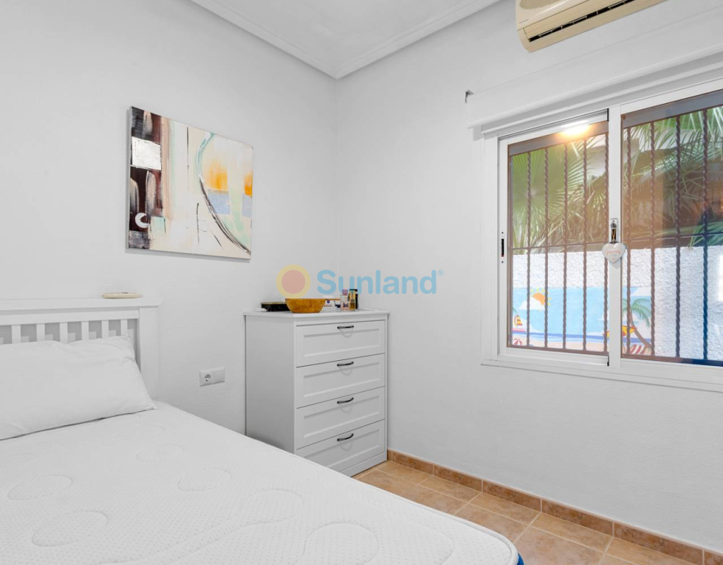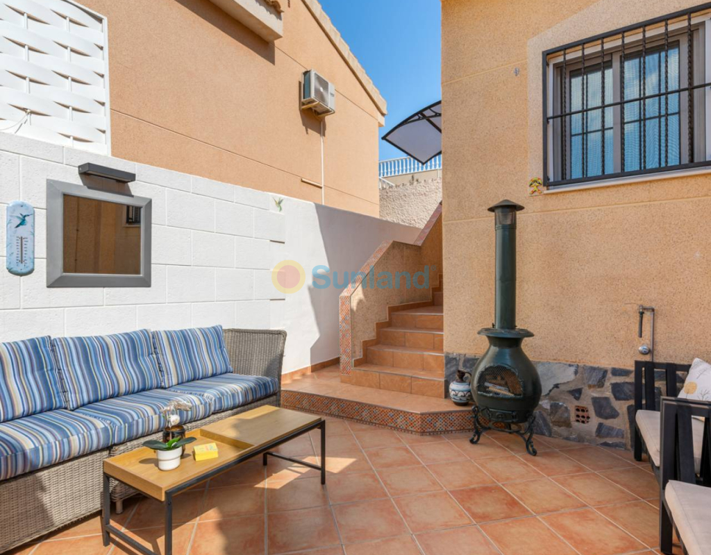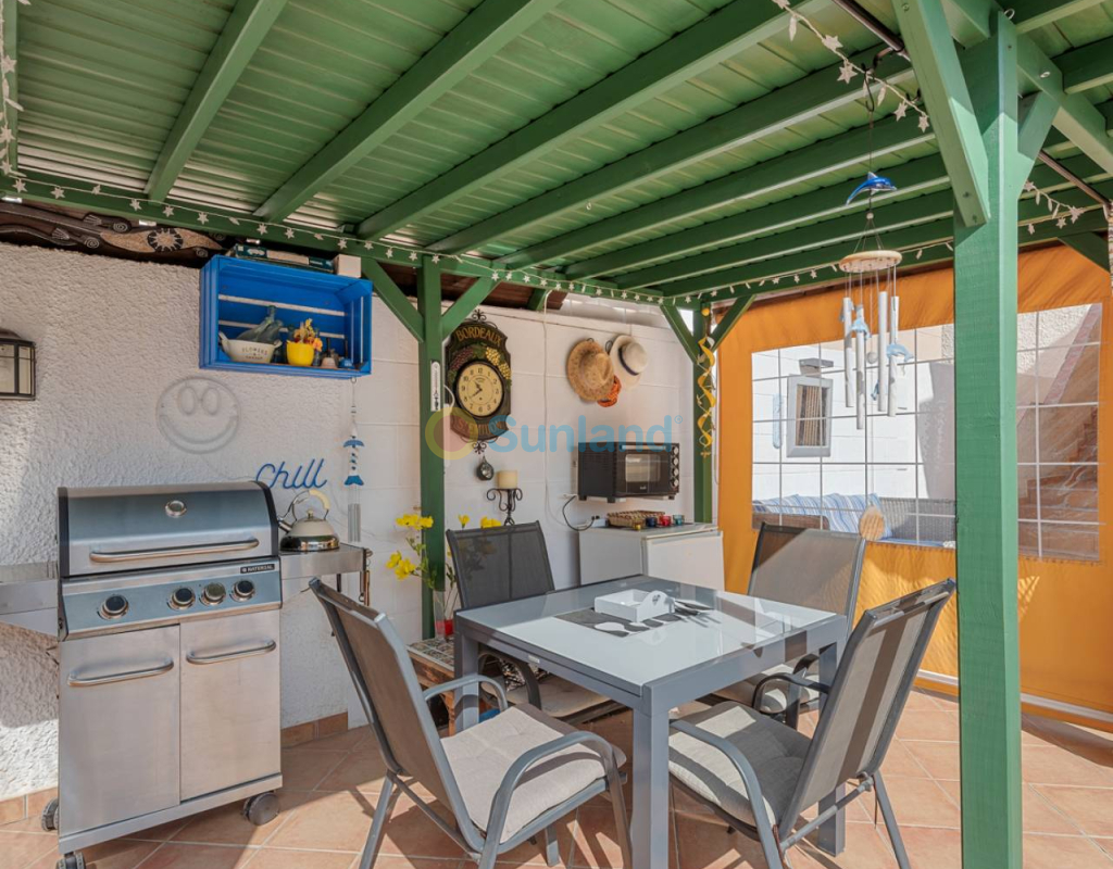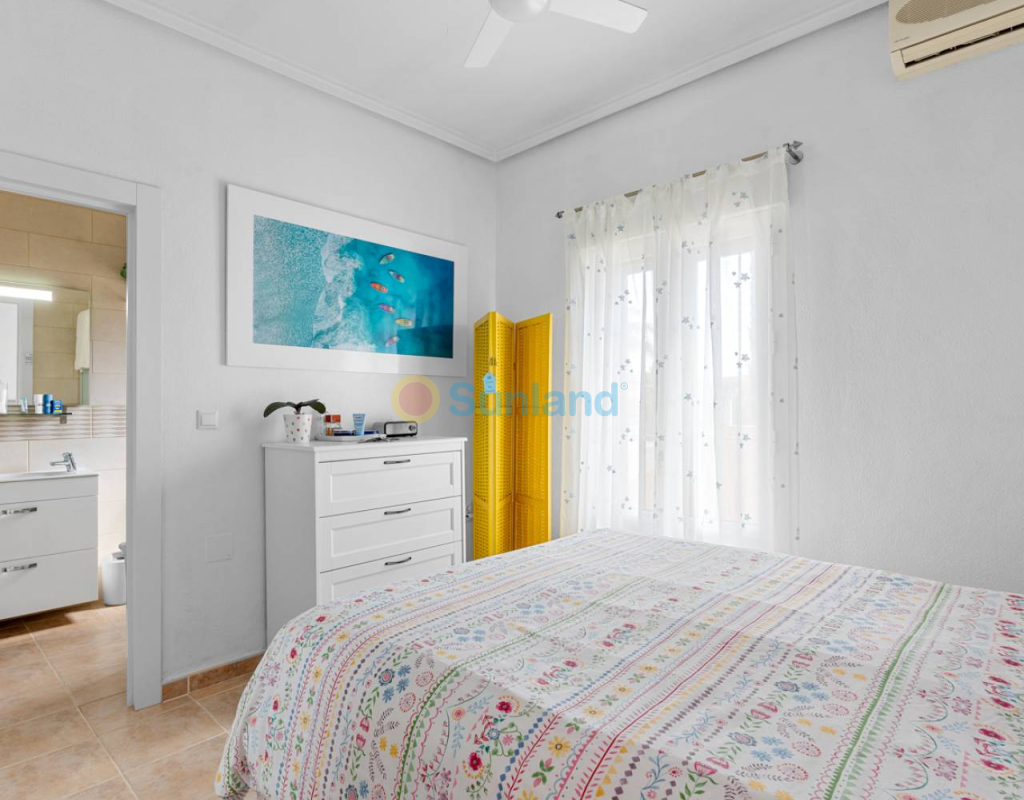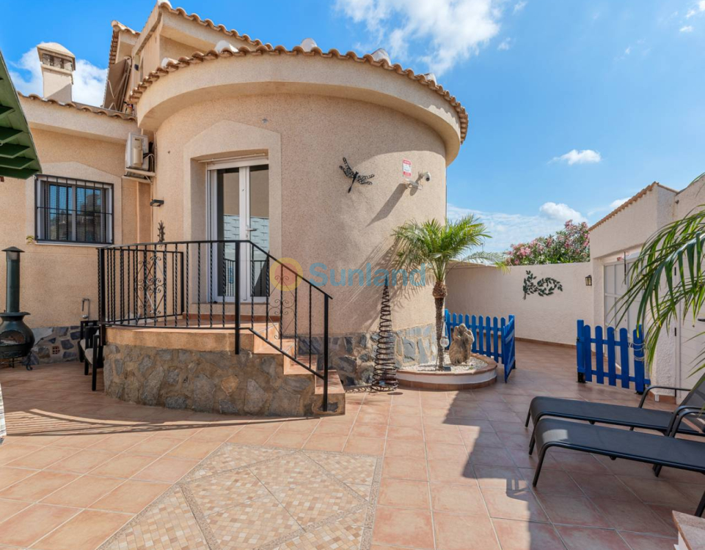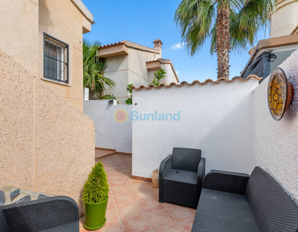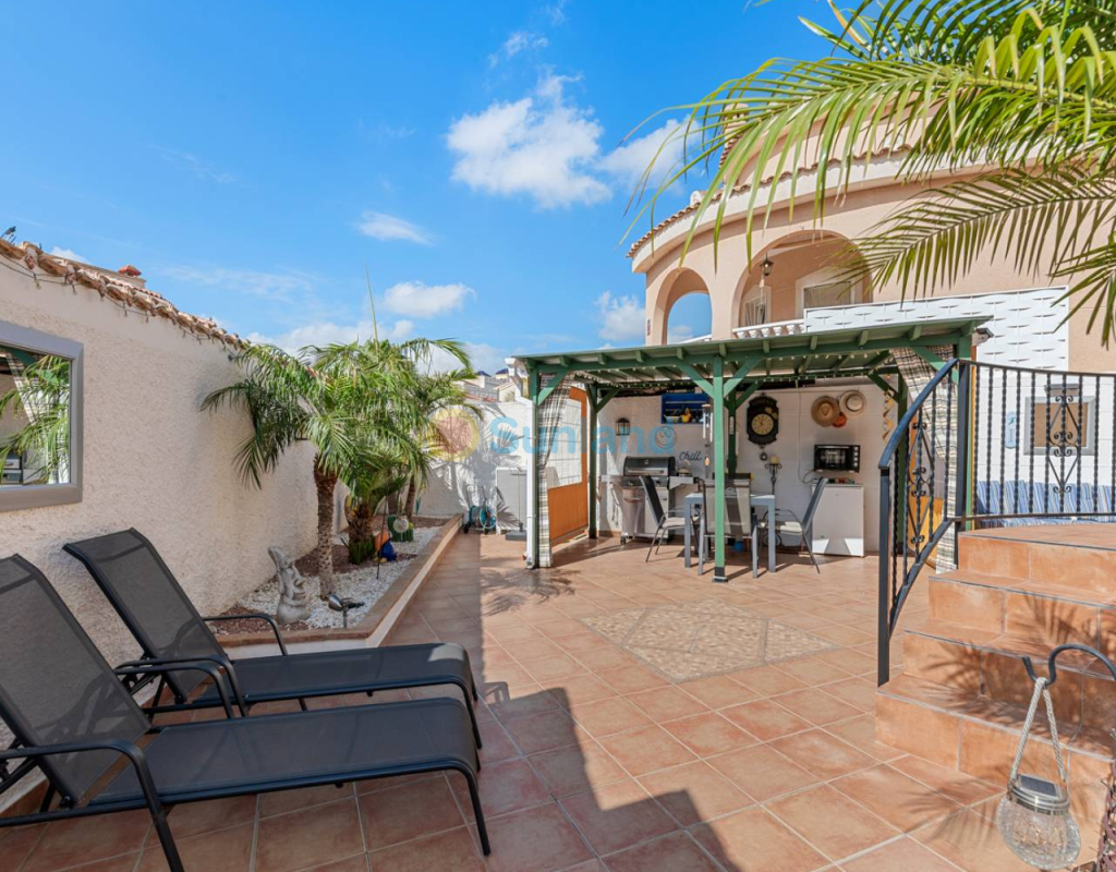 We are pleased to offer for sale this immaculate South facing detached villa. Set on a fully tiled 225m2 plot the living space of the original two bedroom Conchita design has been enhanced by extending on the solarium with an additional bedroom with en-suite bathroom and walk-in dressing area giving 90m2 of internal living space. Entering the property via the single pedestrian gate or double vehicle gates you are drawn to the very usable aspect the current owners have designed the plot. You are provided with several different seating areas that allow you to take in the Spanish sun or seek shade when needed. The external features start with a large covered carport with a rear door leading to a good size brick built store room and shaded seating area. To the front of the villa there is a fabulous outdoor kitchen and dining area - ideal for alfresco entertaining. Adjacent to the kitchen is the comfy seating area allowing further relaxation or entertaining. To the side of the villa are the stairs to the modern annex with bedroom, en-suite bathroom and dressing room accessed via a private entrance with seating space. Perfect for family or friends to whom you want to provide their own space. The main villa can be entered into the light, bright and airy lounge via the steps from the front terrace or through the side entry to the independent kitchen equipped with ‘white goods’. An arch way takes you from the living room to two double bedrooms with built-in wardrobes. The principle room has its own en-suite enhancing the users privacy and convenience. Adjacent to the bedrooms is the large family bathroom. Additional features of the villa are a laundry/utility room with additional storage. All rooms have air conditioning (with inverters for heating when needed) and ceiling fans. This property presents an ideal opportunity for permanent living, use as a holiday home or investment potential. There is the possibility of adding value to the current property as there is sufficient space for the addition of a private swimming pool. The owners are including all white goods and the furniture would be available by separate negotiation. Key Features: 90m² Built | 225m² PlotSouth FacingLarge, light, bright Lounge areaSeparate Kitchen with White Goods3 Bedrooms | 3 Bathrooms (2 Ensuite)Built-in Fitted Wardrobes in Two of the bedroomsAir Conditioning and Ceiling Fans (in all rooms) & Laundry/Utility RoomFully Tiled Private Gardens Outside KitchenRoom for a PoolOff-Road Private ParkingCondition: ImmaculateFurniture: Negotiable Prime Location: 10 Minutes to the Beach30 Minutes to the Airport5 Minutes to Shops & Amenities10 Minutes to Golf CoursesGarden Views & Close to Nature This is a versatile and well-located villa offering the best of comfort, convenience, and outdoor living. Viewing is highly recommended to appreciate what is on offer.