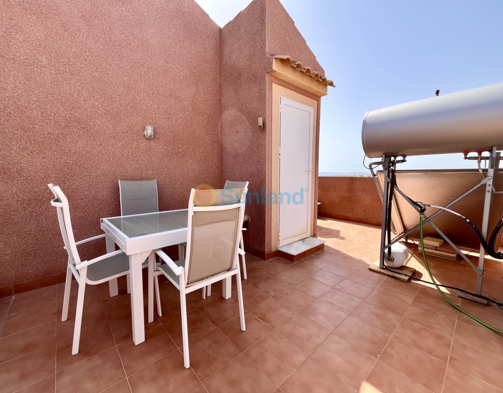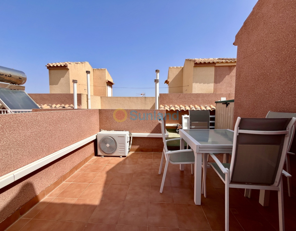 Bright and beautifully maintained 2-bedroom, 2-bathroom south-facing townhouse situated in the sought-after Sierra Golf resort. This charming home boasts a spacious underbuild offering endless possibilities — whether you're dreaming of a third bedroom, games room, home office, or extra storage. The sunny front terrace is perfect for morning coffees or evening drinks, soaking up the sunshine all day long thanks to its ideal orientation. Just a short 5-minute drive takes you into the lively town of Balsicas with its shops, restaurants, and train links, while the golden beaches of the Mar Menor and the vibrant Murcia city centre are both just 15 minutes away. Whether you're looking for a permanent home, a holiday escape, or a smart investment, this property ticks all the boxes in a peaceful golf-side setting.