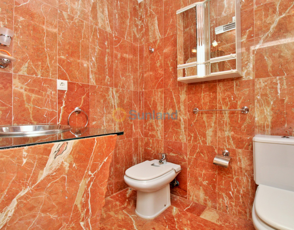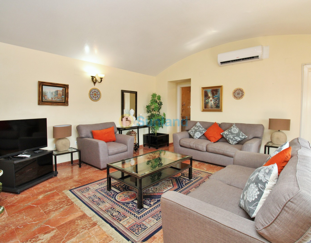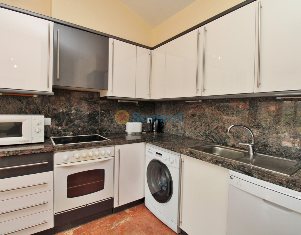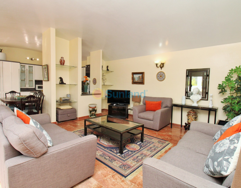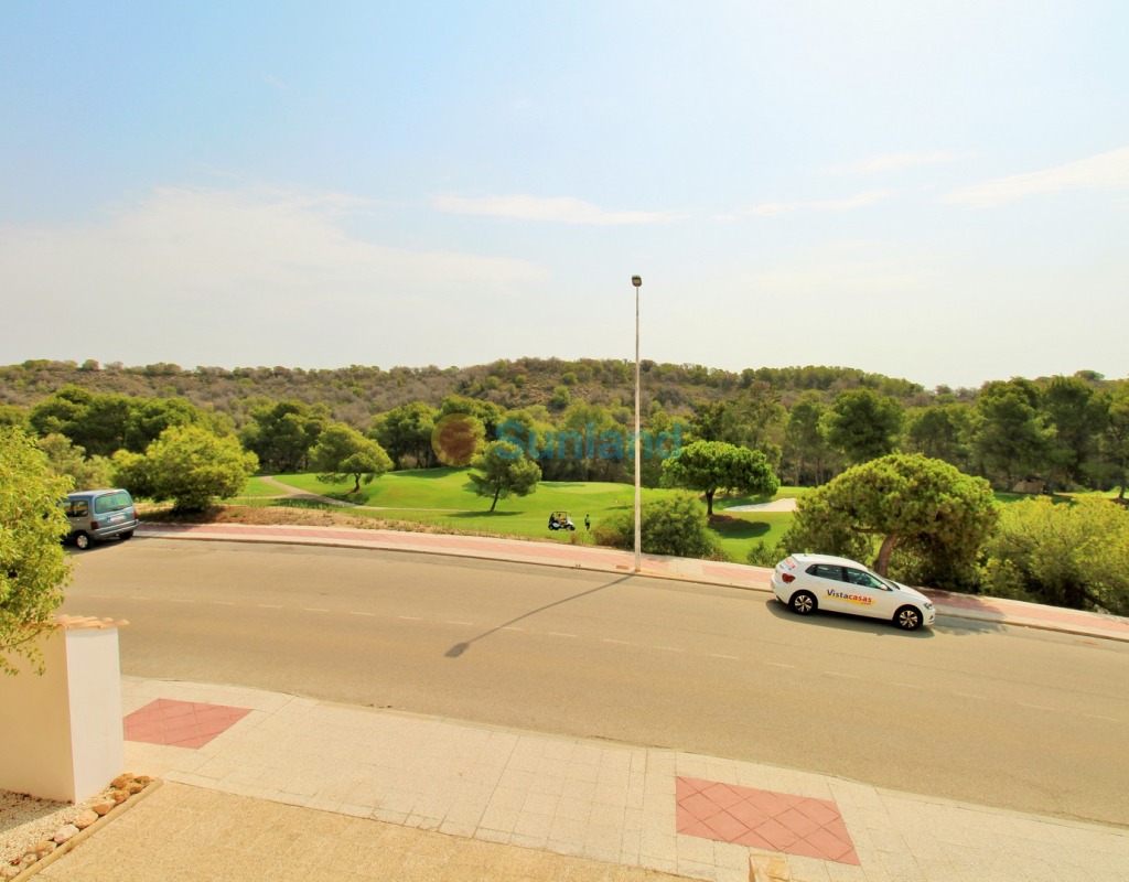 A rare opportunity to purchase a spectacular 2-bedroom apartment for sale in the prestigious Los Claveles complex within the Las Ramblas Golf Resort, just a short stroll from the popular La Fuente commercial centre. This impressive property offers generous living space and wonderful panoramic views over the golf course. The large front terrace spans the entire width of the apartment — perfect for outdoor dining or relaxing in the sun. Apartments of this quality and position rarely come to market, making early viewing essential. The interior comprises a bright and spacious lounge-dining area with an open-plan American-style kitchen, two double bedrooms with fitted wardrobes, and a family bathroom. The master bedroom benefits from an en-suite with a walk-in shower and direct access to the terrace. At street level, the property includes a private garage with an additional bedroom and en-suite bathroom — ideal for guests or as a hobby room. Residents enjoy access to a beautifully maintained communal pool and garden areas. The property is sold fully furnished with white goods and air-conditioning, ready to move into. An exceptional home in one of Las Ramblas’ most sought-after locations — equally suited as a permanent residence, holiday retreat, or investment.