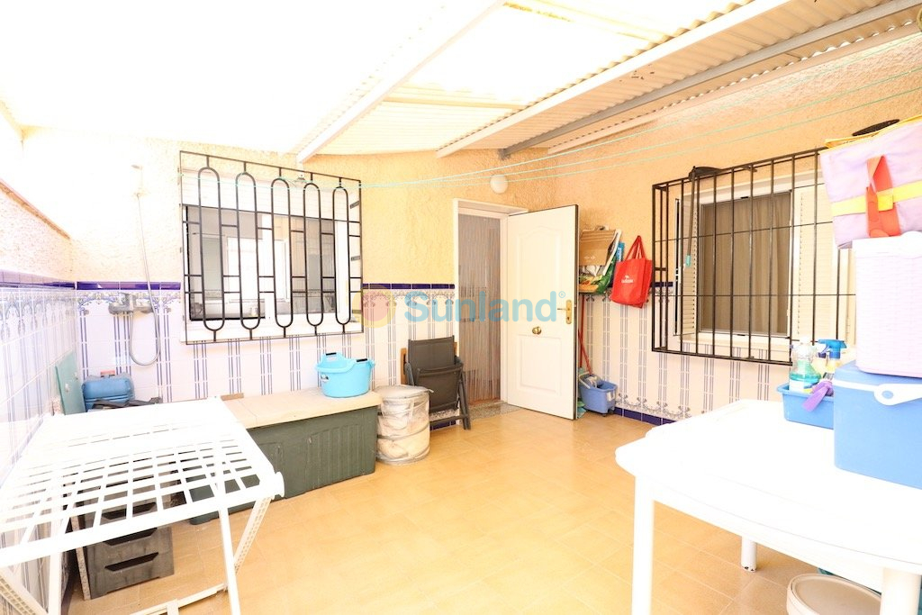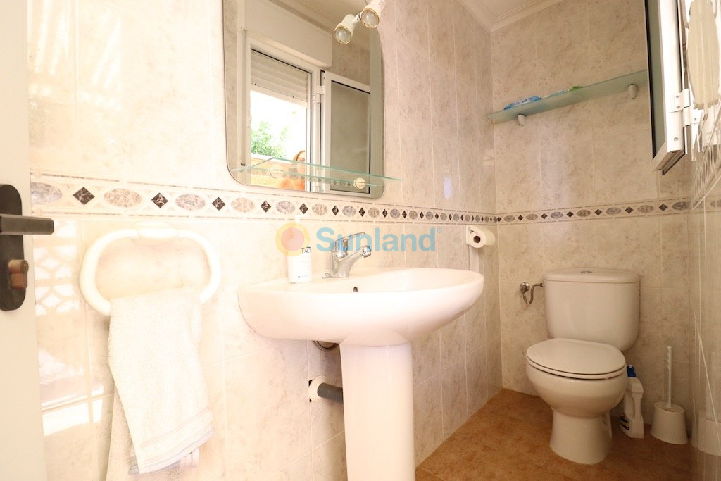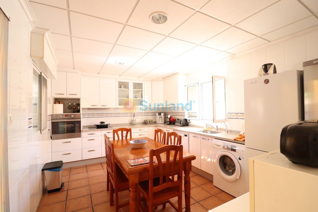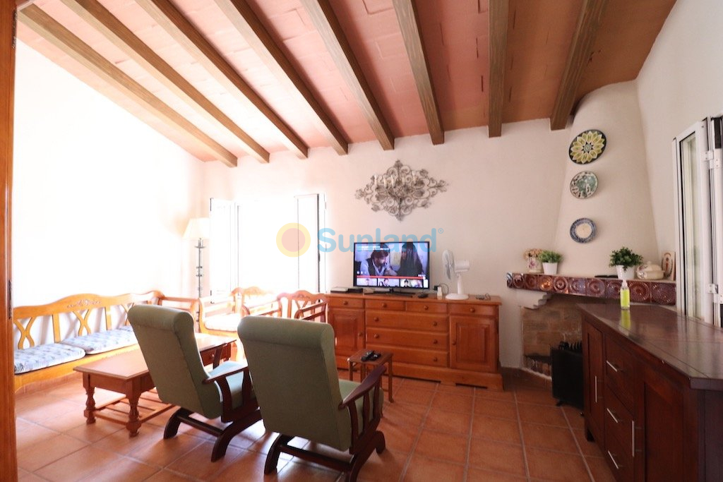 Lovely detached mediterranean style villa with south orientation, 555 m2 plot, house in one floor 220 m2 built.. . The property has 4 bedrooms, 2 bathrooms, 1 toilet, living-dining room with fireplace, big independent kitchen with closed gallery, garage, swimming pool 8 x 4 and big porch.. . Sold furnished with air conditioning. . . Only 400 mts from the beach in Punta Prima.