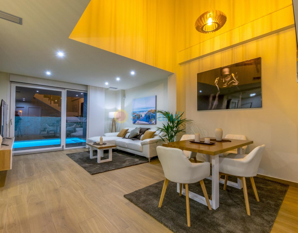 VILLAS DE OBRA NUEVA EN ROJALES Villas modernas de obra nueva en Rojales. Villas construidas en 2 plantas, con 3 dormitorios y 3 baños, cocina americana con salón, armarios empotrados, terraza, jardín privado con piscina y plaza de aparcamiento. Posibilidad de solarium y sótano con coste adicional. Todo con materiales de primera calidad y los mejores acabados. Villas situadas a tan solo 10 minutos del campo de golf La Marquesa en una zona tranquila y de la costa. Rojales es un pueblo tradicionalmente agrícola que se ha convertido en uno de los destinos preferidos del interior de la Vega Baja, gracias a su situación estratégica cerca de la N-332 y la AP-7. Sus excelentes accesos permiten llegar al aeropuerto de Alicante en 20 minutos y disfrutar de las playas de Guardamar, La Mata o Torrevieja en 15 minutos. Rojales ofrece una rica y variada oferta gastronómica y de ocio, y cuenta con el prestigioso campo de golf La Marquesa Golf. Rojales es un pueblo encantador con todos los servicios como supermercados, farmacias, bancos, restaurantes y parque natural situados muy cerca de las villas. La Marquesa Golf es uno de los campos con más historia de la Costa Blanca, con 18 hoyos y uno tan especial como el hoyo 17 de Sawgrass. Tradición, calidad y experiencia se unen para ofrecer a los golfistas que nos visitan una experiencia única, llena de historia donde.